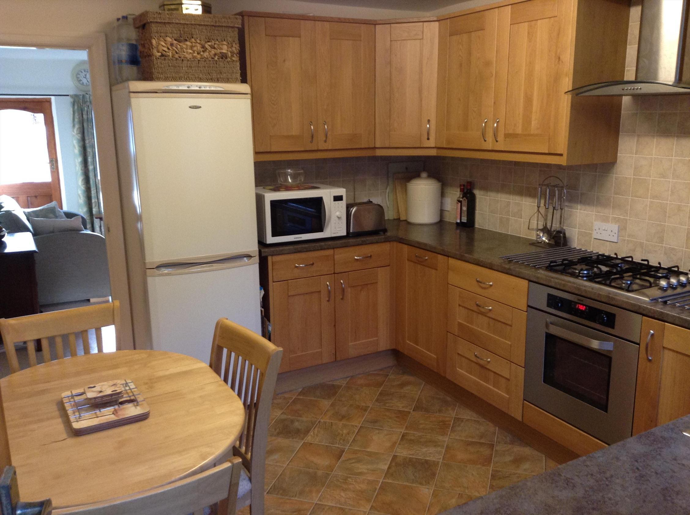A spacious kitchen to the rear with a good range of units finished in oak with stainless steel trim, integral stainless steel hob and electric oven. Plumbed for washing machine. Off the kitchen is a nice conservatory which leads on to a rear patio area.