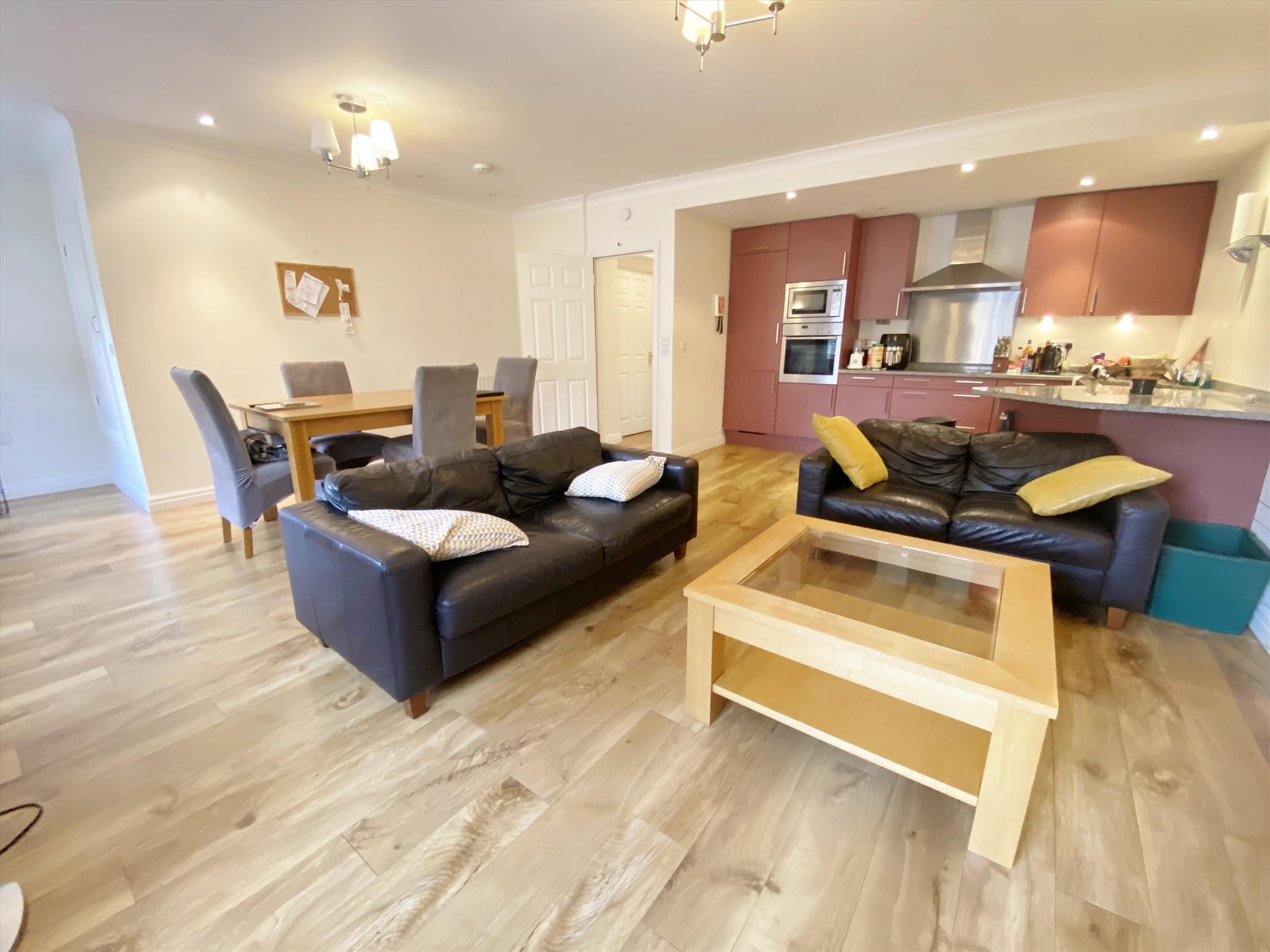 A fantastic opportunity to rent a beautifully presented two bedroom, furnished, second floor luxury apartment in the heart of the historic city of Lancaster, with views over Lancaster Castle. The property has good access to all the amenities the city has to offer including transport links, Hospital and Universities. The apartment compromises of an entrance hall which leads into a spacious open plan lounge/kitchen/diner, which has been tastefully decorated in neutral colours complemented by stunning oak effect flooring. The kitchen has been fitted with a range of Siematic units finished in cream with integrated Neff appliances including, ceramic hob, eye level oven, microwave, fridge / freezer and dishwasher. There are two double bedrooms, one of which has a range of fitted wardrobes. The bathroom has a fitted modern three piece suite with over bath shower complemented by tiled walled and a ceramic tiled floor. A storage area with plumbed in washing machine. There is also a small enclosed gravelled garden.