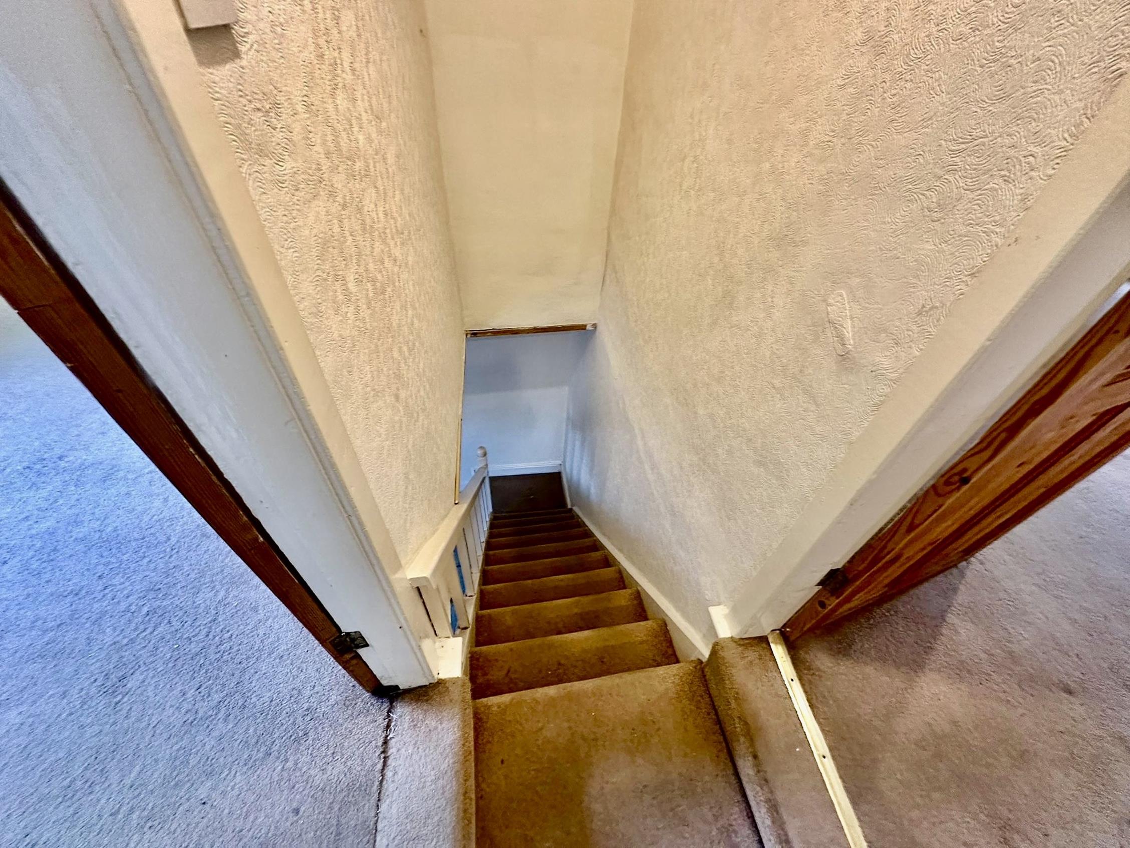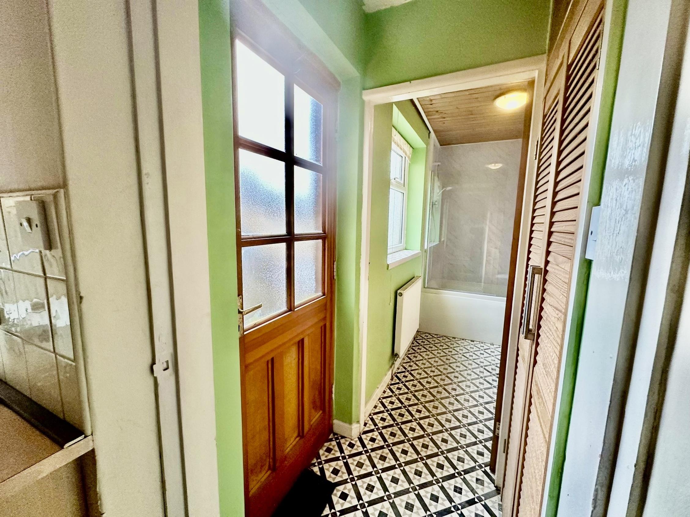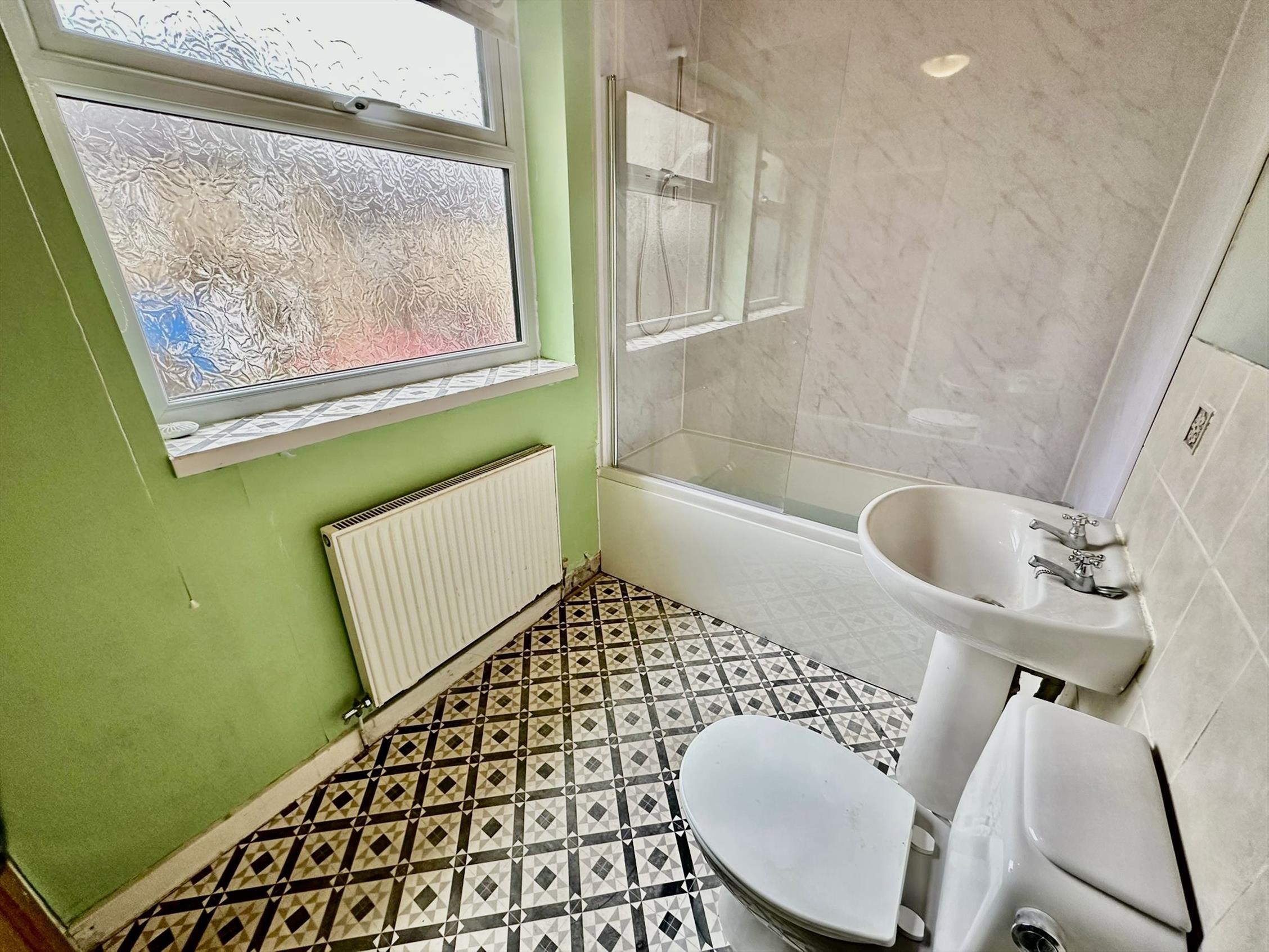 The kitchen to the rear has a good range of units finished in light beech with stainless steel trim with inset electric oven. There is a rear annex area with storage and plumbed for washing machine. A new downstairs bathroom with three piece suite and over bath shower. Stairs lead up from the kitchen to the first floor were there are two double bedrooms. The property has neutral decor and floor covering through out.
