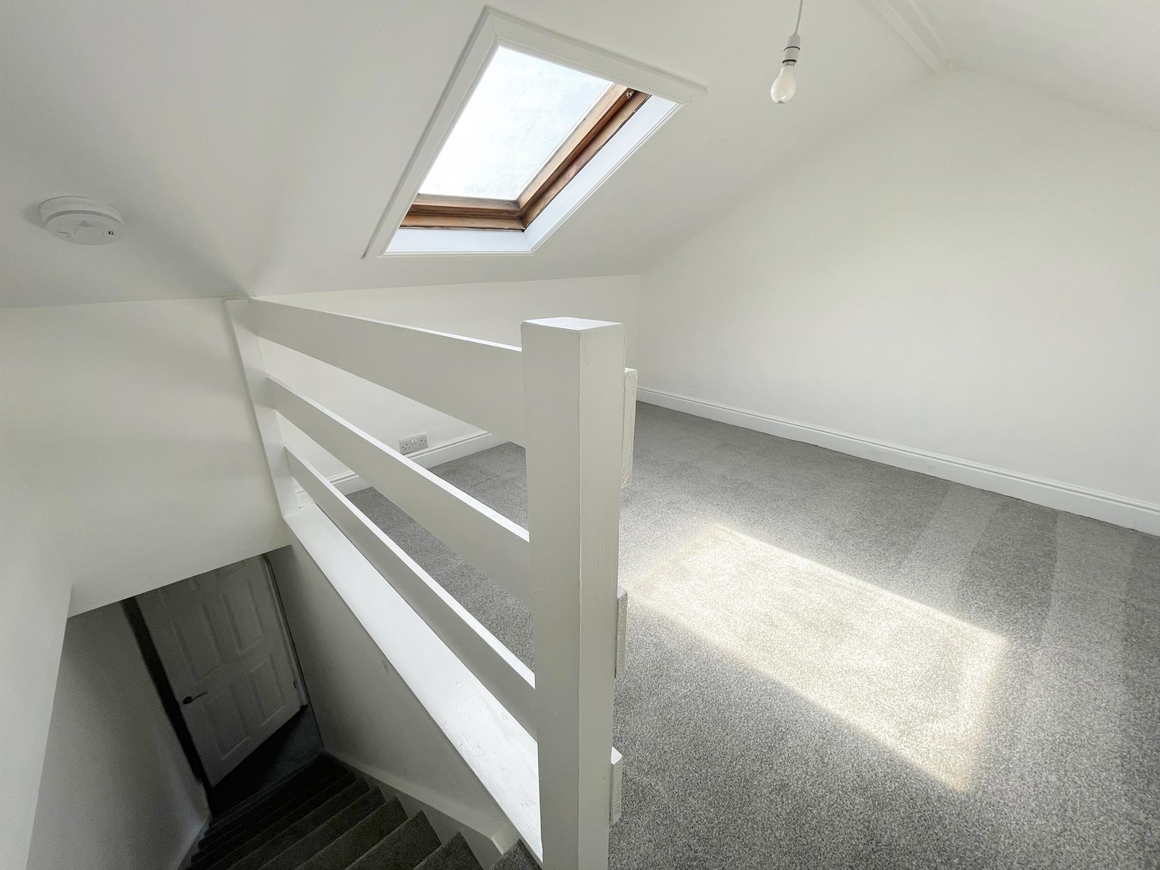 Following the second flight of stairs, you are greeted by a charming attic double bedroom, boasting a velux window.