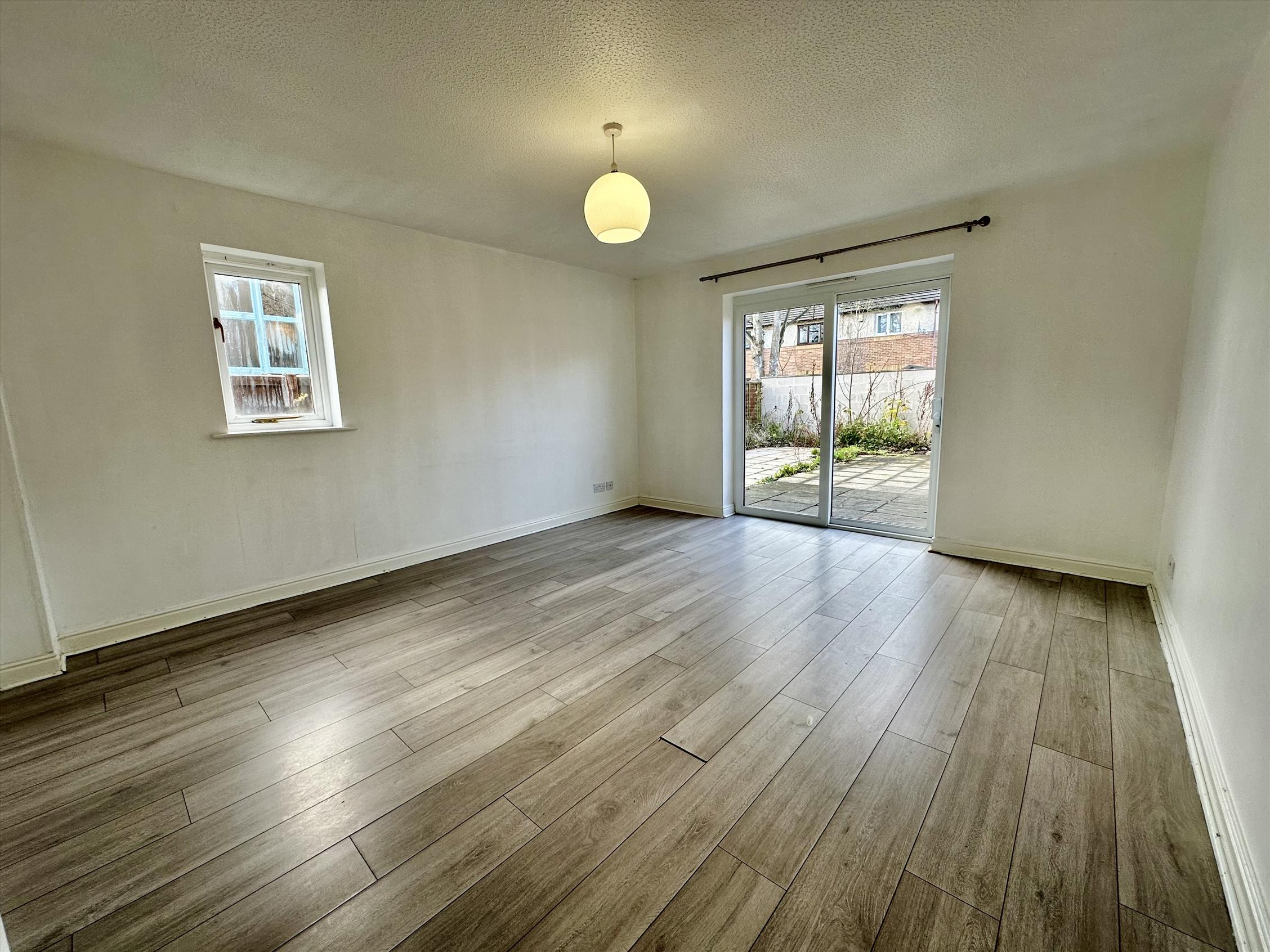 Entry leads into a spacious hallway with grey laminate flooring. At the front of the property there is the kitchen area which looks out onto the front garden. Moving through the property you come to the modern living area with large double doors leading out to the rear garden, allowing plenty of light into the room.