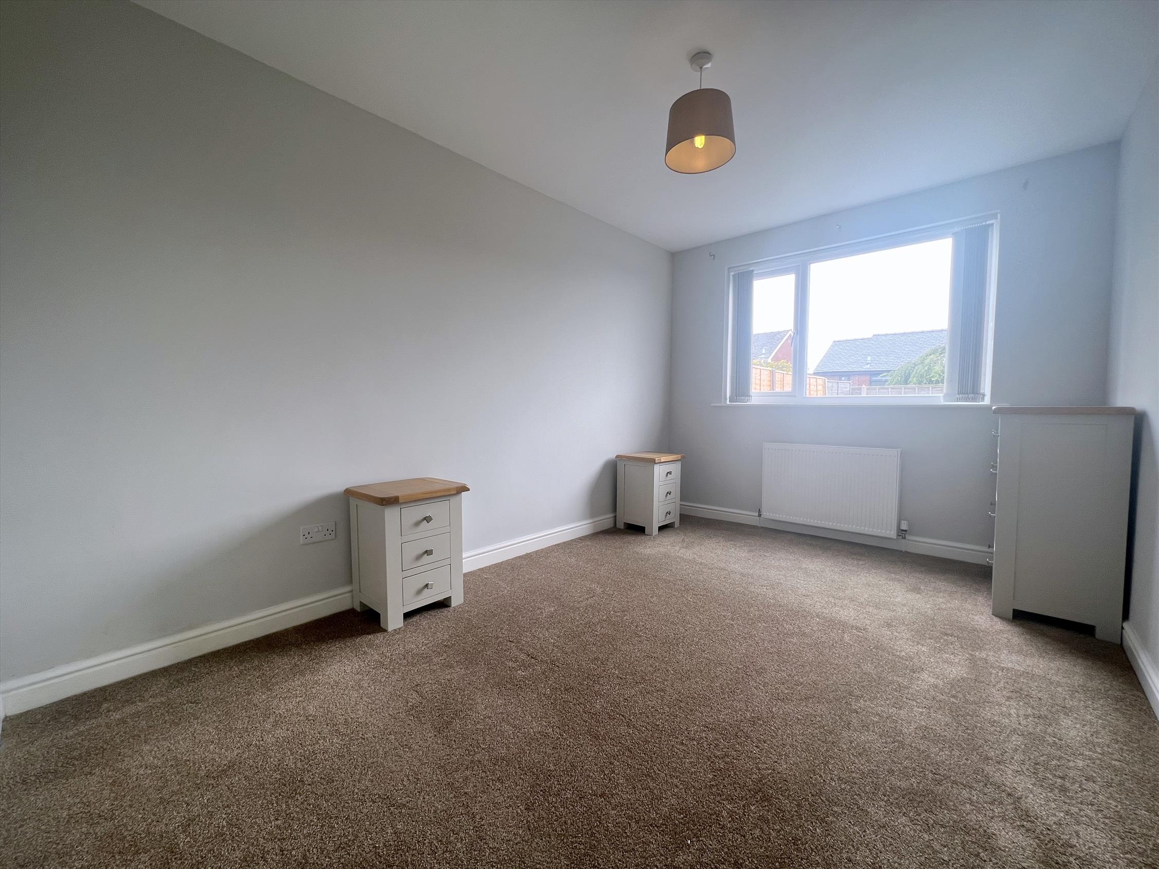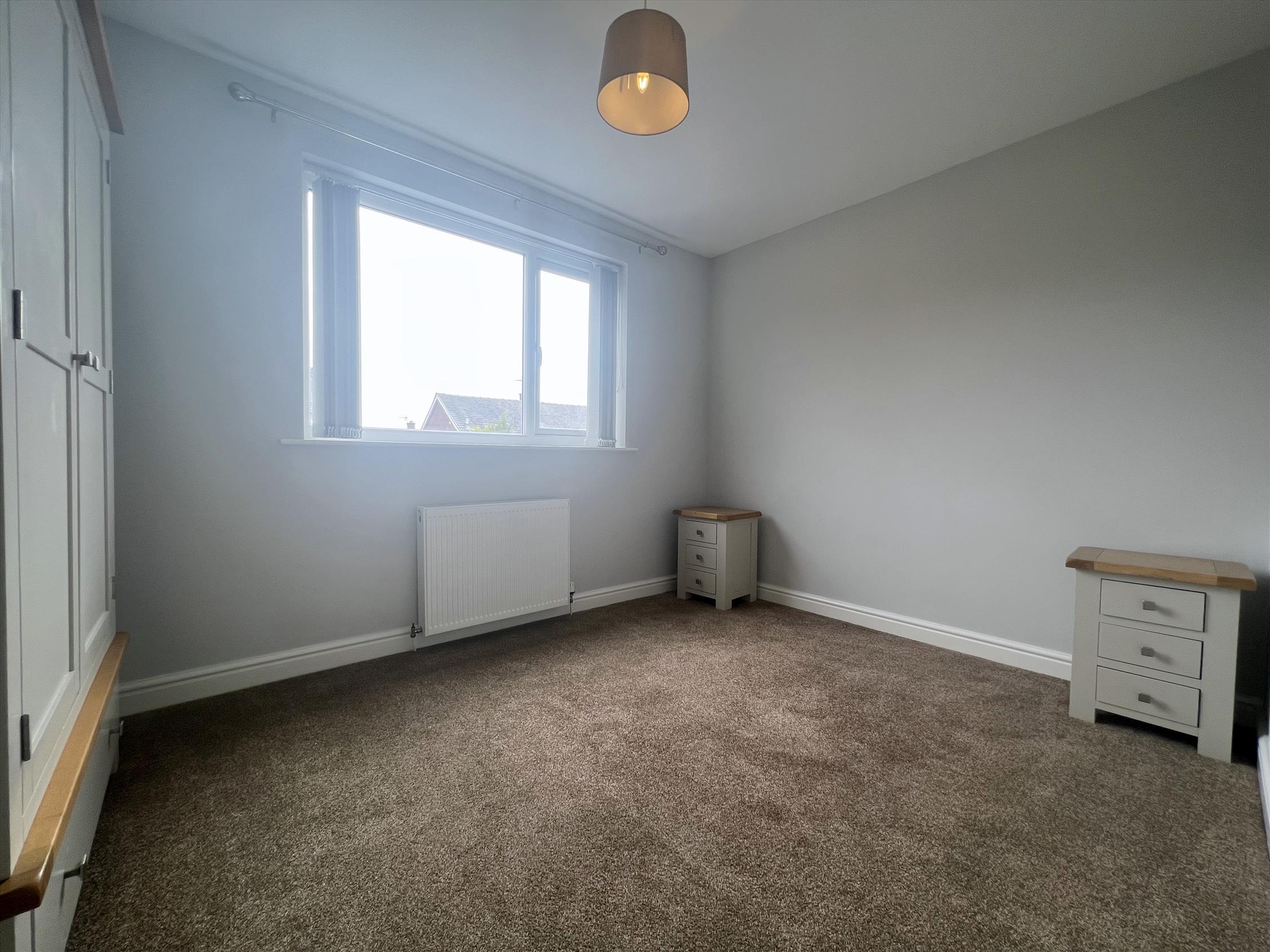 The property offers well-proportioned accommodation, including two double bedrooms and a further single bedroom. The principal bedroom benefits from an en-suite shower room with WC and wash basin. In addition, there is a beautifully presented four-piece family bathroom, featuring a WC, wash basin, bath, and walk-in shower.