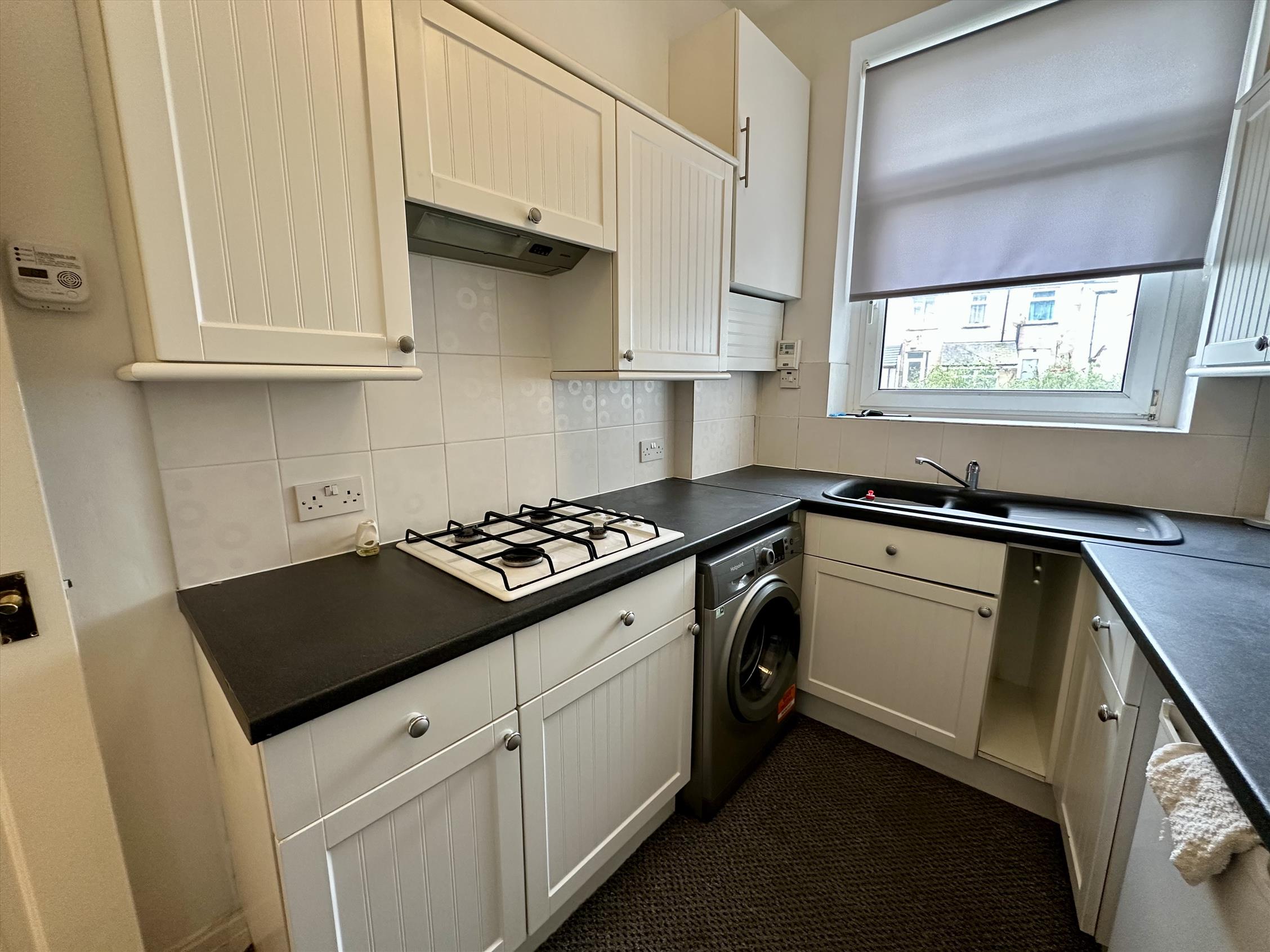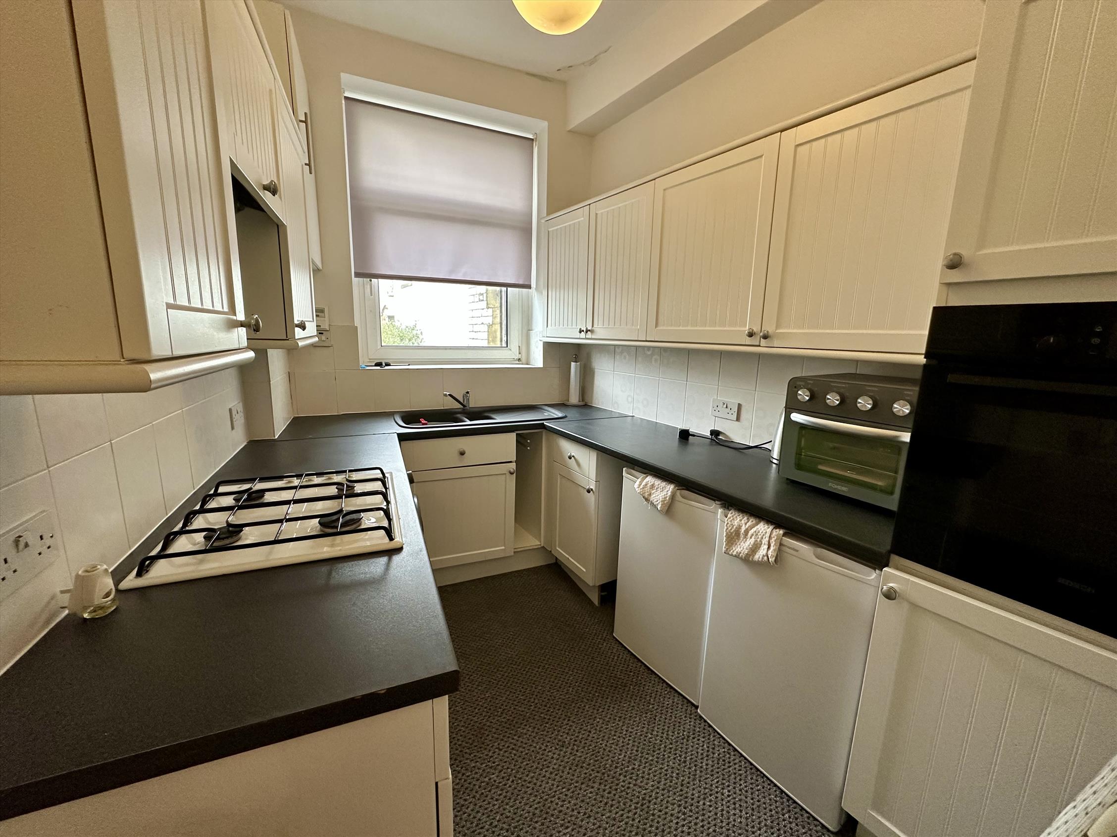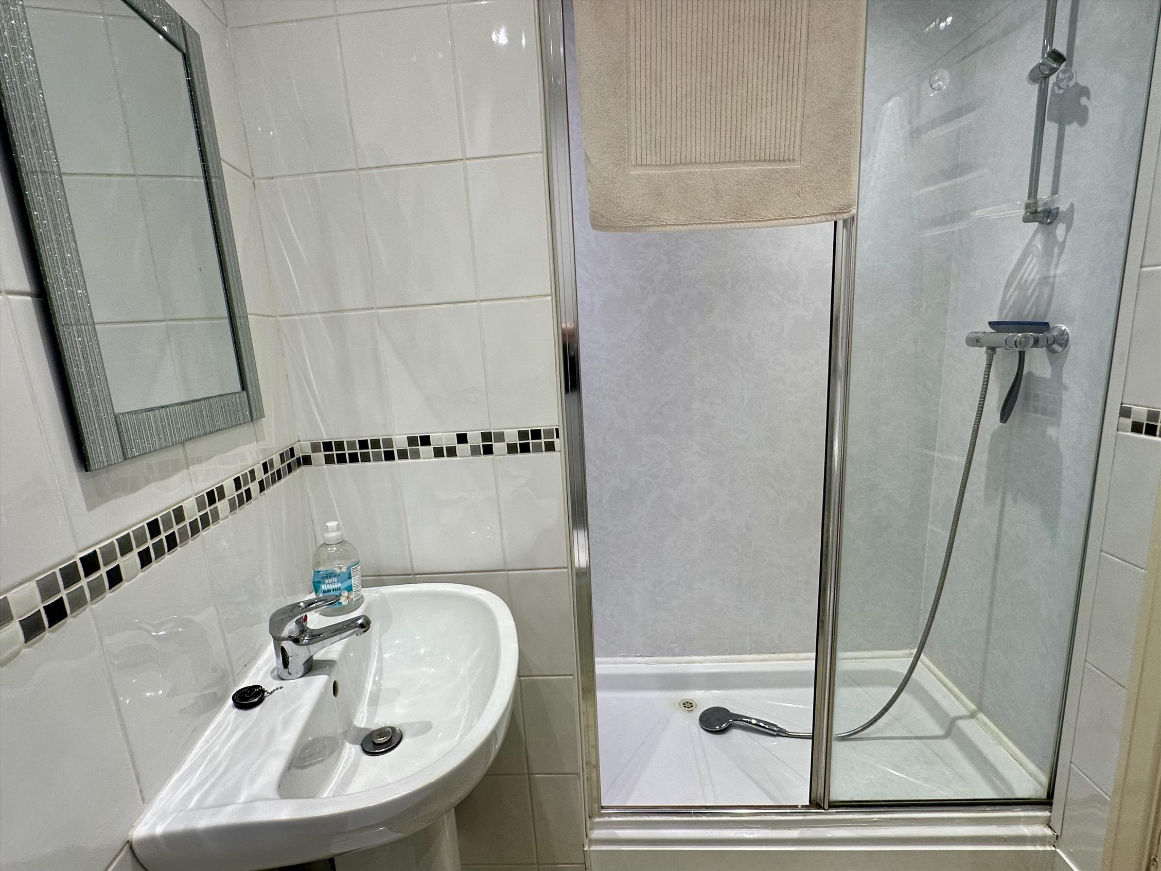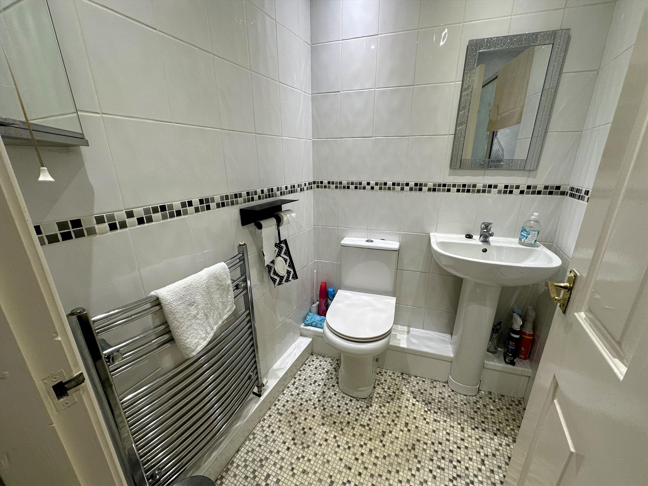 The double bedroom is well-proportioned and comes with a fitted wardrobe, while the modern kitchen comes complete with a full range of white goods included, making it ready to move in hassle-free. The bathroom is finished to a contemporary standard with a shower.