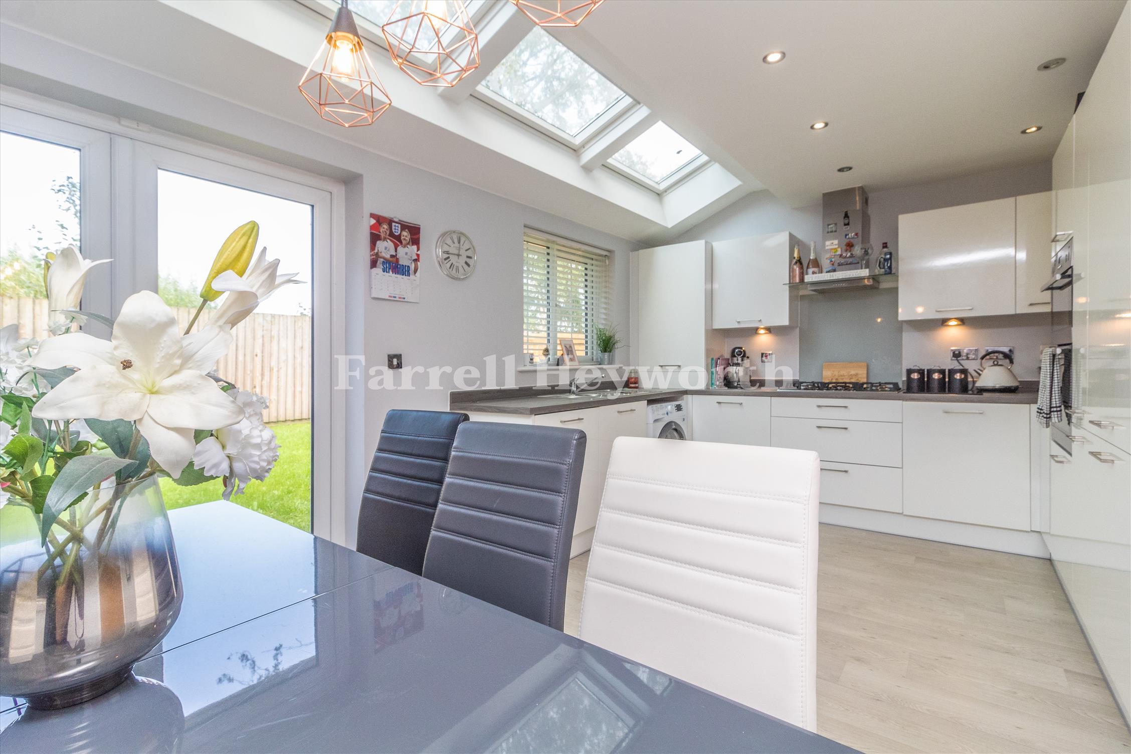Externally, there is off road driveway parking to the front and a good sized enclosed rear garden which is mainly laid to lawn with a timber decked seating area. The ready to walk into accommodation comprises: Hallway with separate wc, lounge, lovely fitted kitchen diner. A bright and airy room with a good range of fitted units and French Doors lending access to the rear garden. To the first floor, there are three bedrooms and a four piece family bathroom.