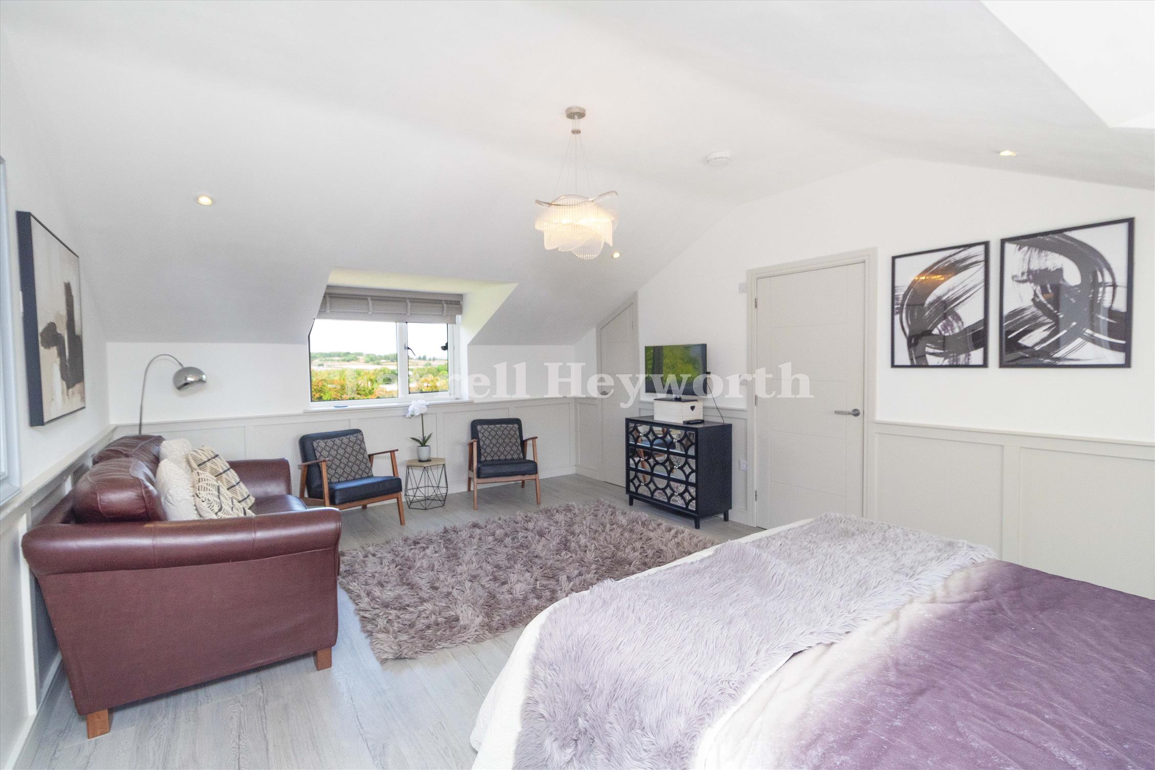 Upstairs, the home offers four generously sized double bedrooms, including a luxurious self-contained master suite with a spacious en-suite bathroom, two walk-in wardrobes, and a separate dressing room. A second bedroom also features its own private en-suite, while the remaining two bedrooms share a well-appointed family bathroom. All bathrooms are fitted with premium Duravit sanitary ware and sleek Hansgrohe fittings, continuing the high-spec finish throughout.