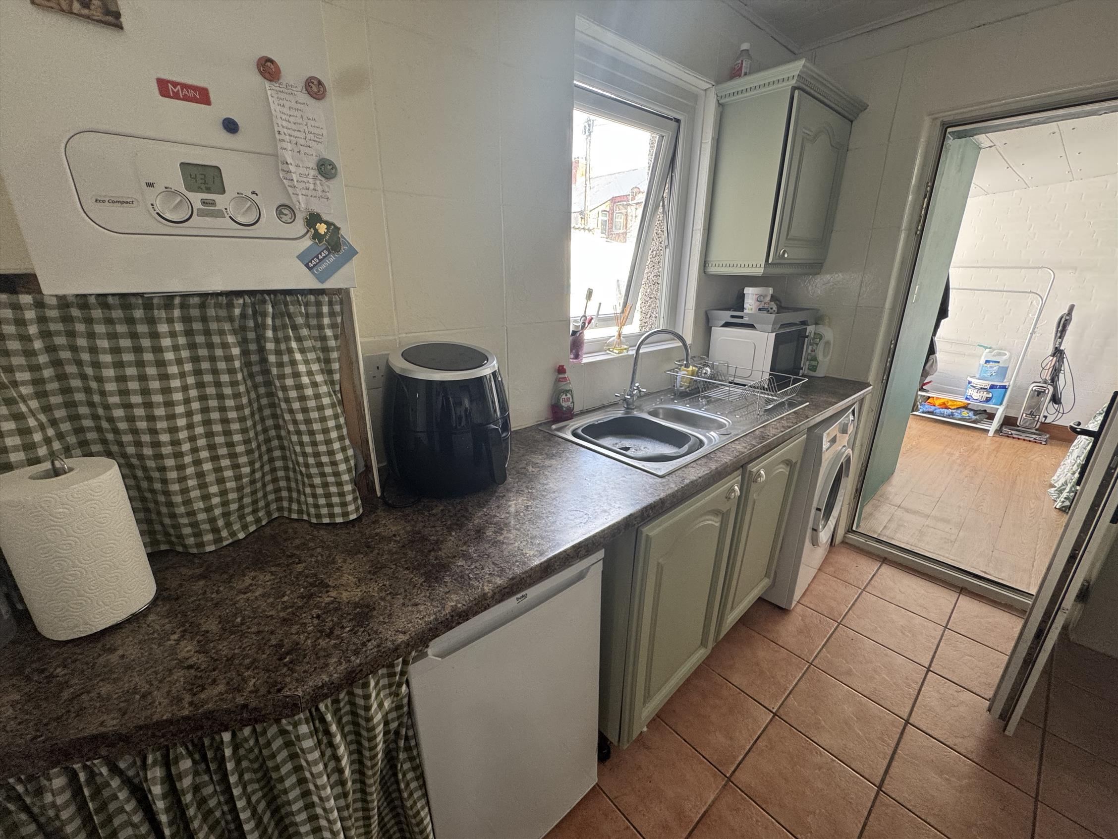 The property briefly comprises of one spacious and cozy reception room, a large modern fitted kitchen with a range of wall and base units, complementary work surface, oven & hob and integrated white goods.