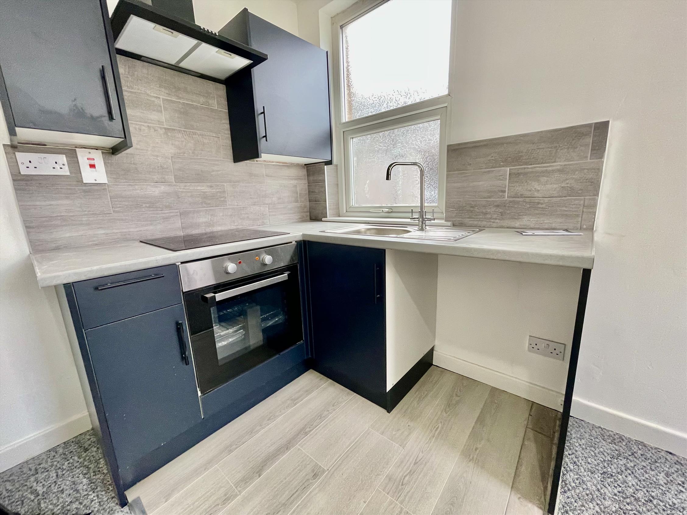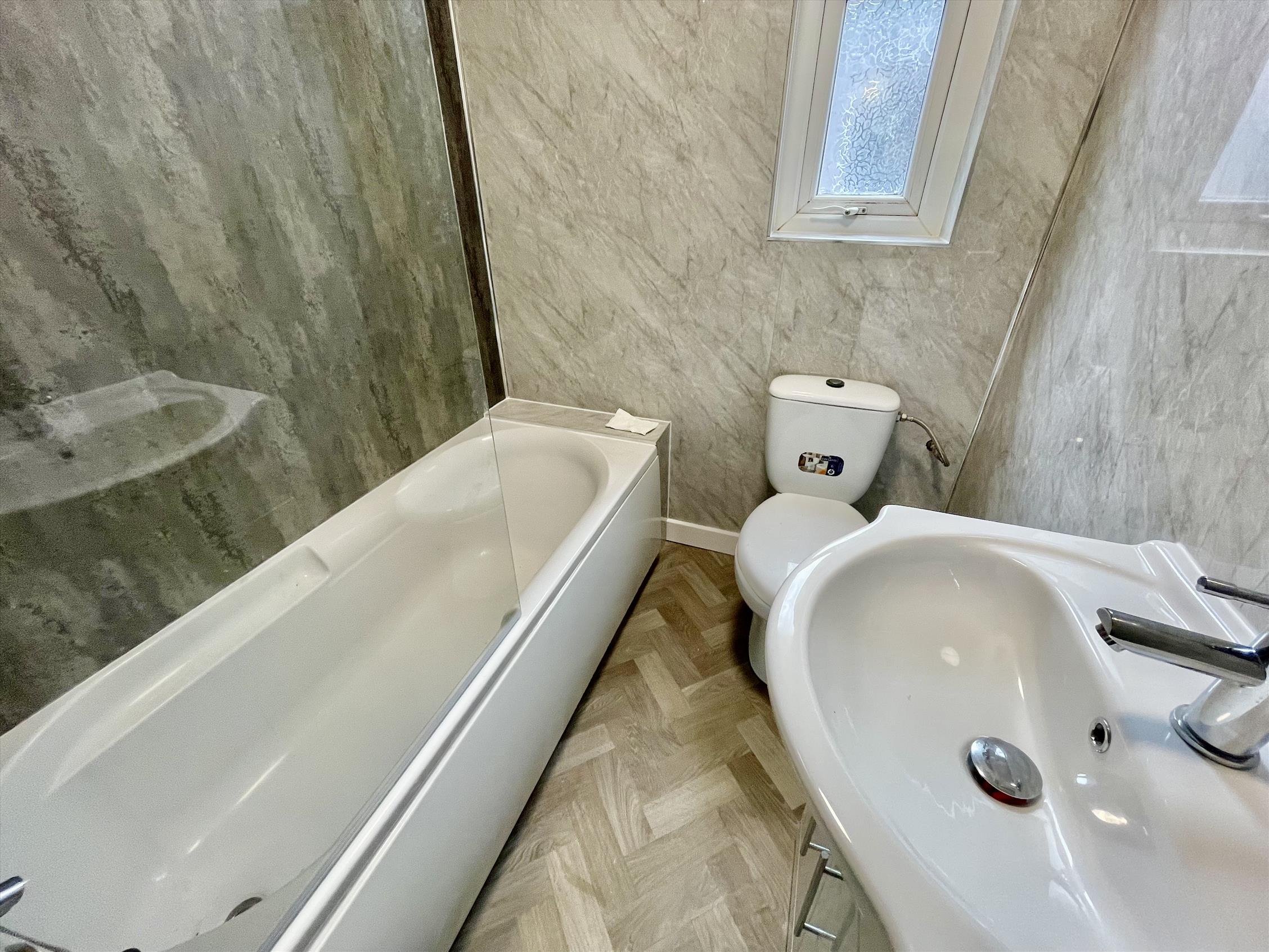 The lounge is lovely and bright, providing open-plan living with the kitchen tucked away in the corner complete with Midnight Blue carcasses and brand new appliances. Just off the hallway, there is a double bedroom and three-piece suite with showerhead over bath.