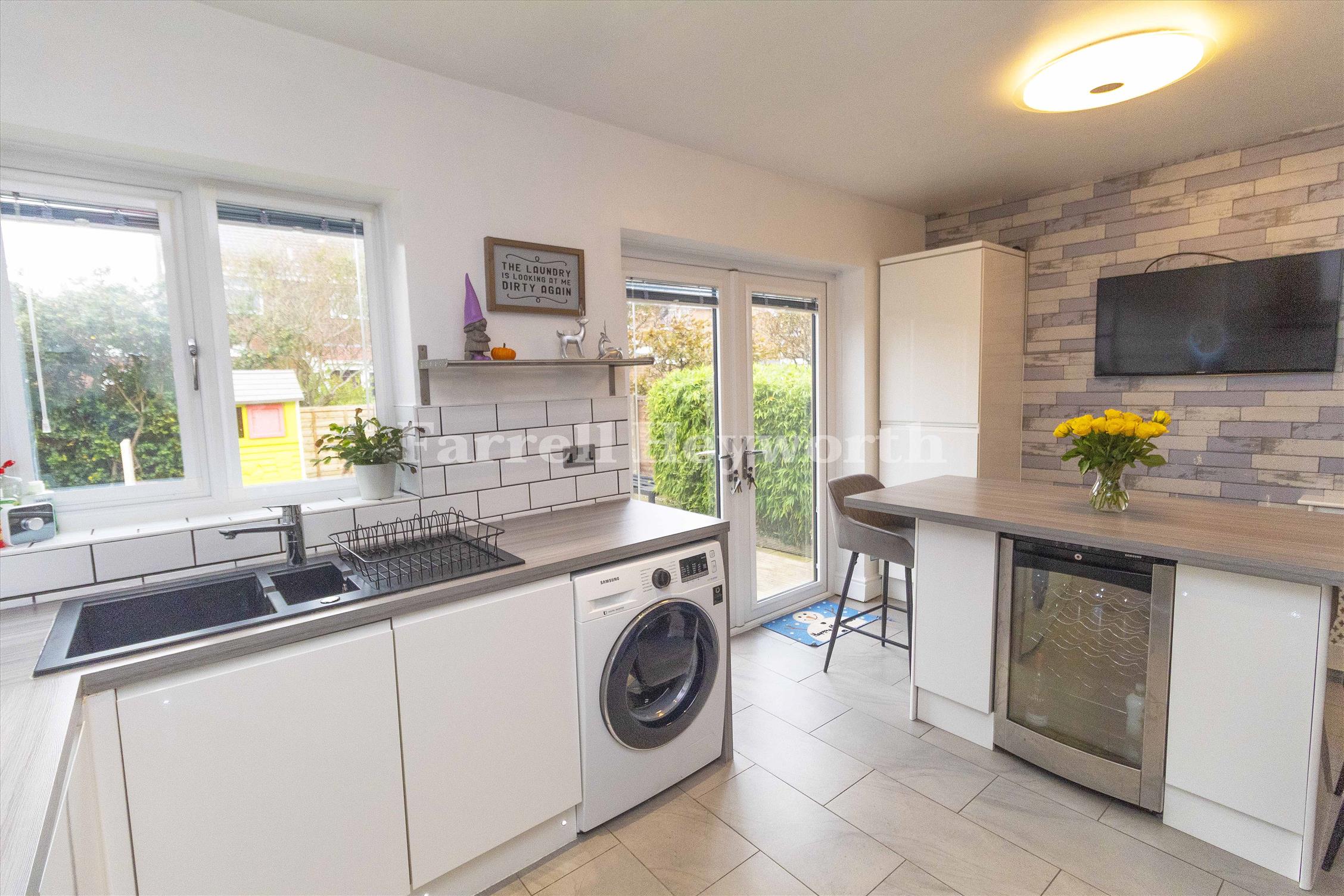 Internally, the accommodation comprises; a light and airy entrance hallway, a WC, spacious lounge, a family kitchen with integrated appliances, a compact utility room and a play room. To the first floor are three bedrooms and a family bathroom.