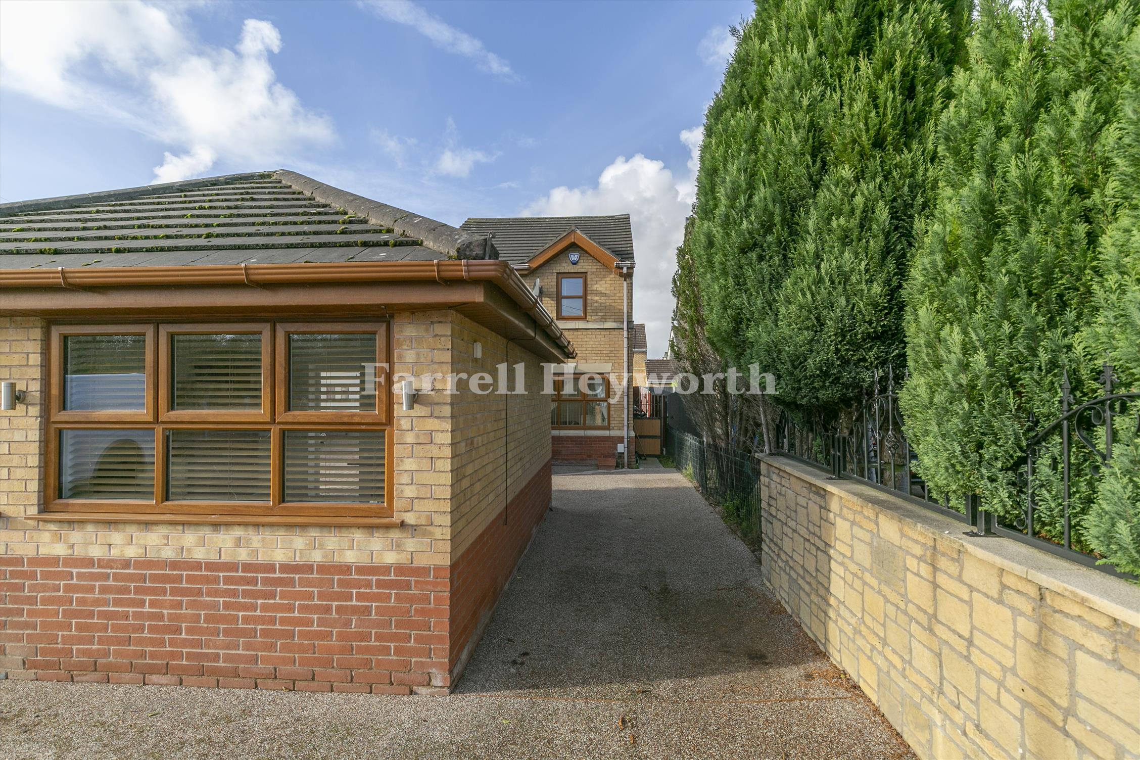 Externally, the home includes front and rear paved gardens with generous outdoor space and an electric gate for privacy and security.