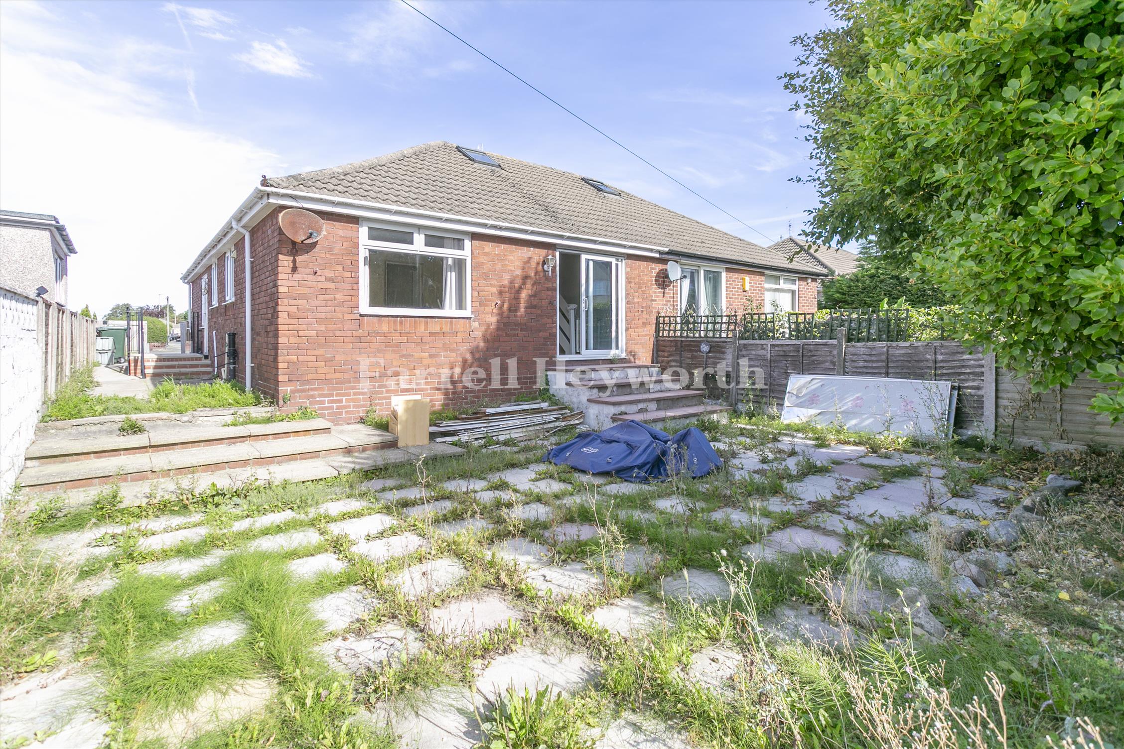Externally, the bungalow features a front driveway for off-street parking and a rear paved garden.