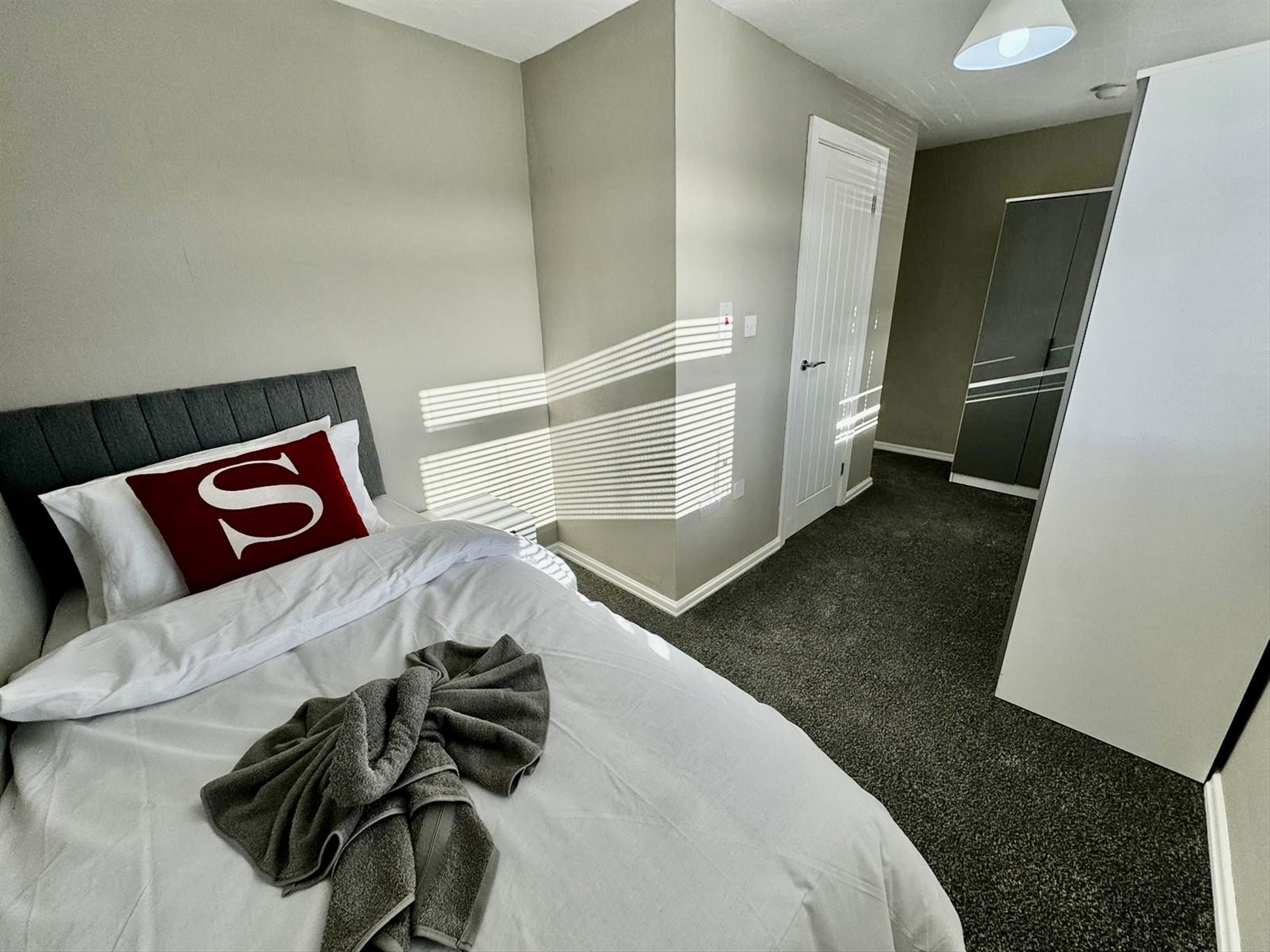 Upstairs are three further bedrooms all with shower en-suite bathrooms, beds, mattresses, curtains and wardrobes.