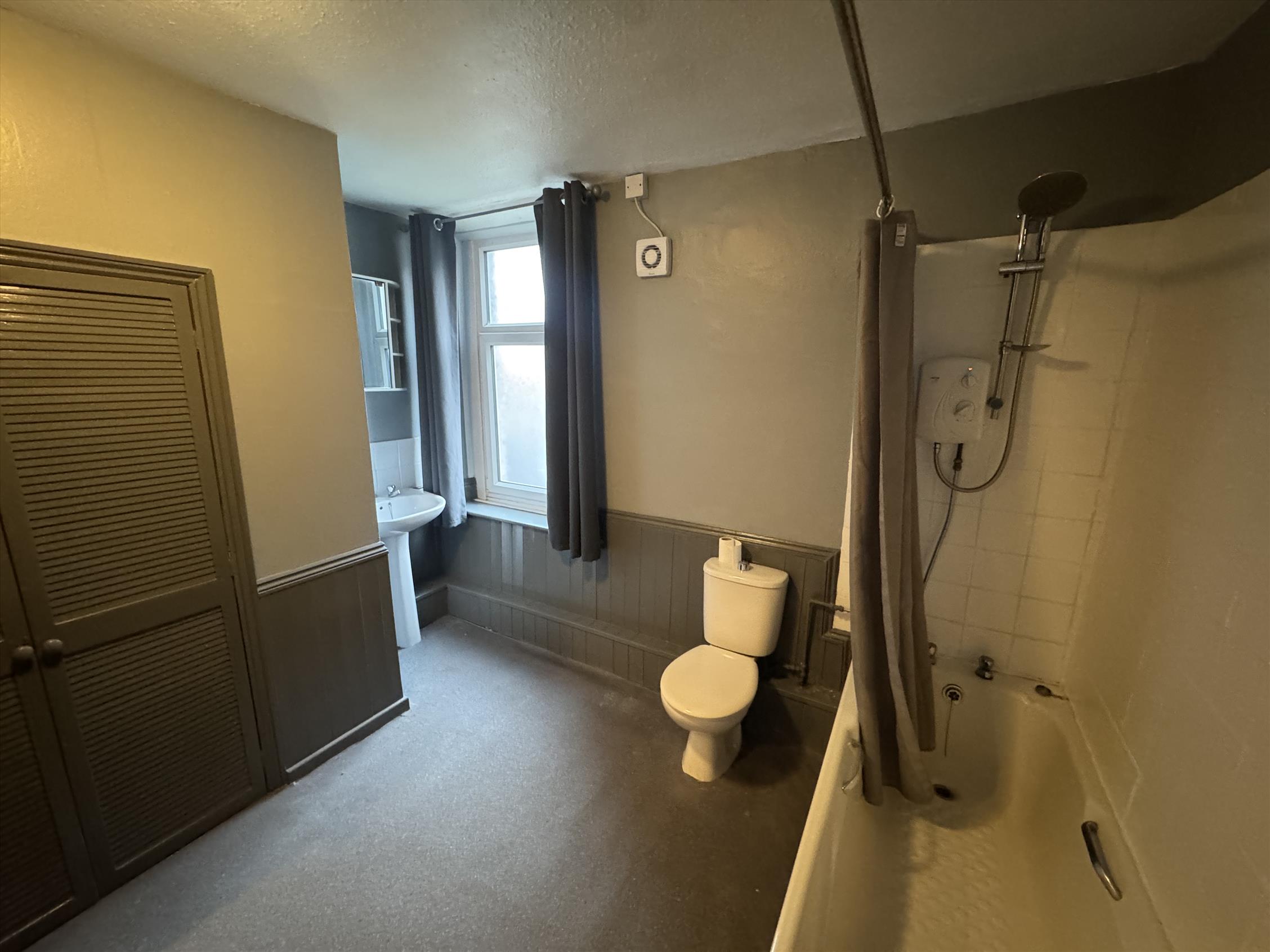 The accommodation is arranged over multiple floors and comprises three generously sized double bedrooms, offering flexible living space ideal for families, professionals or investors alike. A standout feature of the property is the unusually large bathroom, providing ample space for modernisation and potential reconfiguration.