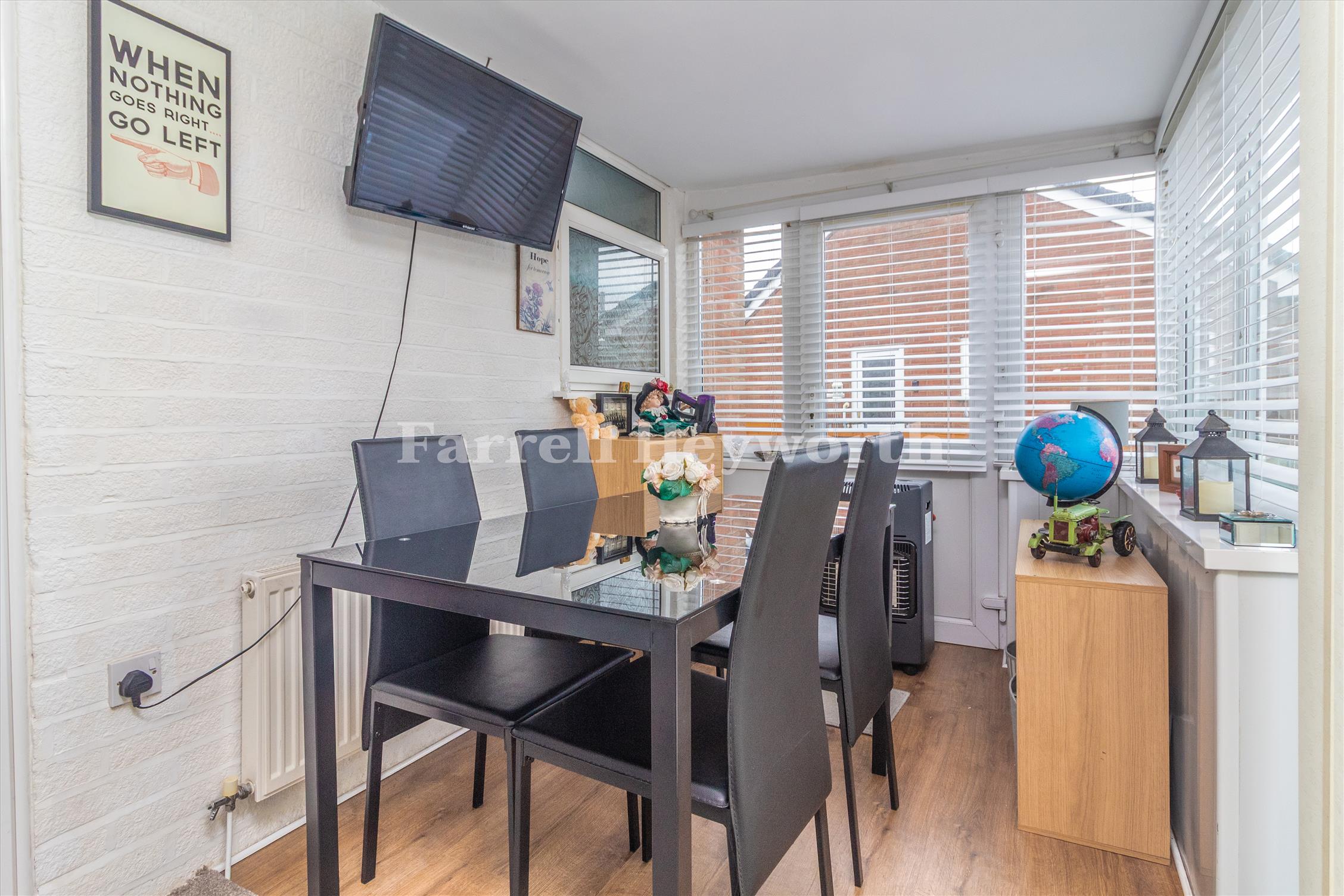 There is a principally lawned front garden, block paved driveway, garden store/workshop and a low maintenance rear garden.