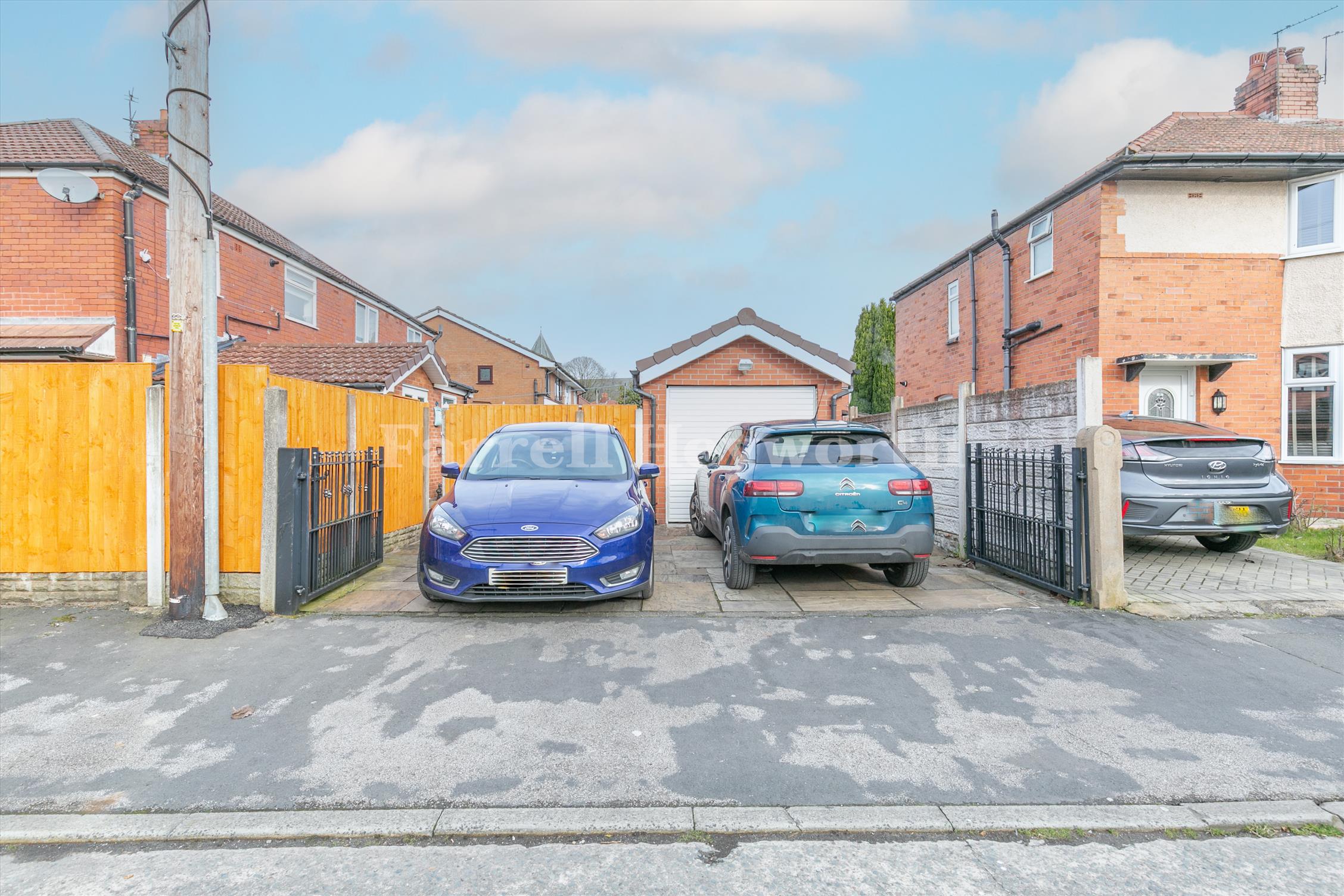 Externally, the property benefits from a rear garden, side gardens, a garage and a driveway providing parking for two cars.