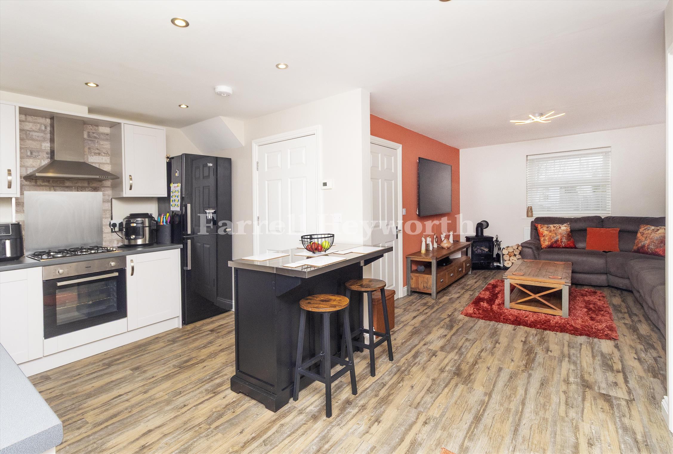 Internally, on the ground floor the accommodation comprises of a light and airy entrance hallway, a through lounge and wow factor dining/family kitchen area with integrated appliances and a WC.