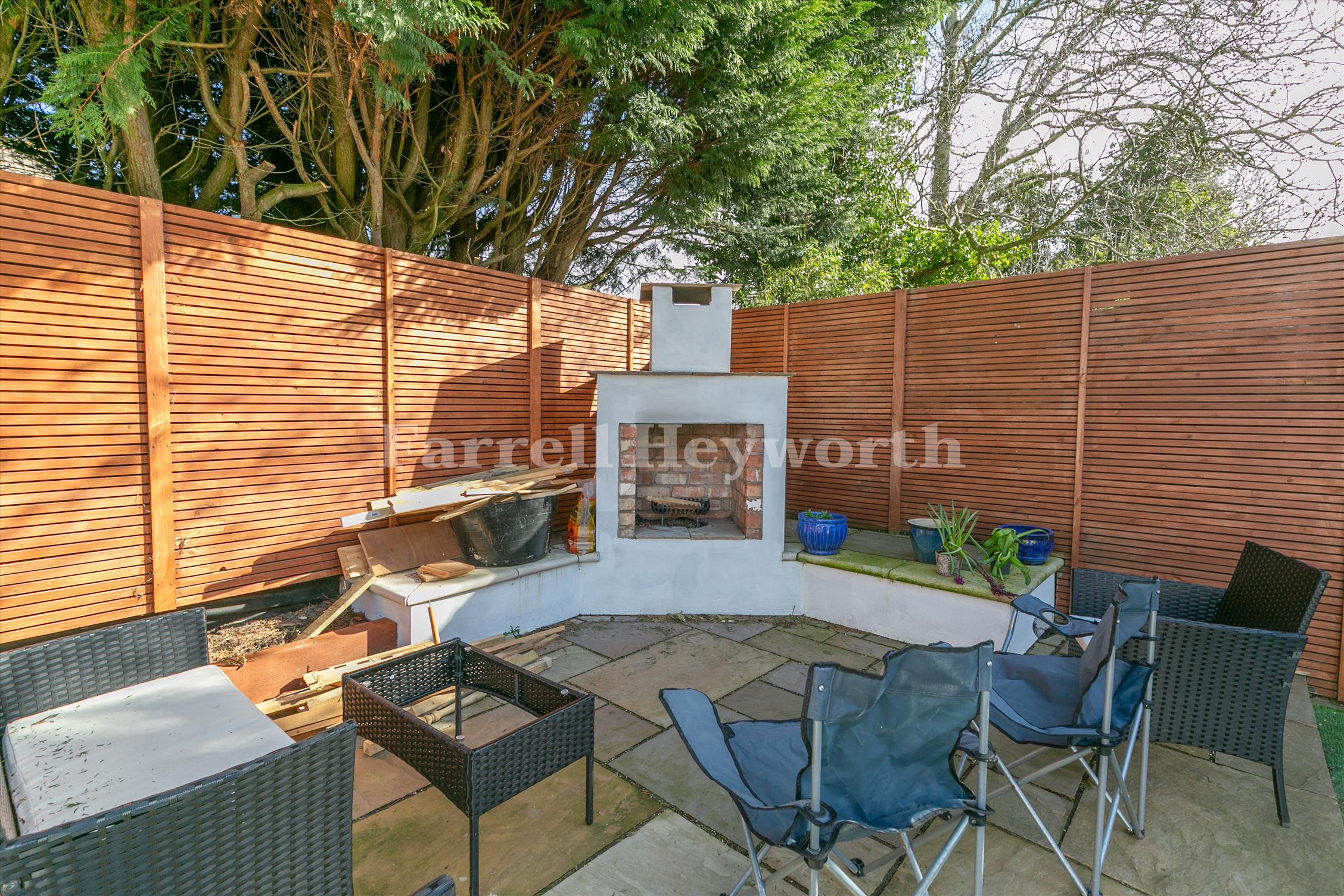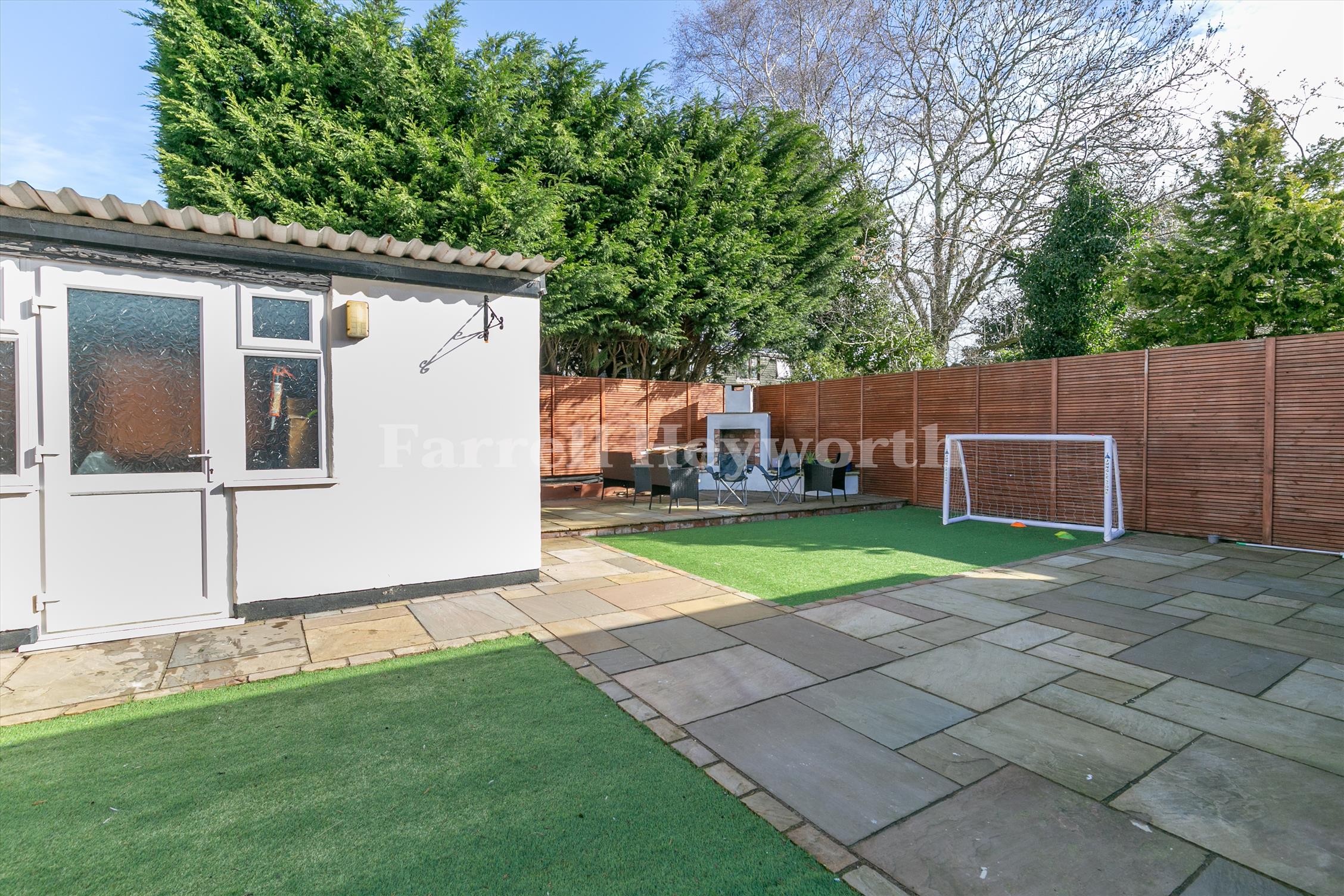 Externally, there is a rear garden with a BBQ area and an outhouse, along with a front gravelled area and a driveway for parking.