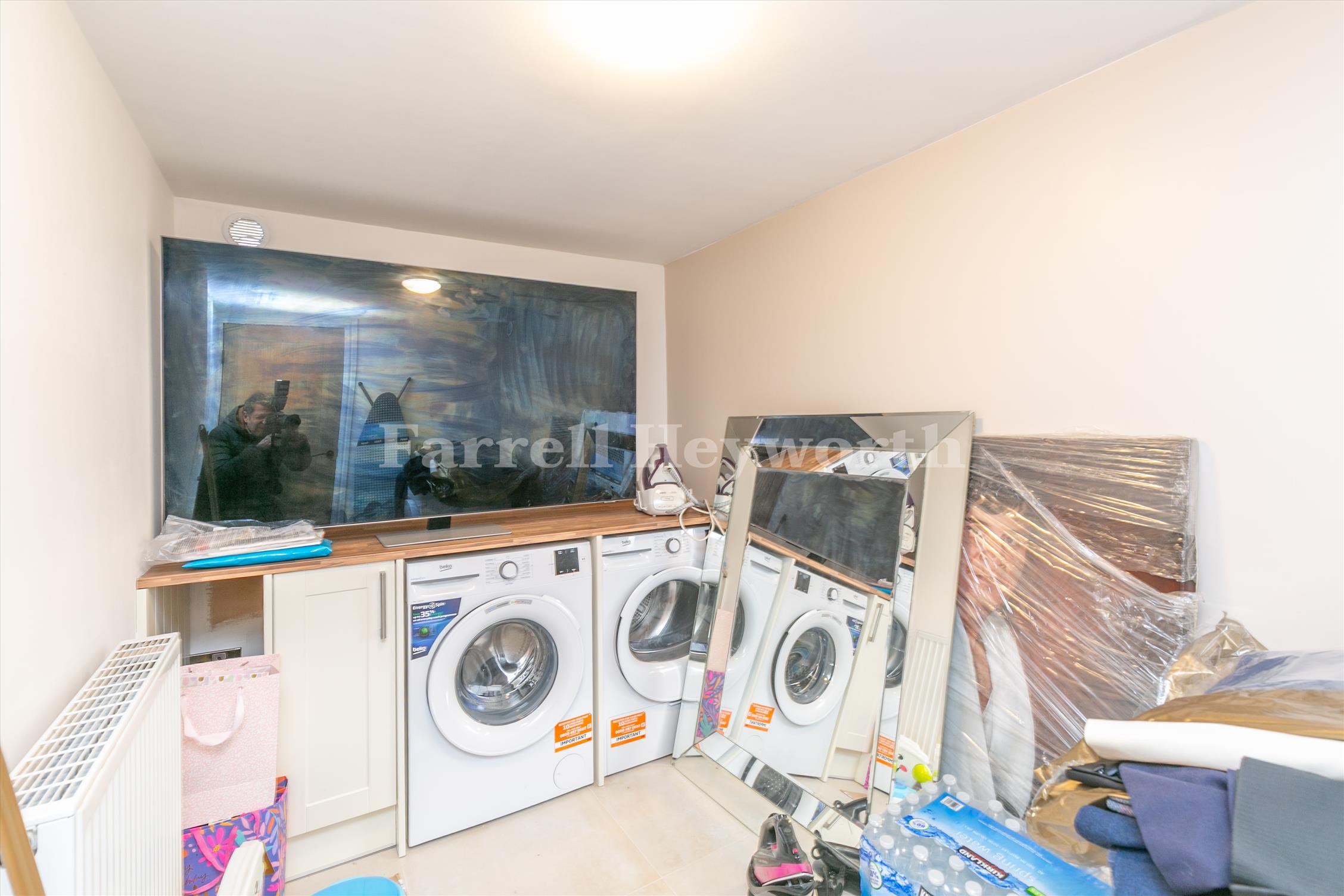 The accommodation also includes a practical downstairs toilet and a useful utility room. Upstairs, a family bathroom serves the three bedrooms, and the property benefits from solar panels installed on the roof.