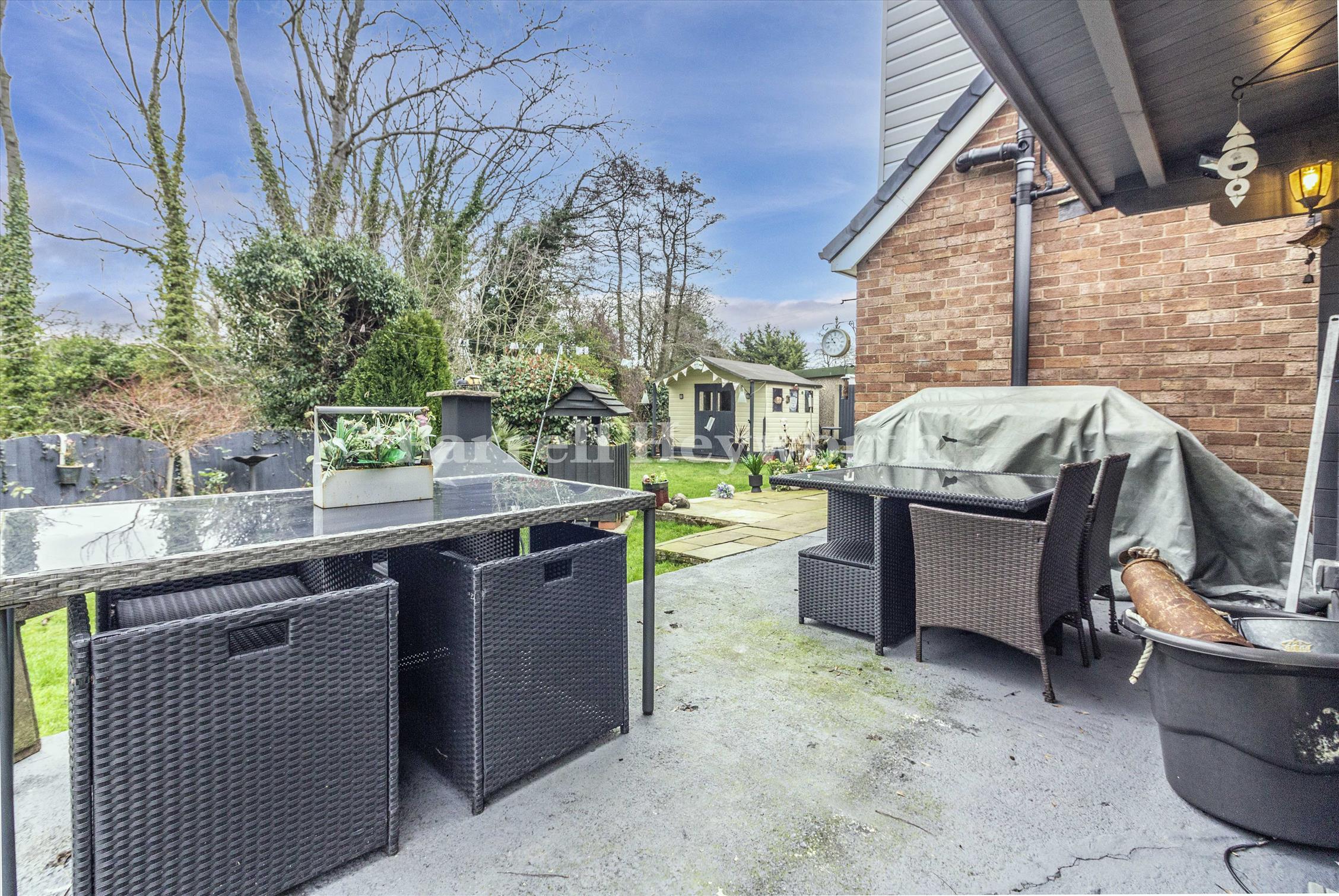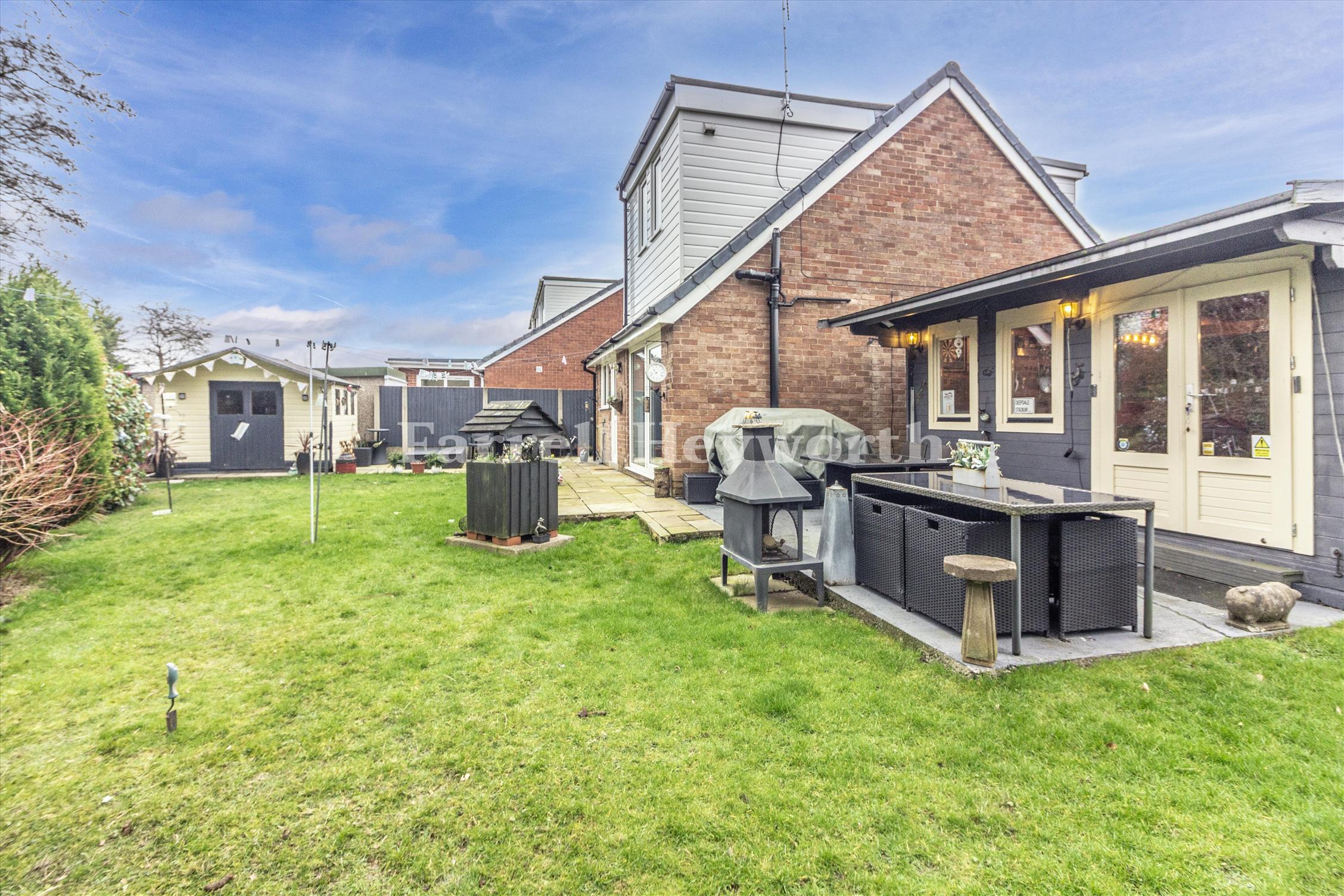 Attractive rear garden with patio seating area and lawn