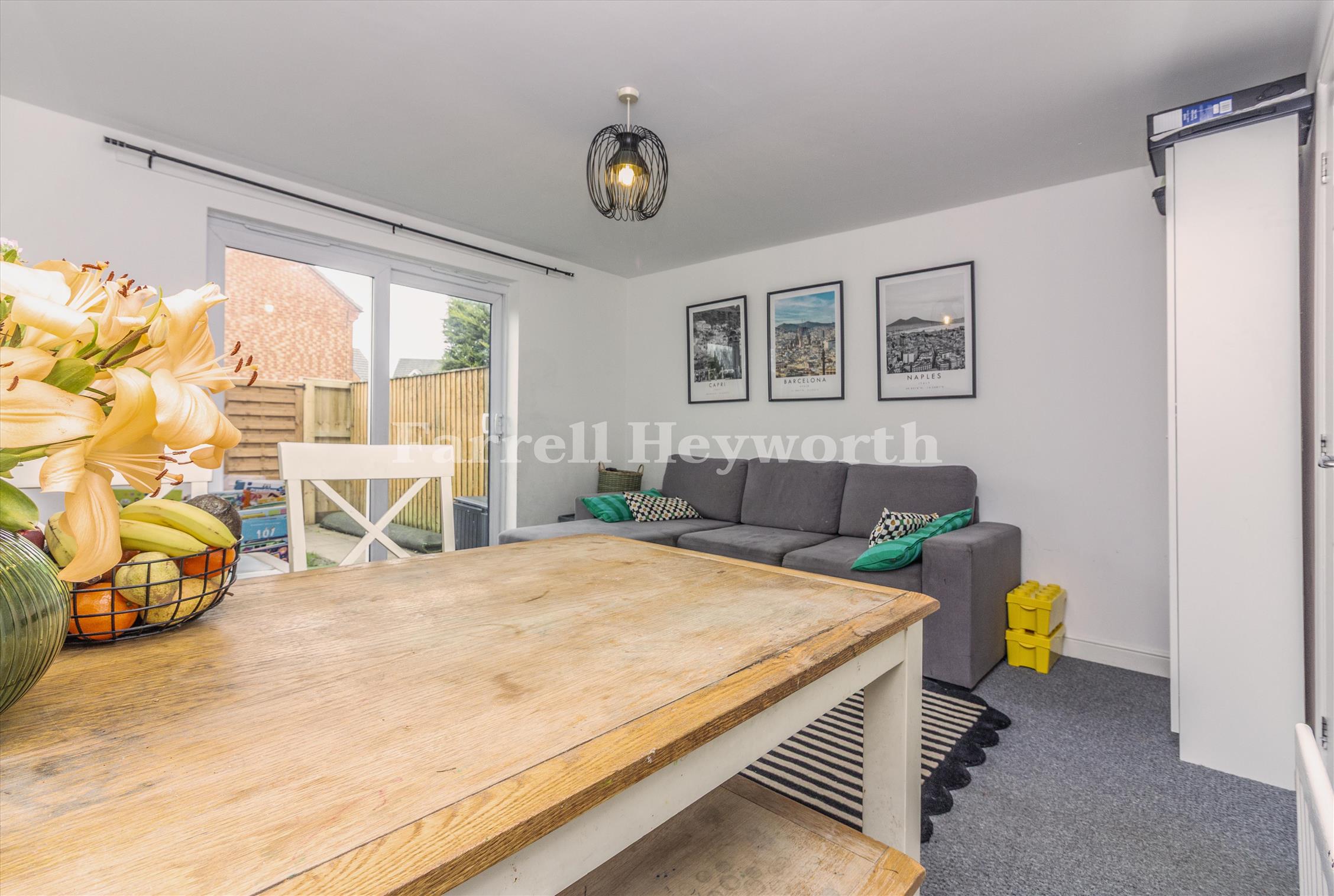 Two well-proportioned bedrooms. Spacious lounge/diner with views to the rear garden. Modern fitted kitchen. Ground-floor WC. Family bathroom to the first floor. Enclosed rear garden. Allocated parking.