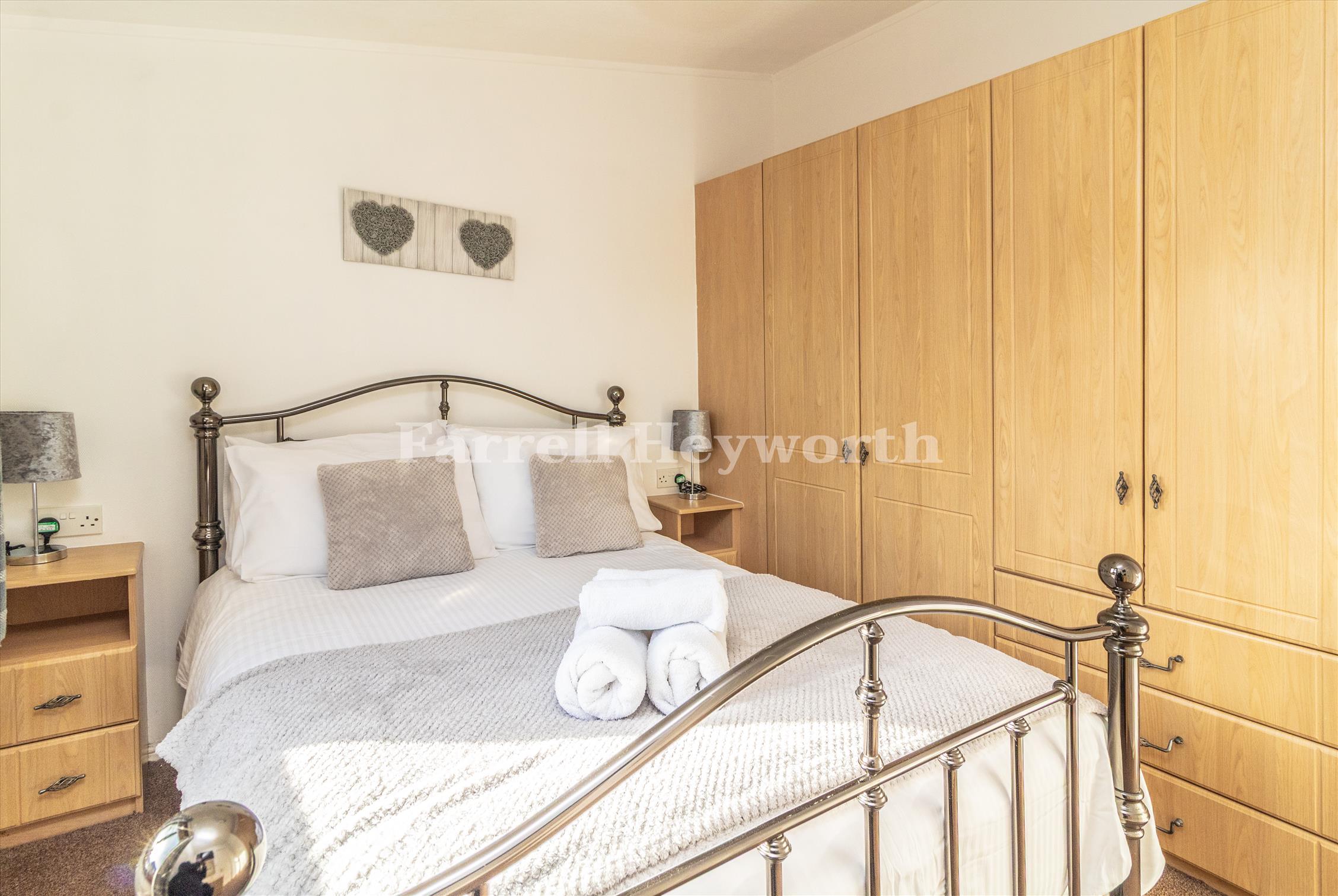 The lodge features three bedrooms, all with fitted wardrobes, with two enjoying their own en-suite facilities. A modern shower room completes the internal layout.