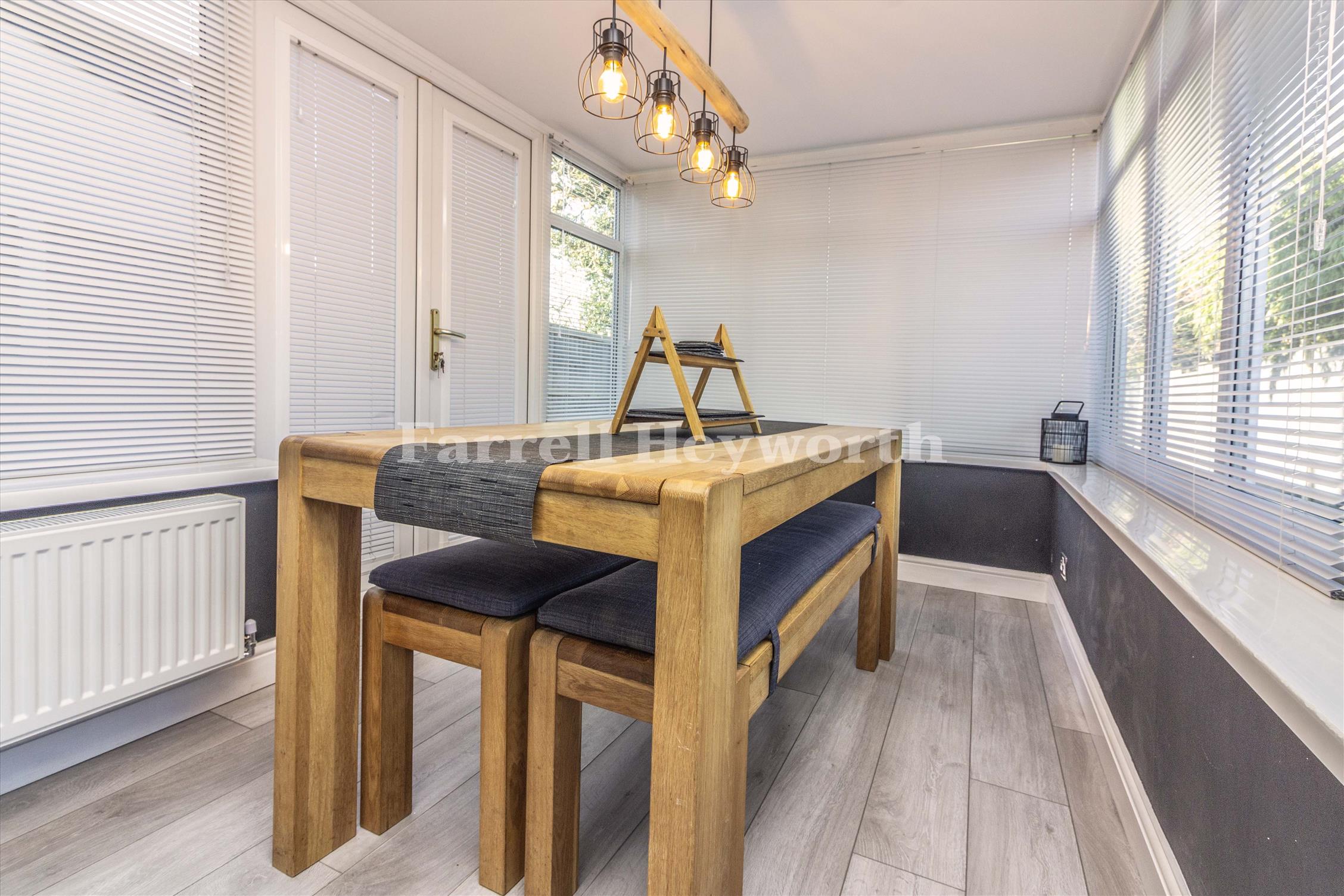 Spacious three-story layout offering excellent versatility. Four well-proportioned bedrooms, including a top-floor primary suite. Bright and airy conservatory overlooking the rear garden. Modern kitchen and generous lounge/dining areas. Family bathroom plus two en suites. Driveway parking and great size gardens.