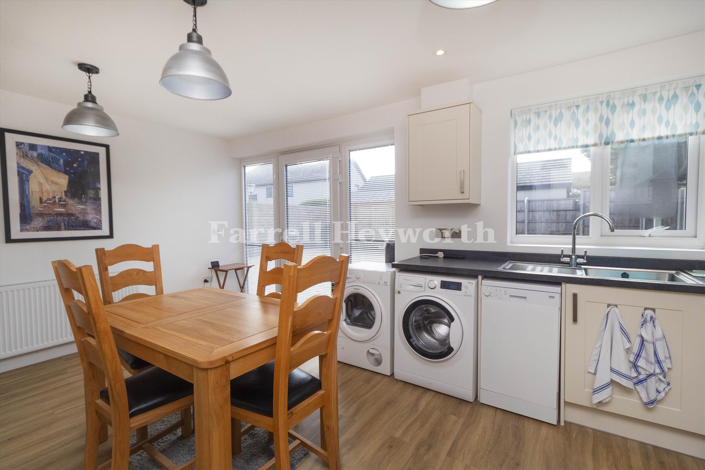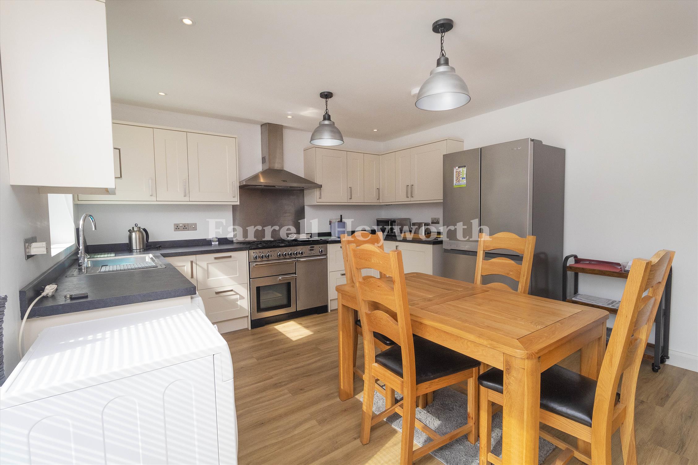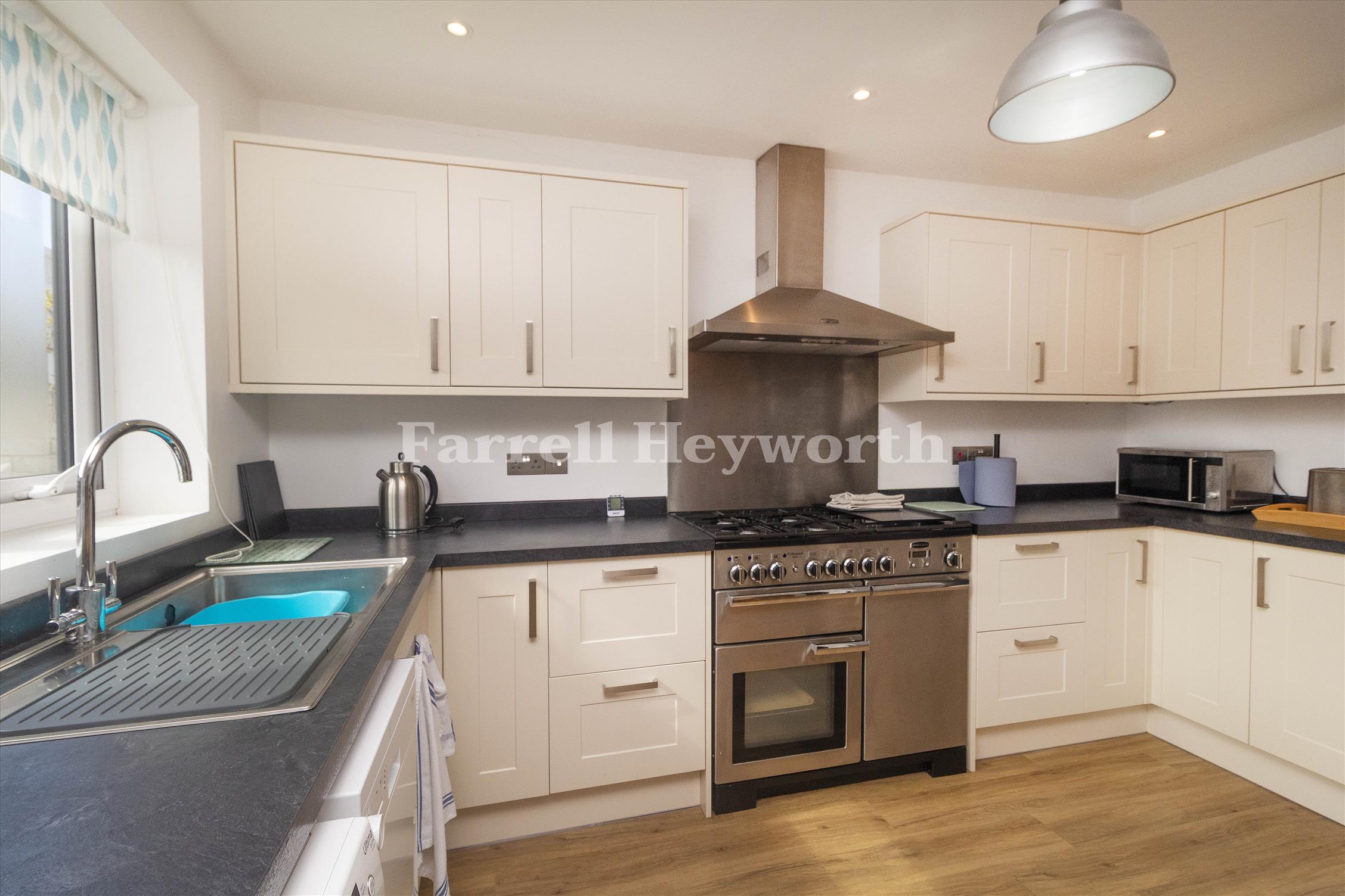 The ground floor features a bright, modern kitchen equipped with ample storage and workspace. The thoughtful layout includes three well proportioned bedrooms and two well-appointed bathrooms and a practical, contemporary wet room.