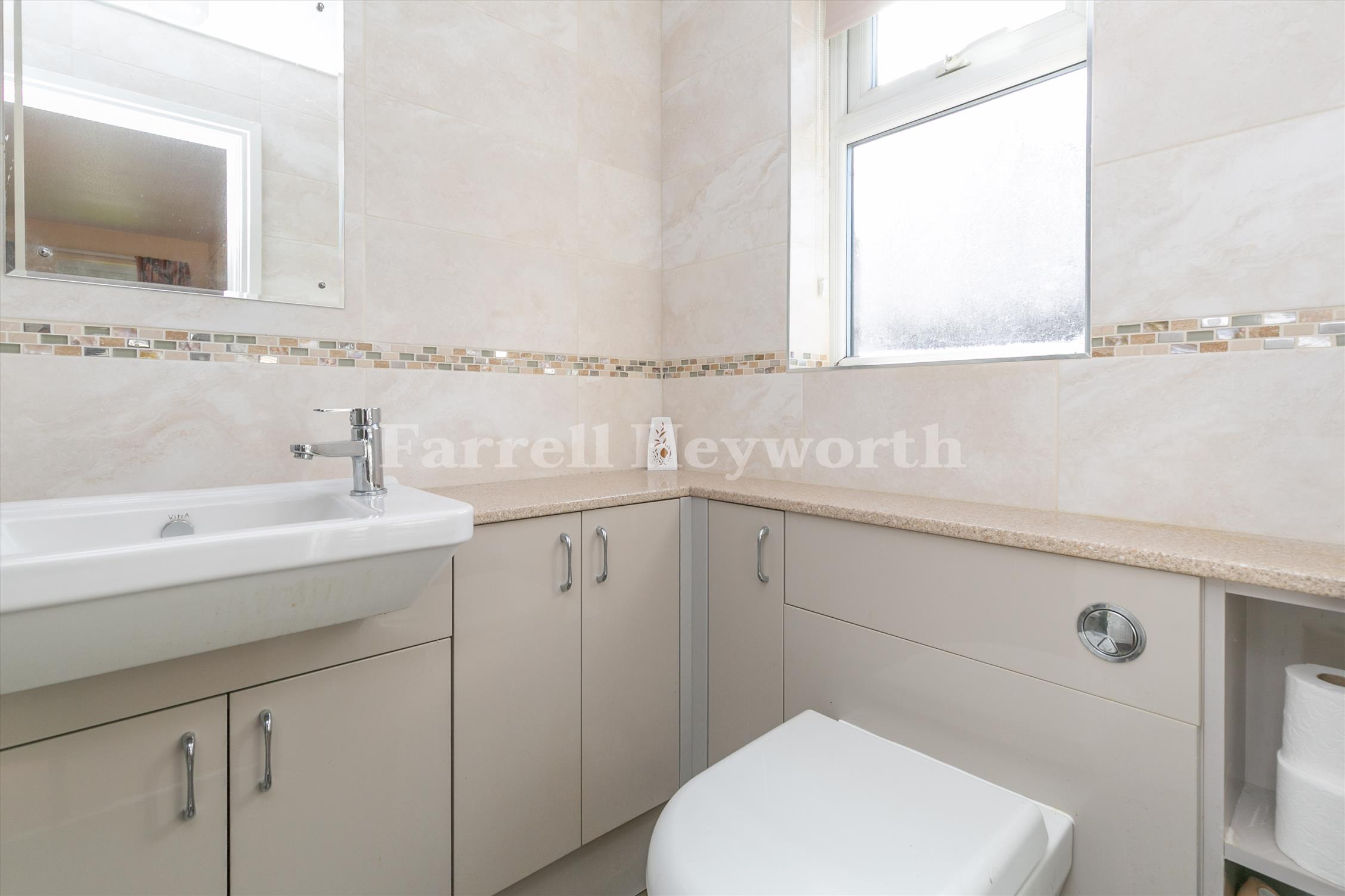 Upstairs, the master bedroom benefits from fitted wardrobes and an en-suite shower room. A family bathroom serves the additional three bedrooms.