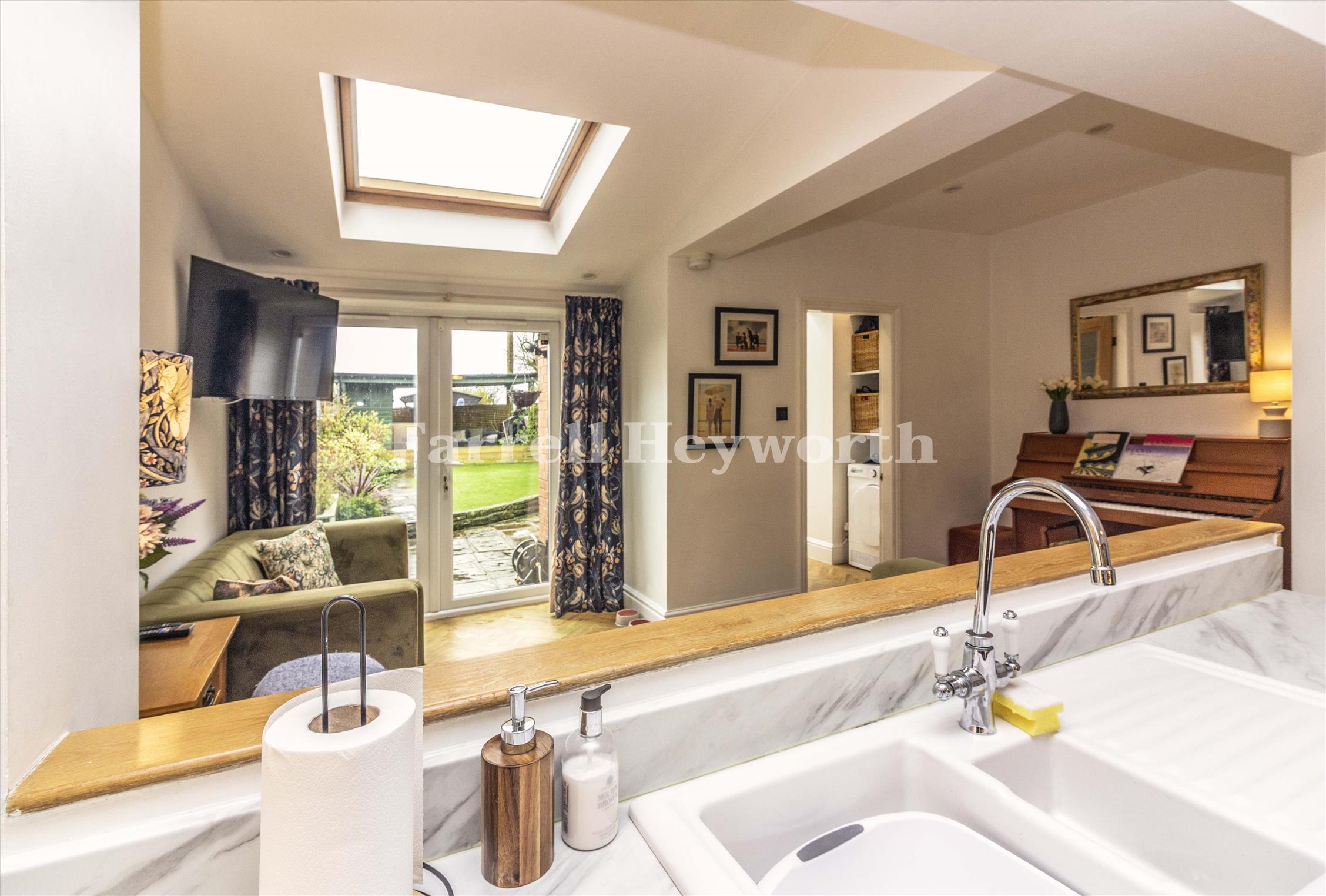 The rear garden is a real highlight: a good-sized, low-maintenance space with a seating area and an enclosed entertaining zone at the far end. It’s ideal for summer gatherings, family time or simply unwinding in a private outdoor setting.