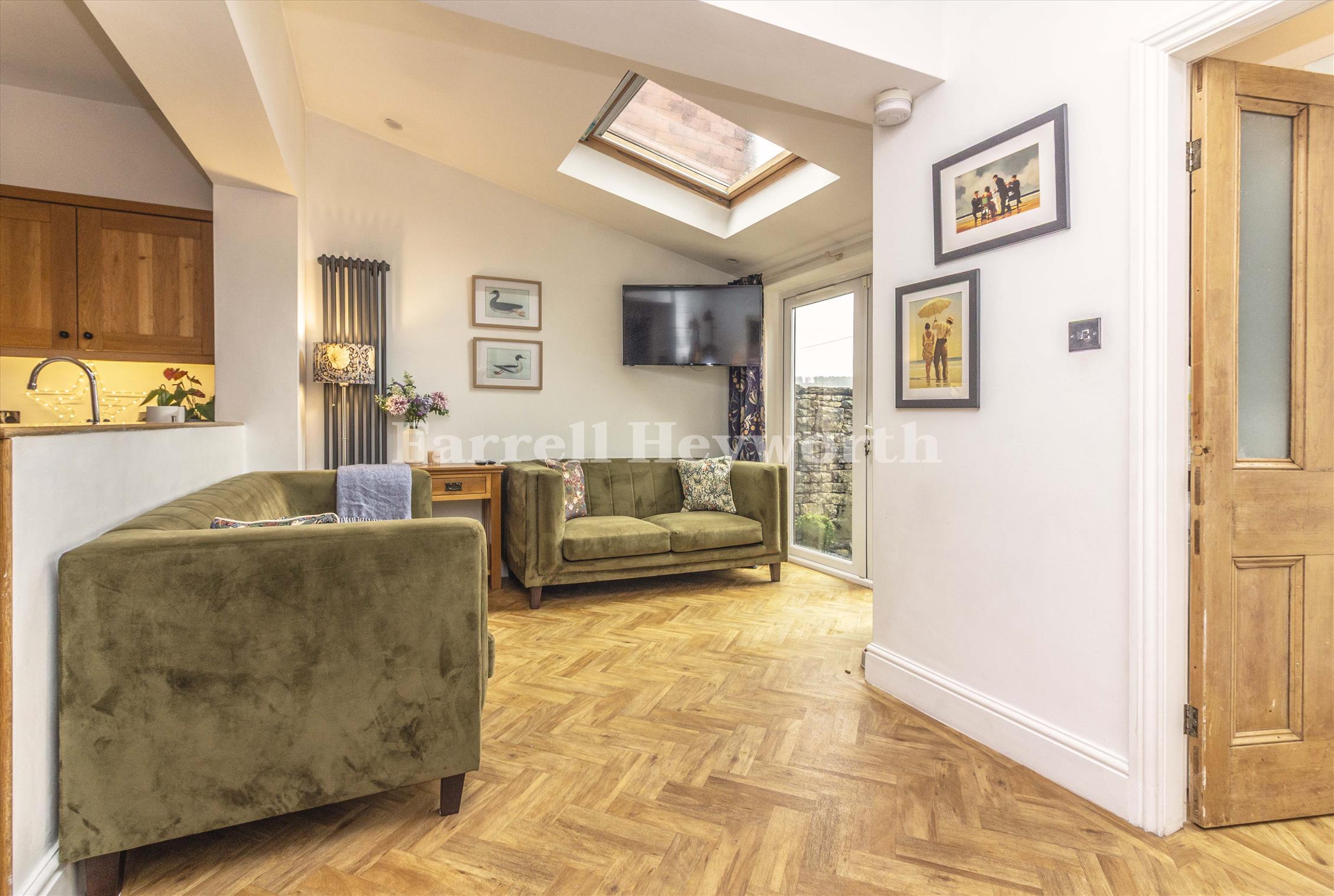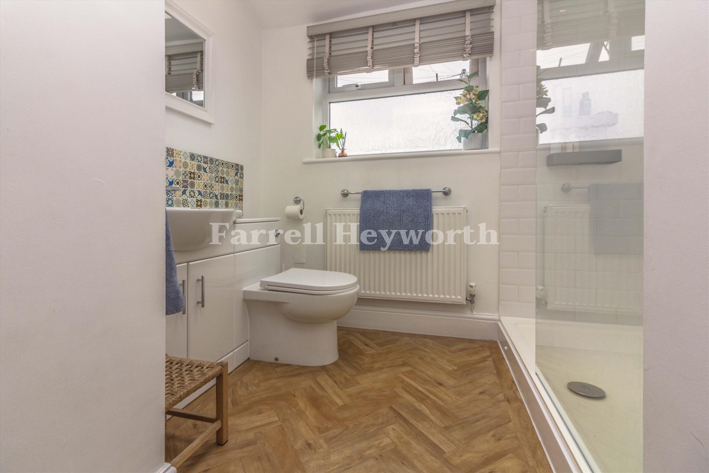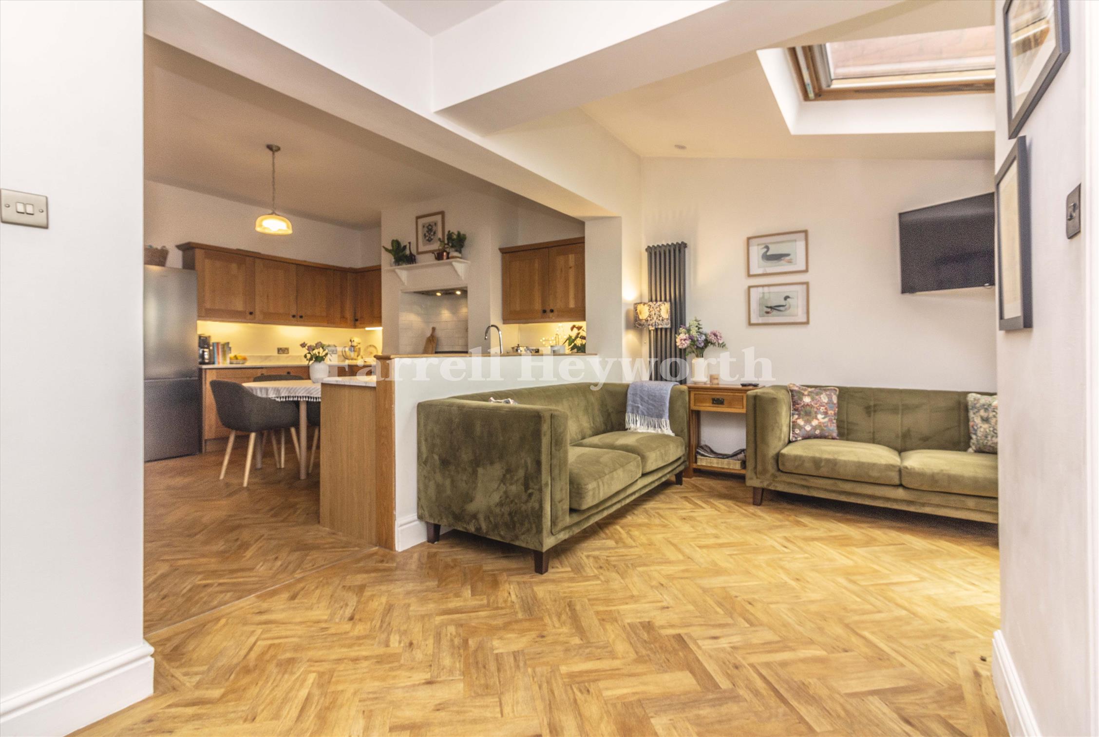 A welcoming vestibule entrance leads into a bright hallway, setting the tone for the character found throughout. To the front sits a cosy lounge, perfect for relaxing evenings. The rear of the property opens into a stylish fitted kitchen, flowing seamlessly into an extended family/dining room. This impressive open-plan space is flooded with natural light and features double doors opening onto the rear garden, creating a wonderful indoor-outdoor feel. Practicality is well catered for with a combined downstairs shower room and utility area, ideal for busy family life. The first-floor landing leads to a great-sized family bathroom and three well-proportioned bedrooms. The main bedroom enjoys lovely views over the rear garden and surrounding greenery, adding to the home’s peaceful appeal. A permanent staircase leads to a loft room, perfect as a home office, playroom, hobby space or additional occasional bedroom.