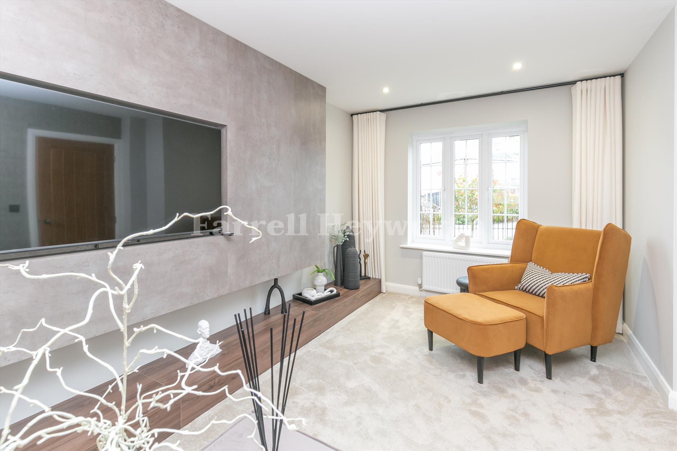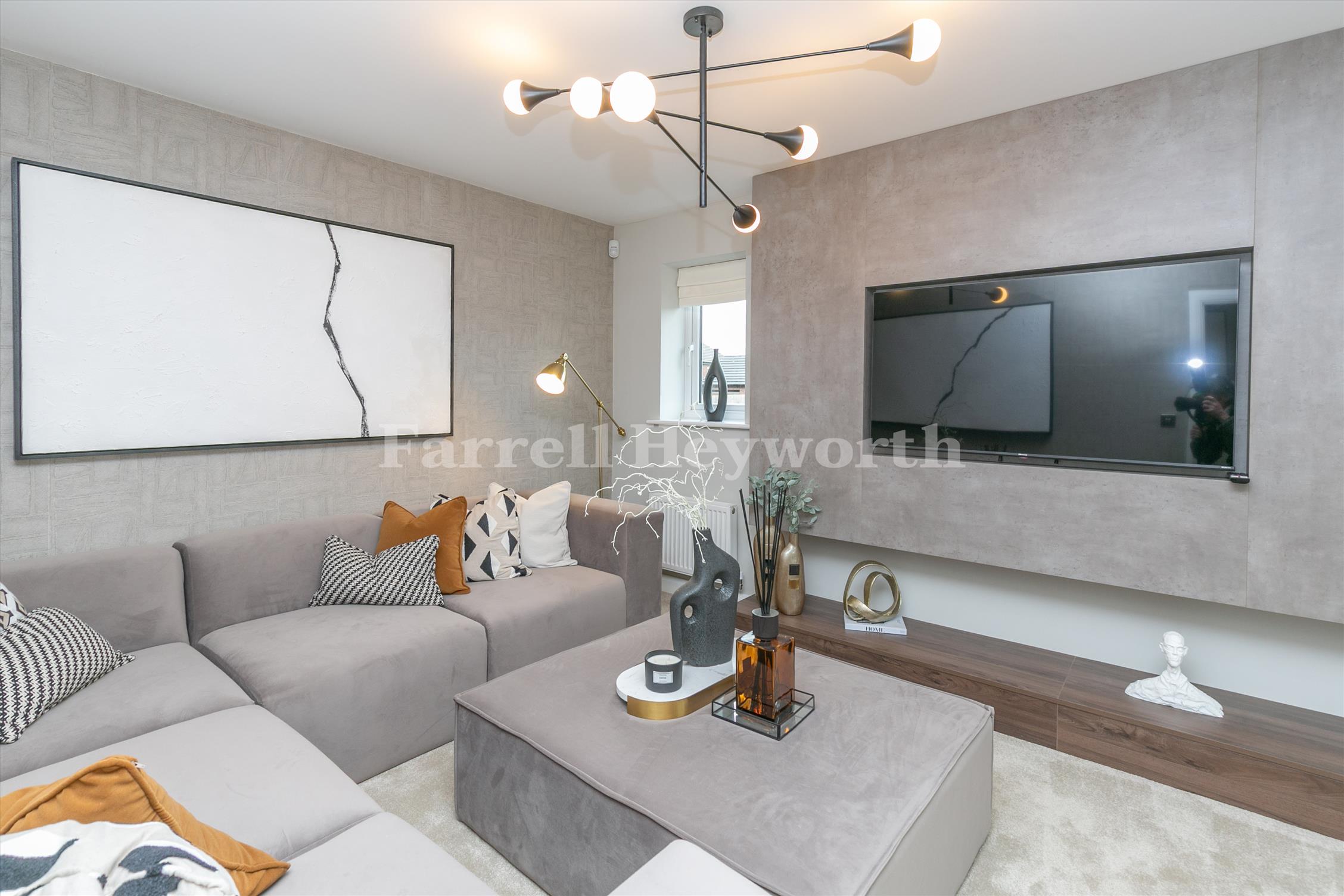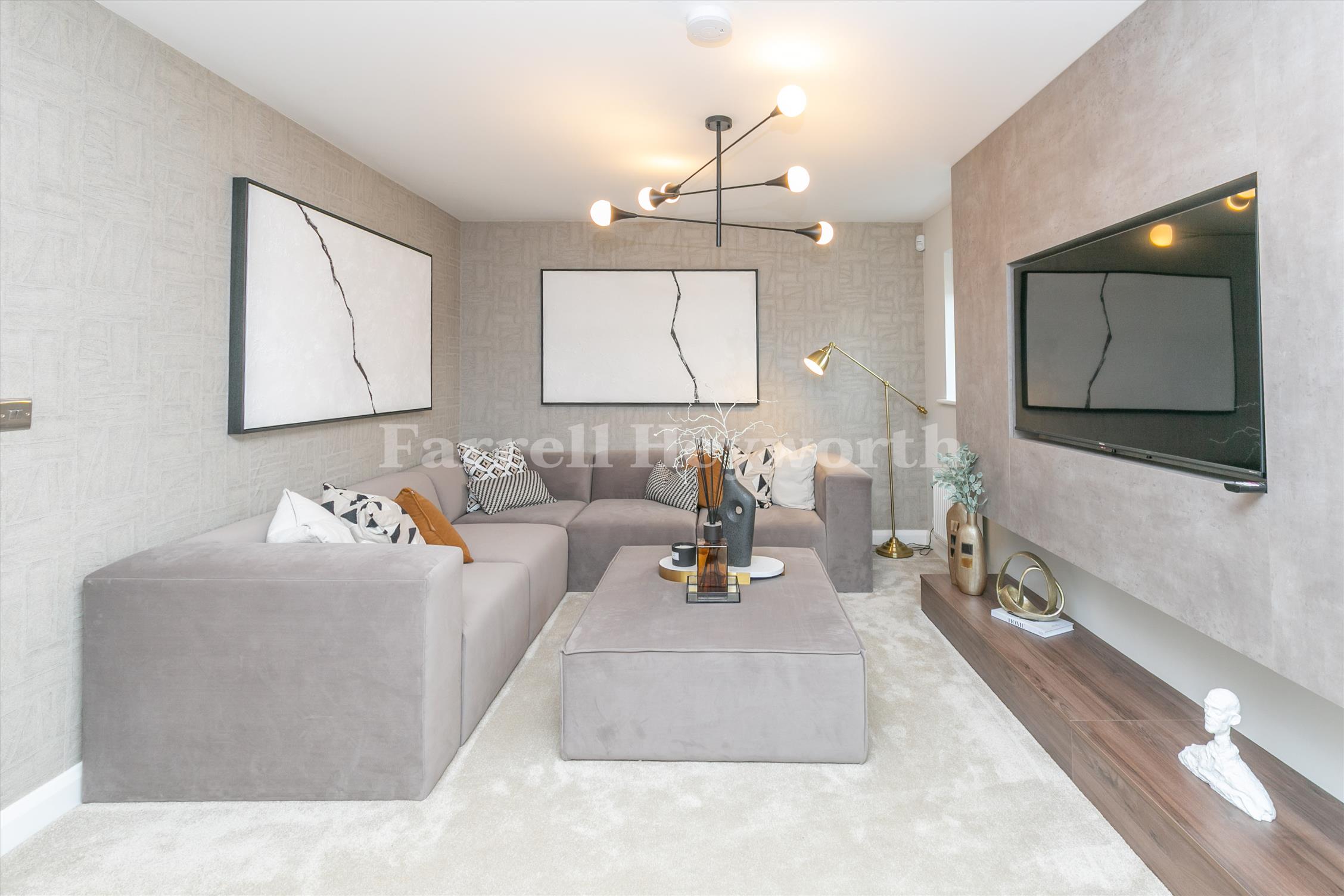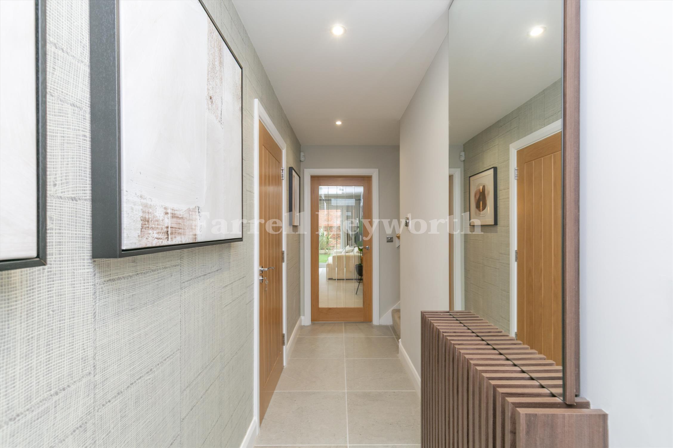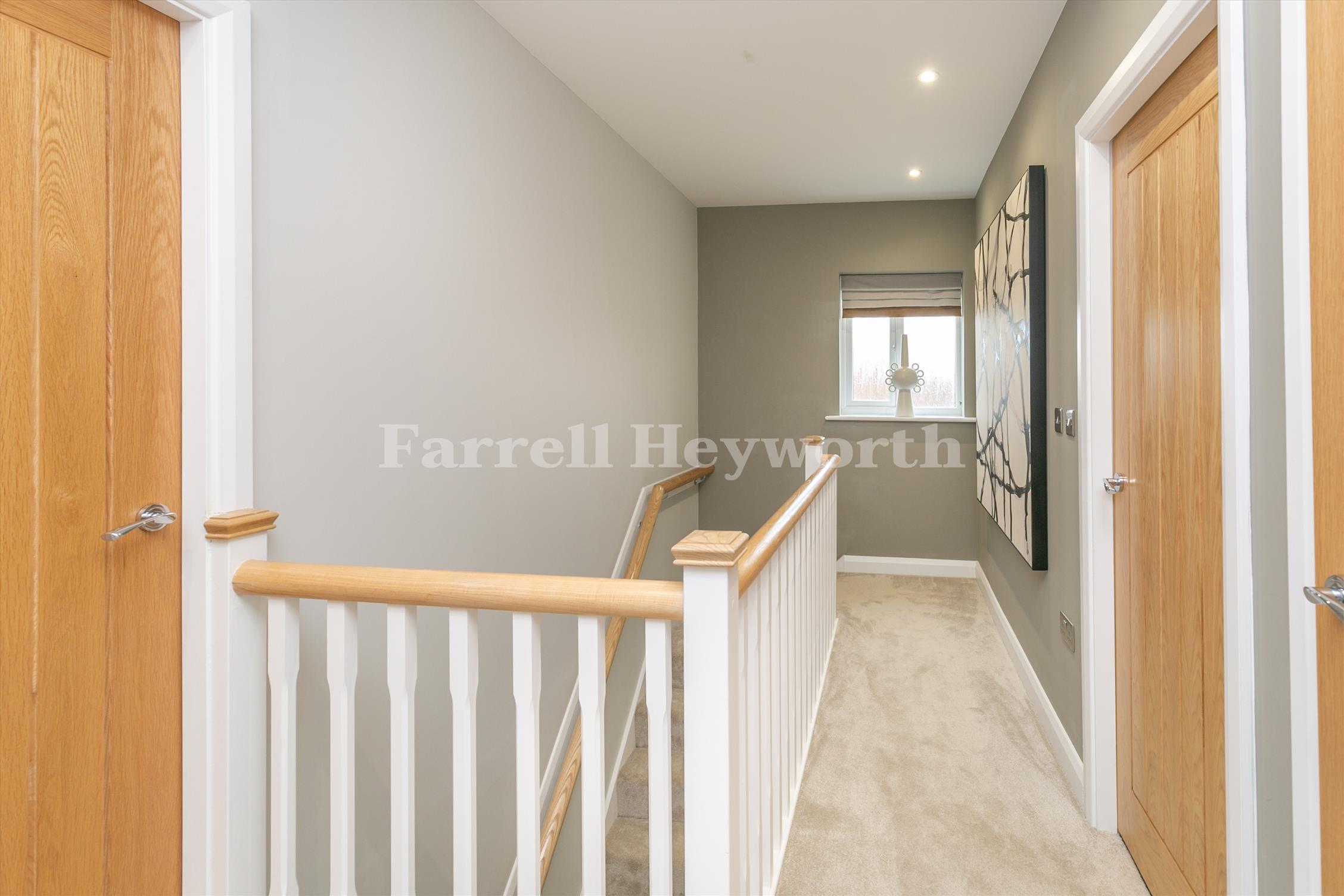 The socialising space adjoins the modern kitchen, dining space and family area, boasting a breakfast bar plus space for a family/dining table. The ground floor is completed with a utility room, storage space, WC and integral garage. A spacious landing opens up the first floor of the property, featuring four double bedrooms, one with en-suite, and a separate family bathroom.