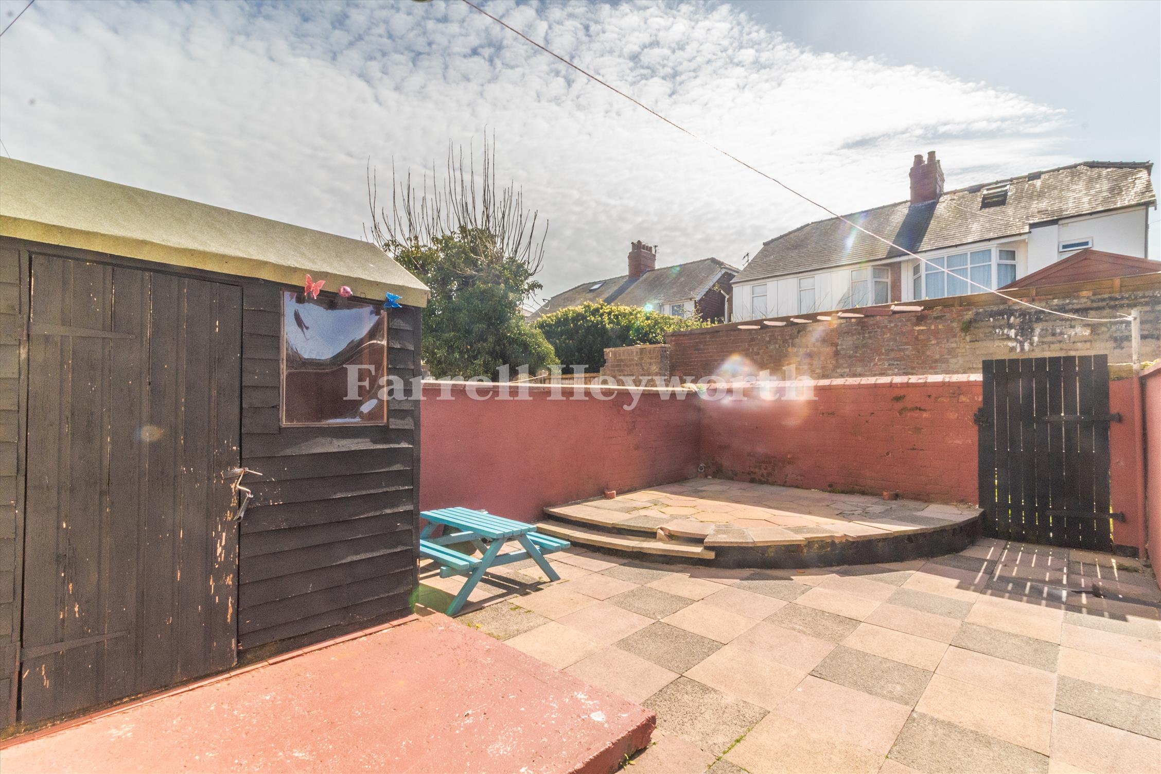 To the rear of the property is a good sized walled enclosed paved seating area.