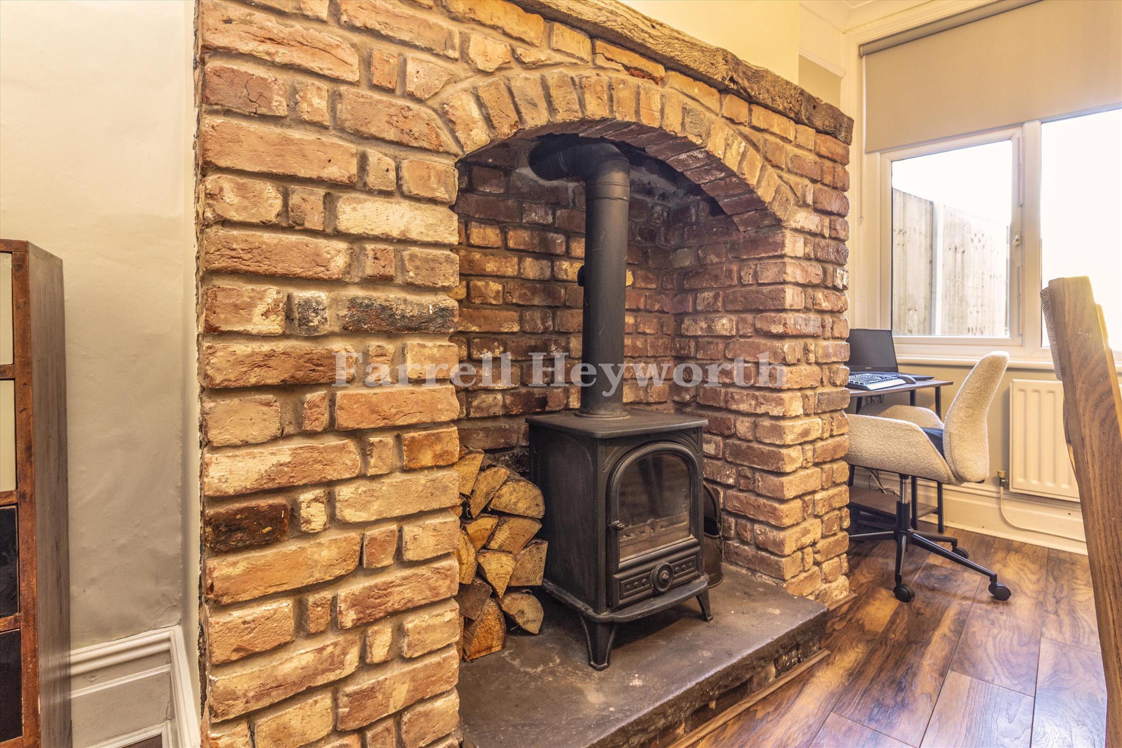 The accommodation combines character and modern comfort, featuring a spacious lounge, a charming dining room with a feature fireplace flowing into a stylish fitted kitchen, a contemporary bathroom and three generous bedrooms. The second bedroom offers superb versatility, making it an ideal space for a dedicated home office or a serene nursery.