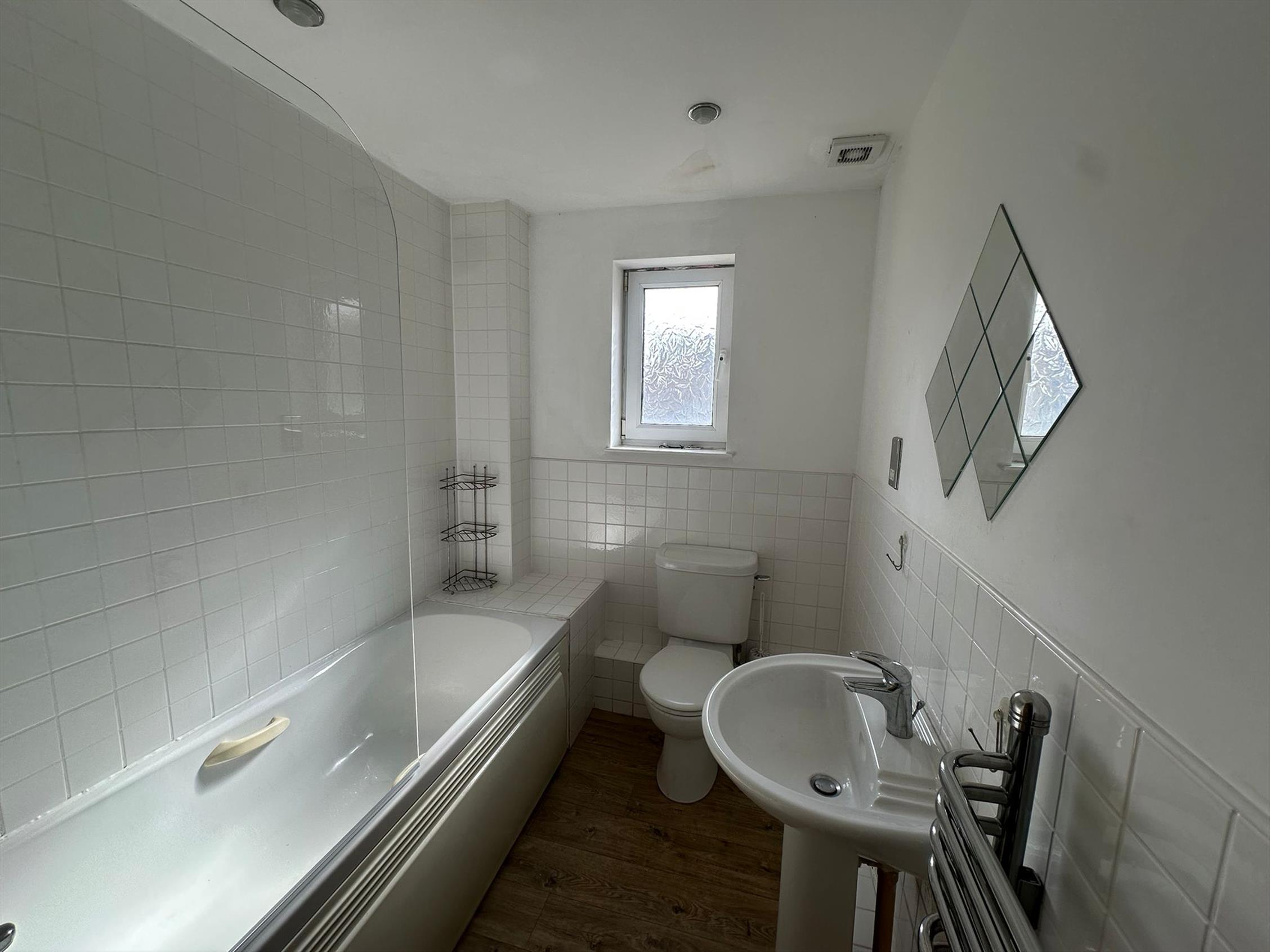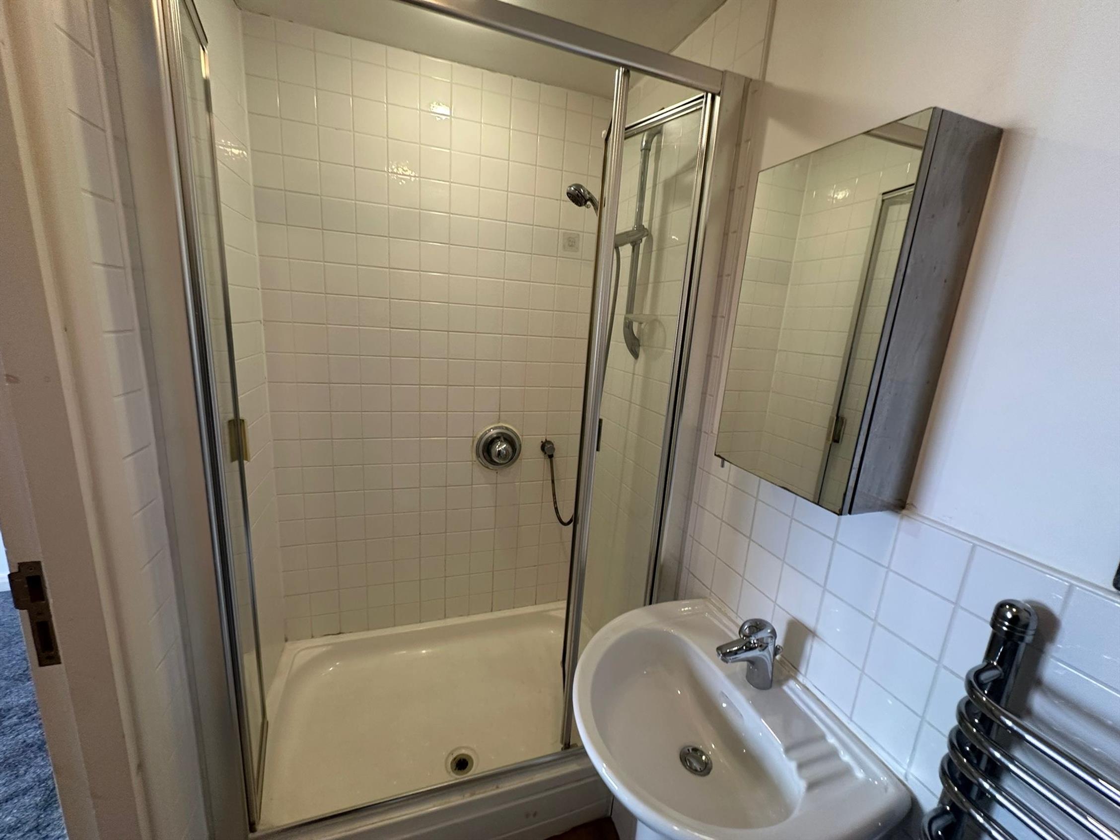 Master bathroom with three piece suite and over bath shower.