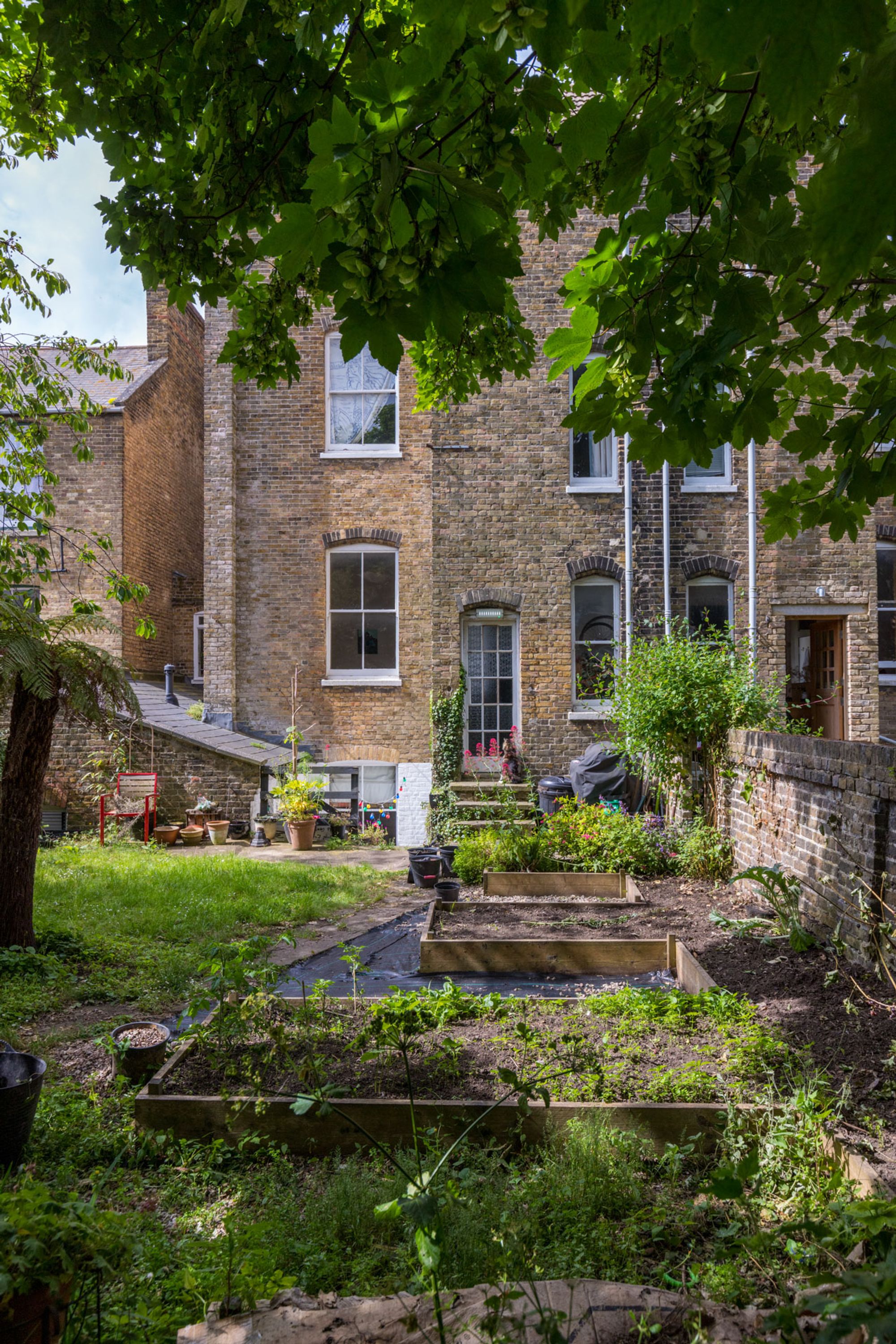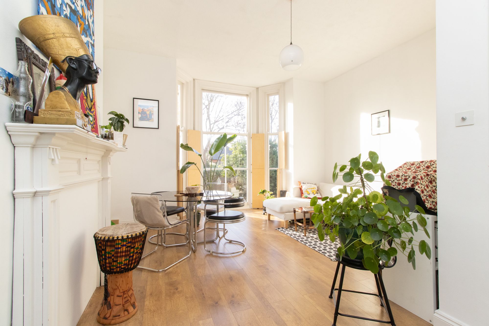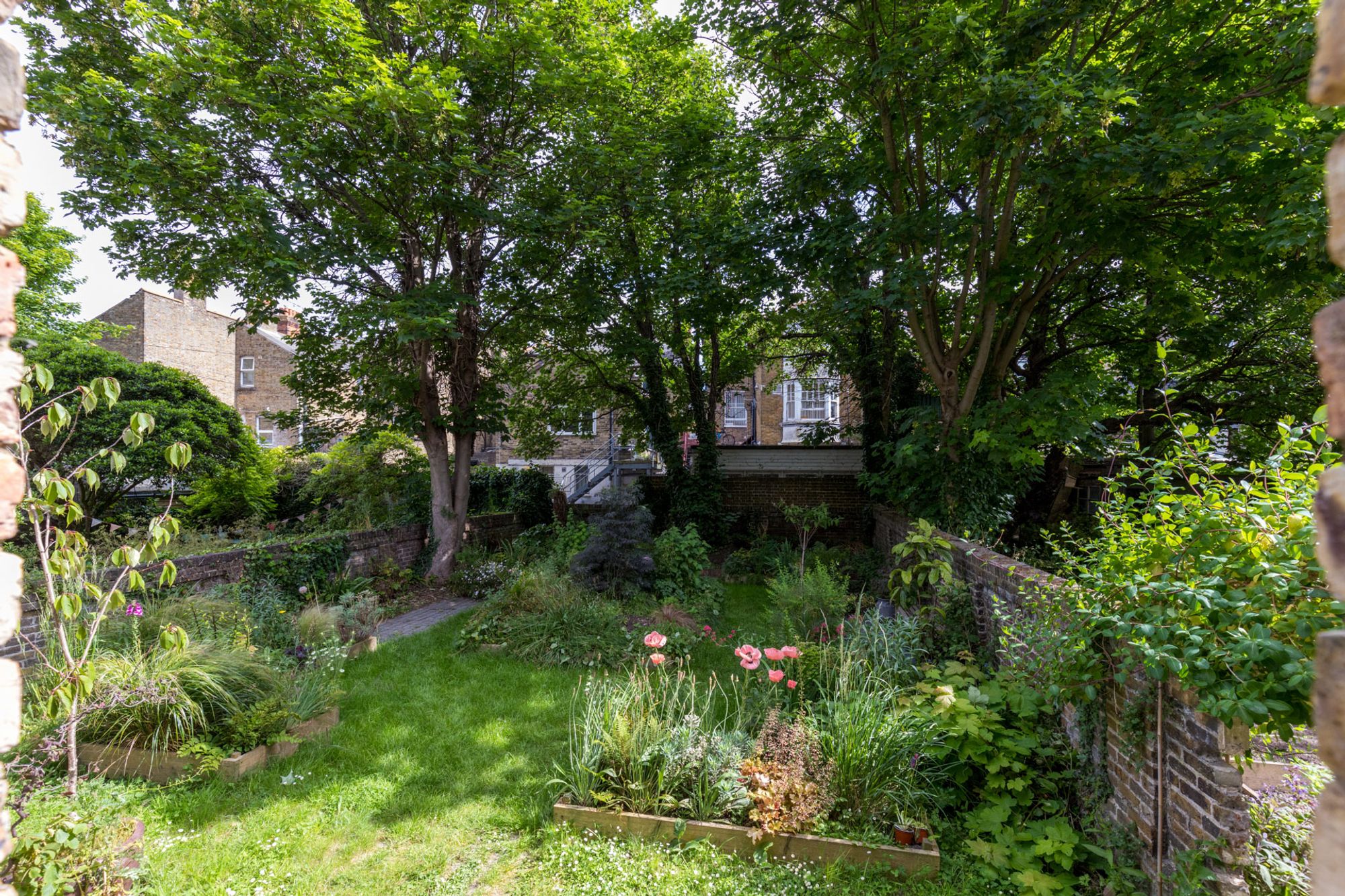 The living room features elegant hardwood floors, a charming mantlepiece, and bespoke plywood shutters that add a touch of architectural intrigue. A fully fitted, separate kitchen is designed for both functionality and style, while the bathroom offers high-quality sanitary ware, ensuring a touch of luxury in everyday living. The generous double bedroom, complete with fitted cupboards and shutters, overlooks the exceptional Victorian walled garden. This tranquil communal space, adorned with vegetable beds and lush, attractive planting, is cherished by a diverse and vibrant community who reside here.
