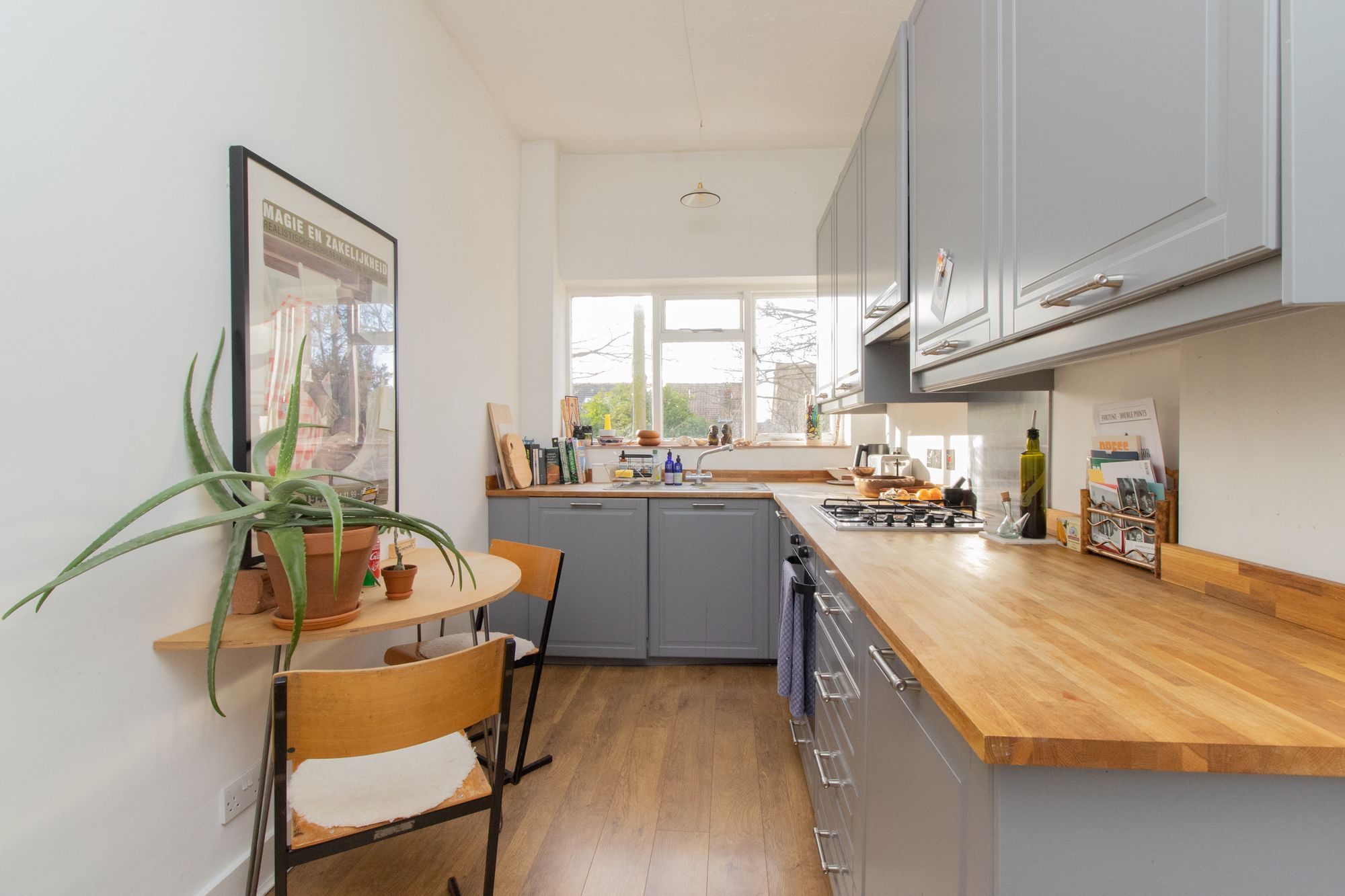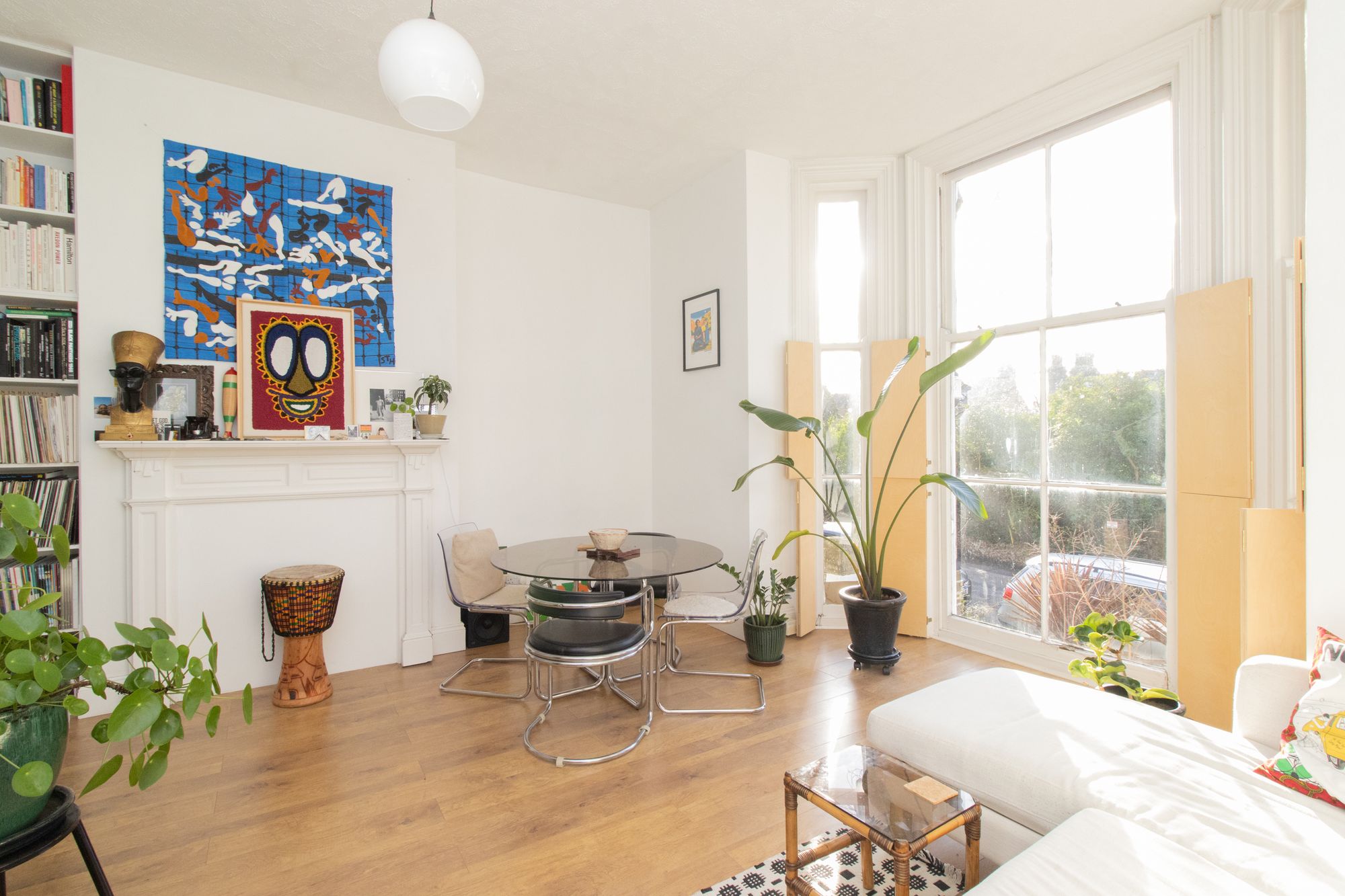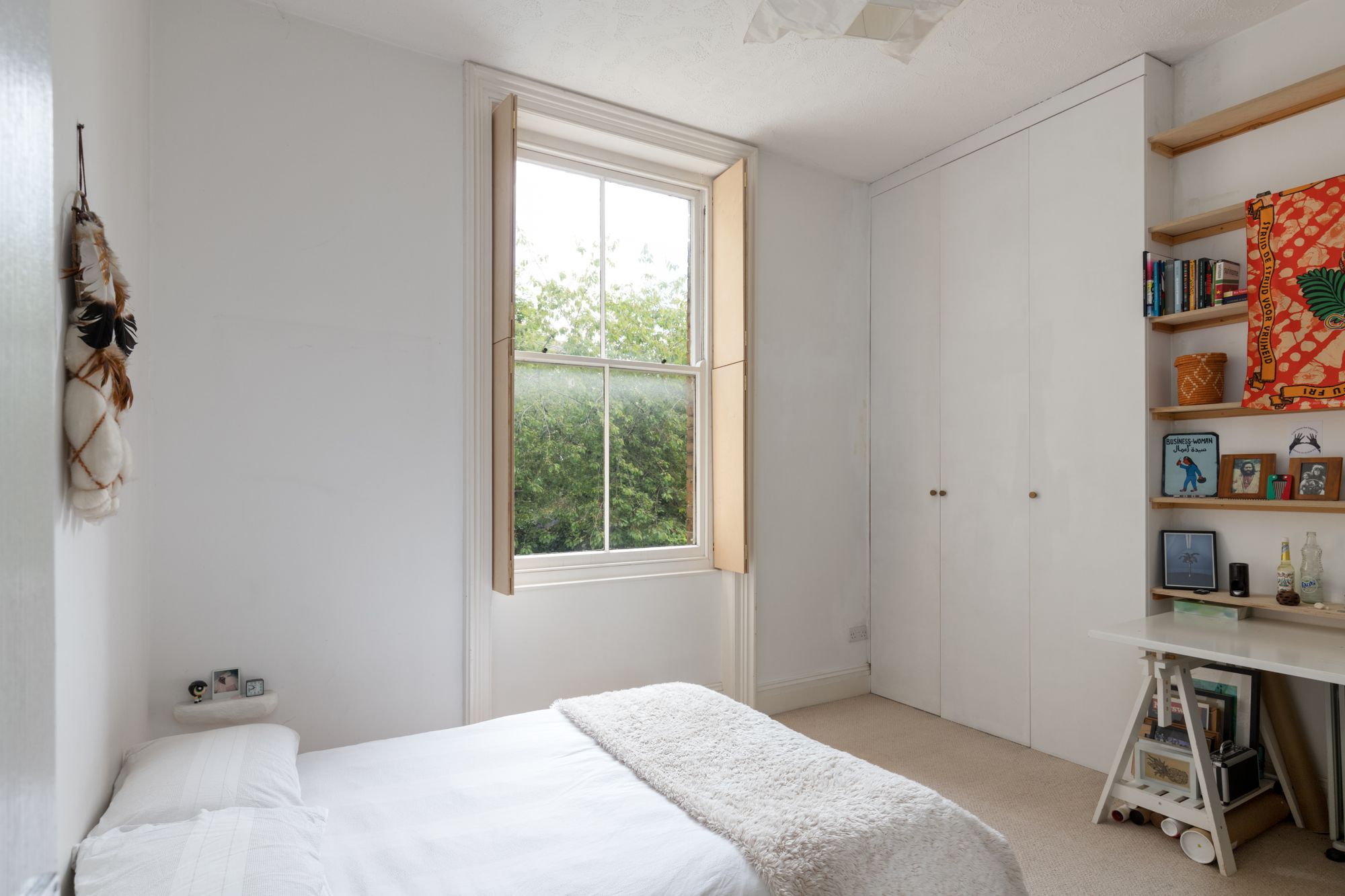 The living room features elegant hardwood floors, a charming mantlepiece, and bespoke plywood shutters that add a touch of architectural intrigue. A fully fitted, separate kitchen is designed for both functionality and style, while the bathroom offers high-quality sanitary ware, ensuring a touch of luxury in everyday living. The generous double bedroom, complete with fitted cupboards and shutters, overlooks the exceptional Victorian walled garden. This tranquil communal space, adorned with vegetable beds and lush, attractive planting, is cherished by a diverse and vibrant community who reside here.