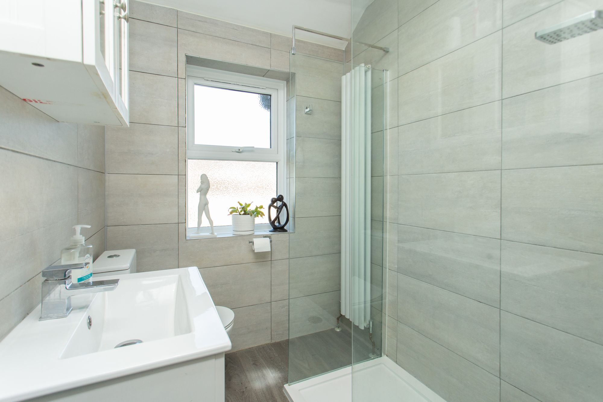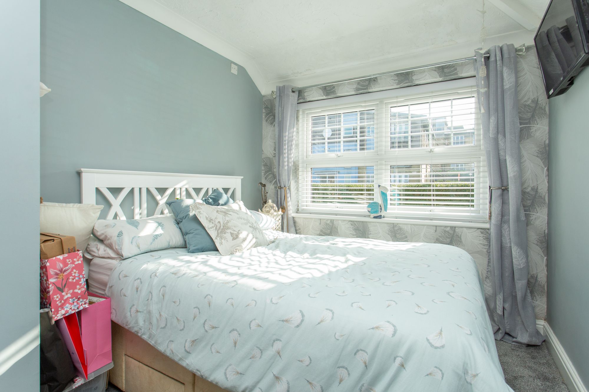 Upstairs on the first floor there is a landing with three bedrooms, two being large doubles. The principle bedroom has an array of fitted wardrobes. The shower room has a double size shower, vanity unit, WC and power shower. The stairs, landing and two of the three bedrooms are carpeted with quality neutral grey carpet.