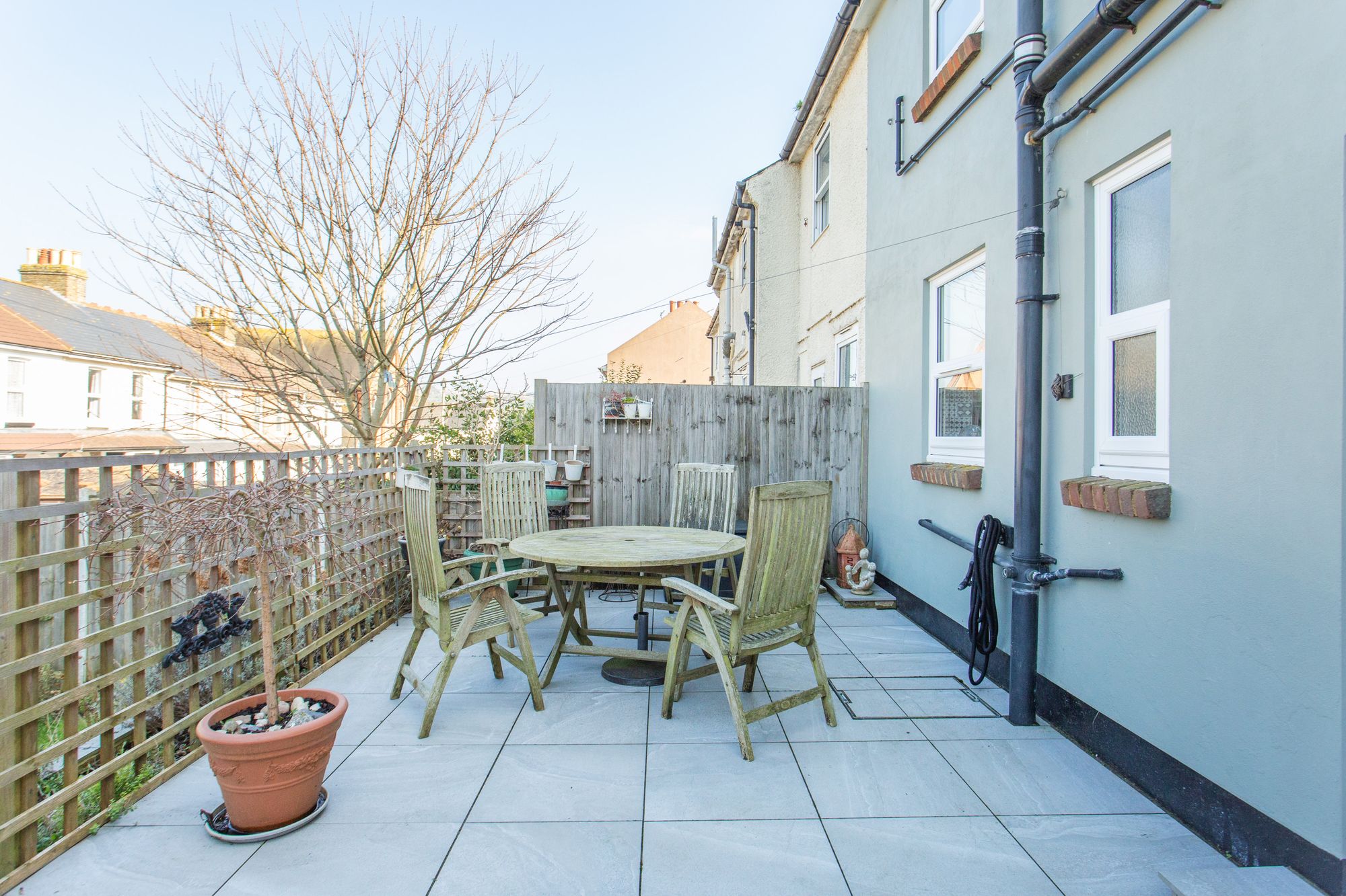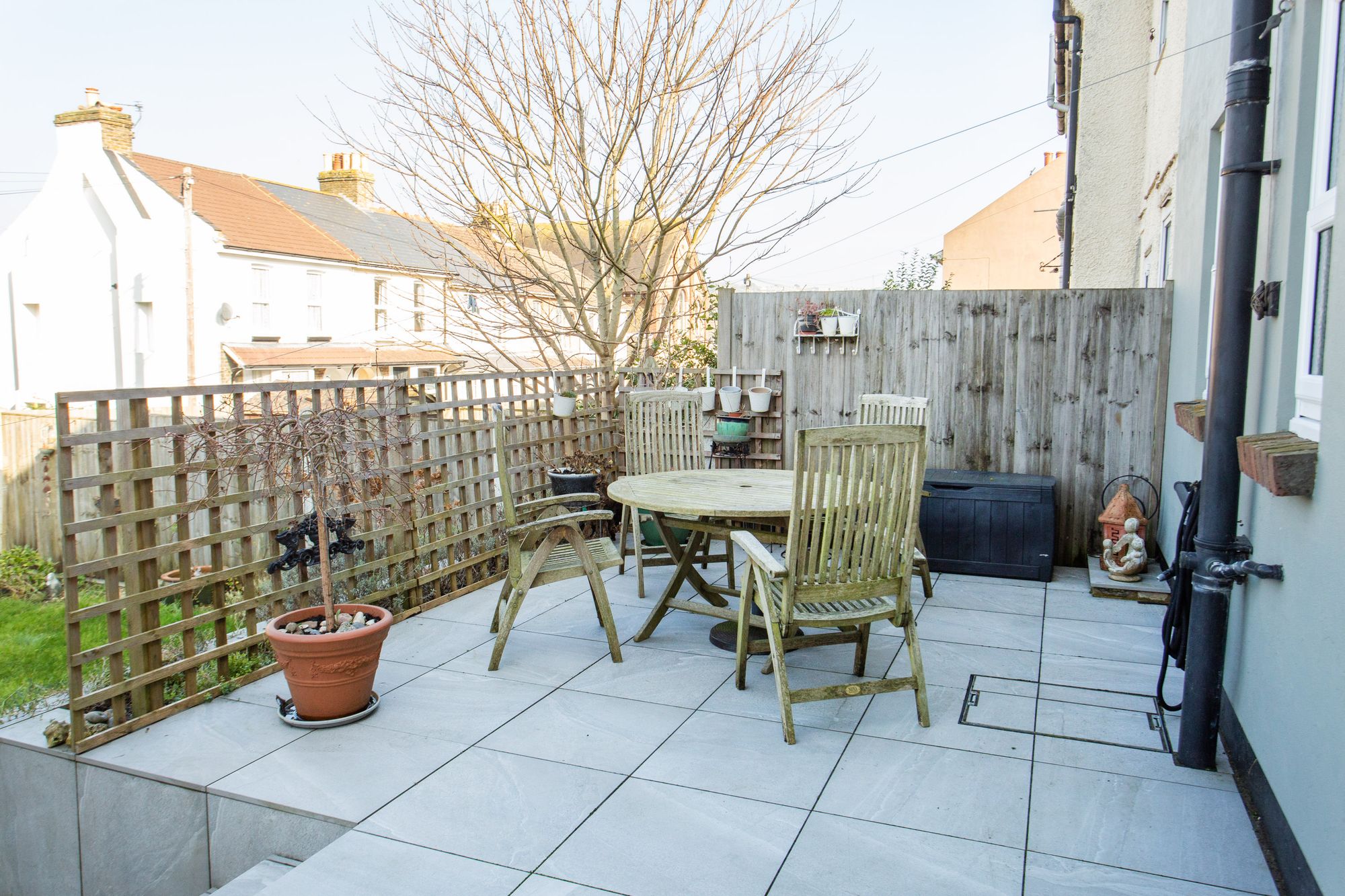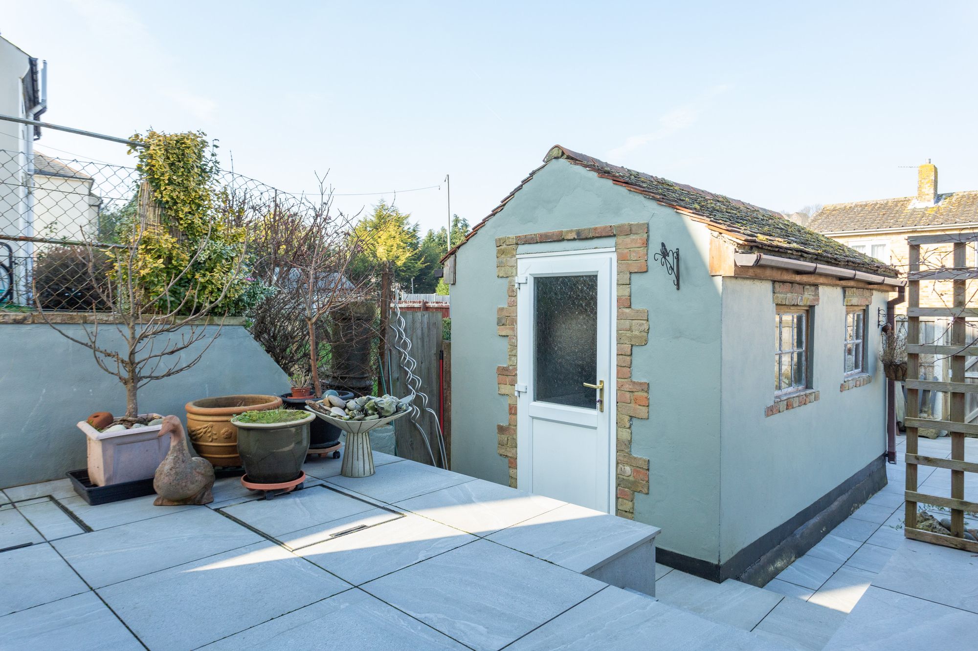 There is a large workshop in the garden with electricity connected. The house has side and rear access for ease of use.