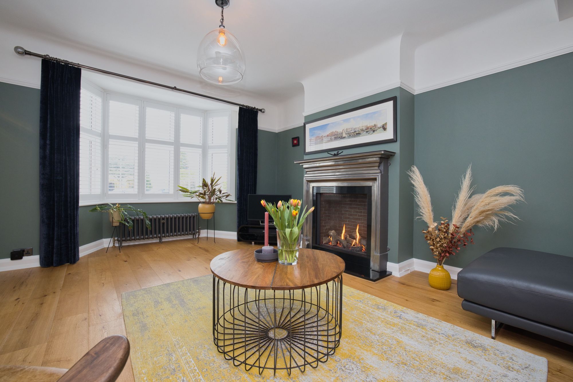 The staircase has modern custom made railings leading up to the split landing. To the left is the master suite with views over the fields in front leading into the walk-in wardrobe/4th bedroom, depending on your preferred layout. There is a further double bedroom and newly designed large Smallbone family bathroom with rainfall shower and stand alone bath. To the right is another double bedroom with windows to the front and back. The property has white windows and internal louvred shutters to the front and anthracite windows to the rear.