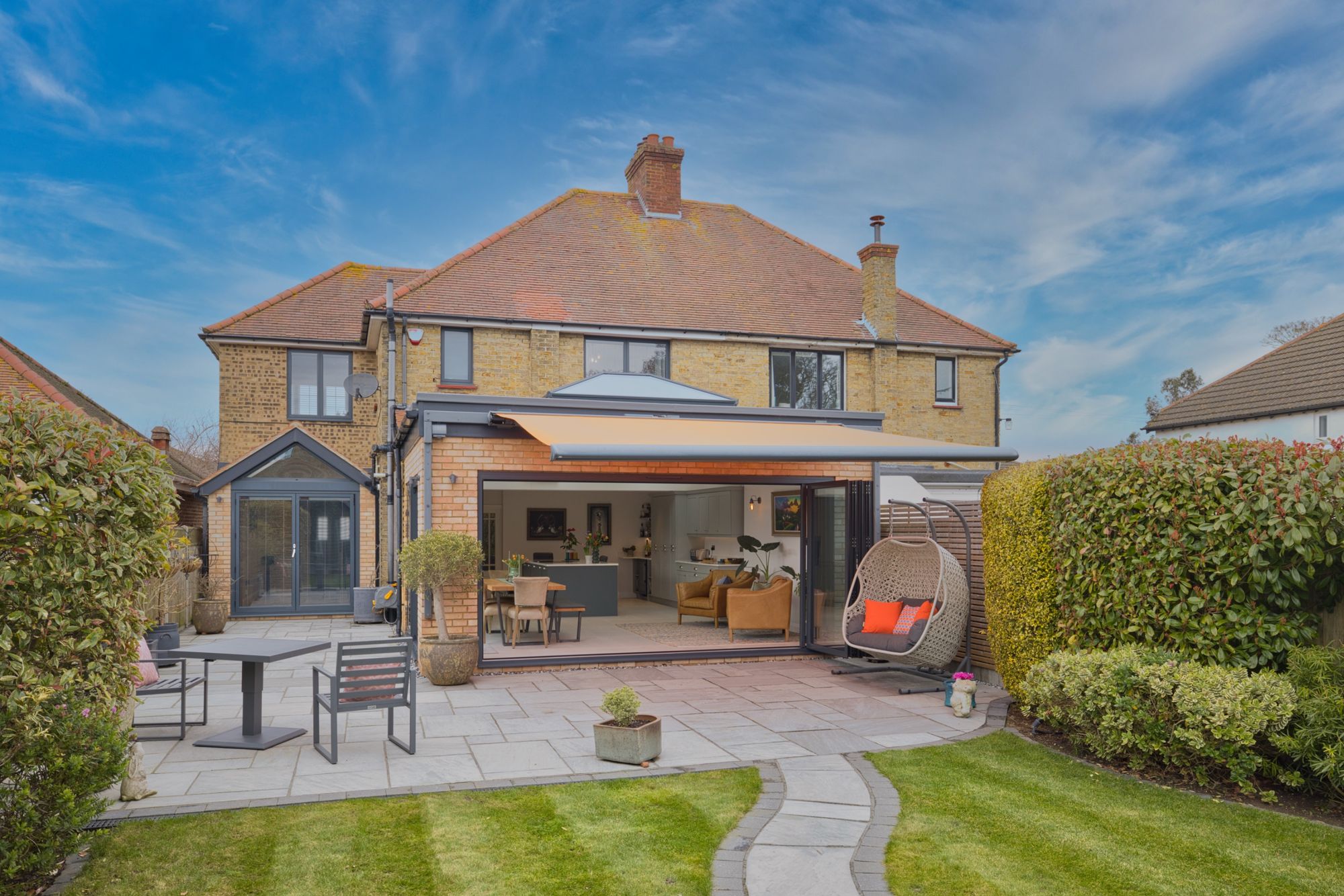 Externally the front driveway is paved providing off-street parking for 2-3 cars, and an EV charger. The sunny aspect rear garden has been newly paved creating the ideal entertaining space, attractive new lawn, mature shrubs and a summerhouse with a separate tool storage section to the rear.