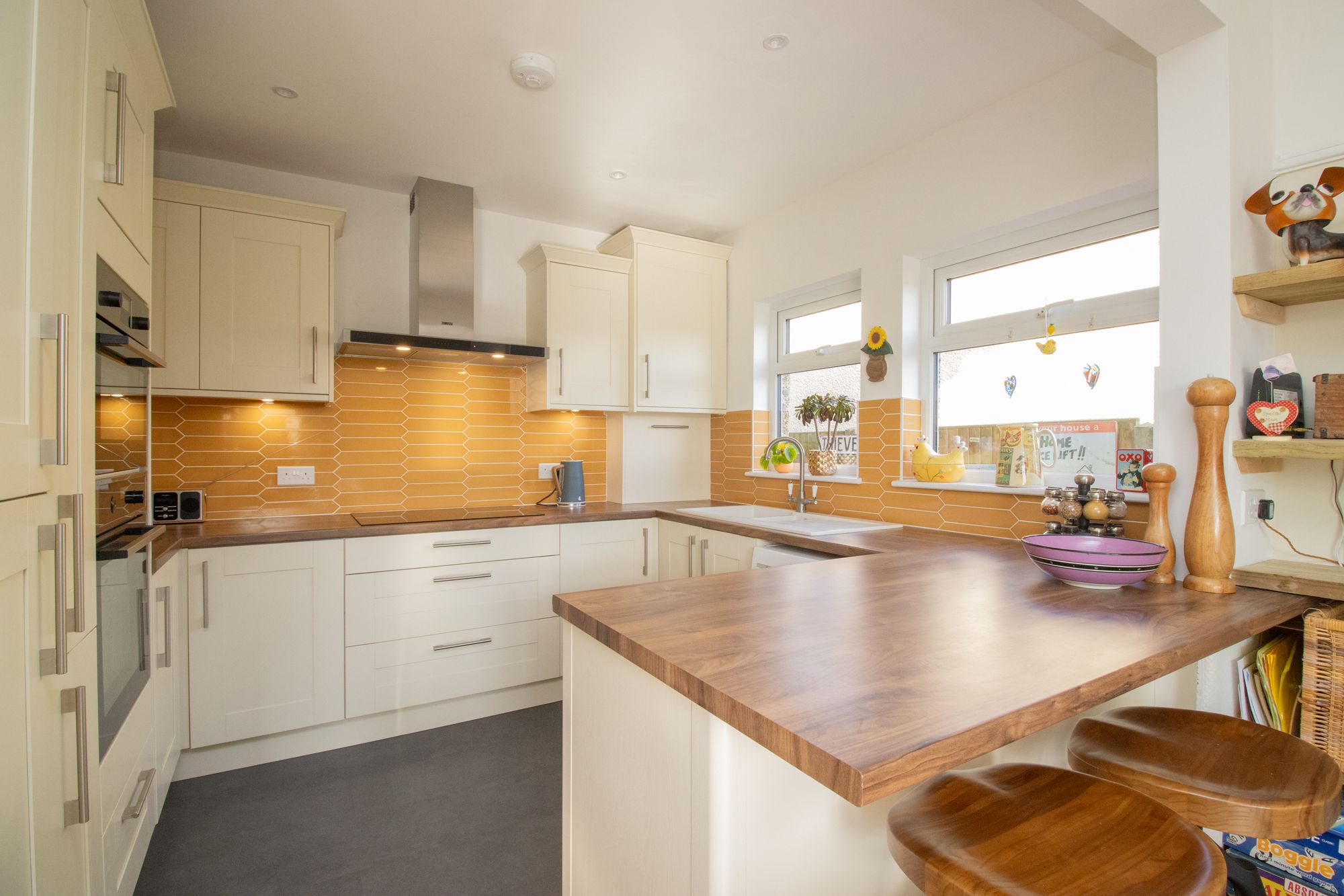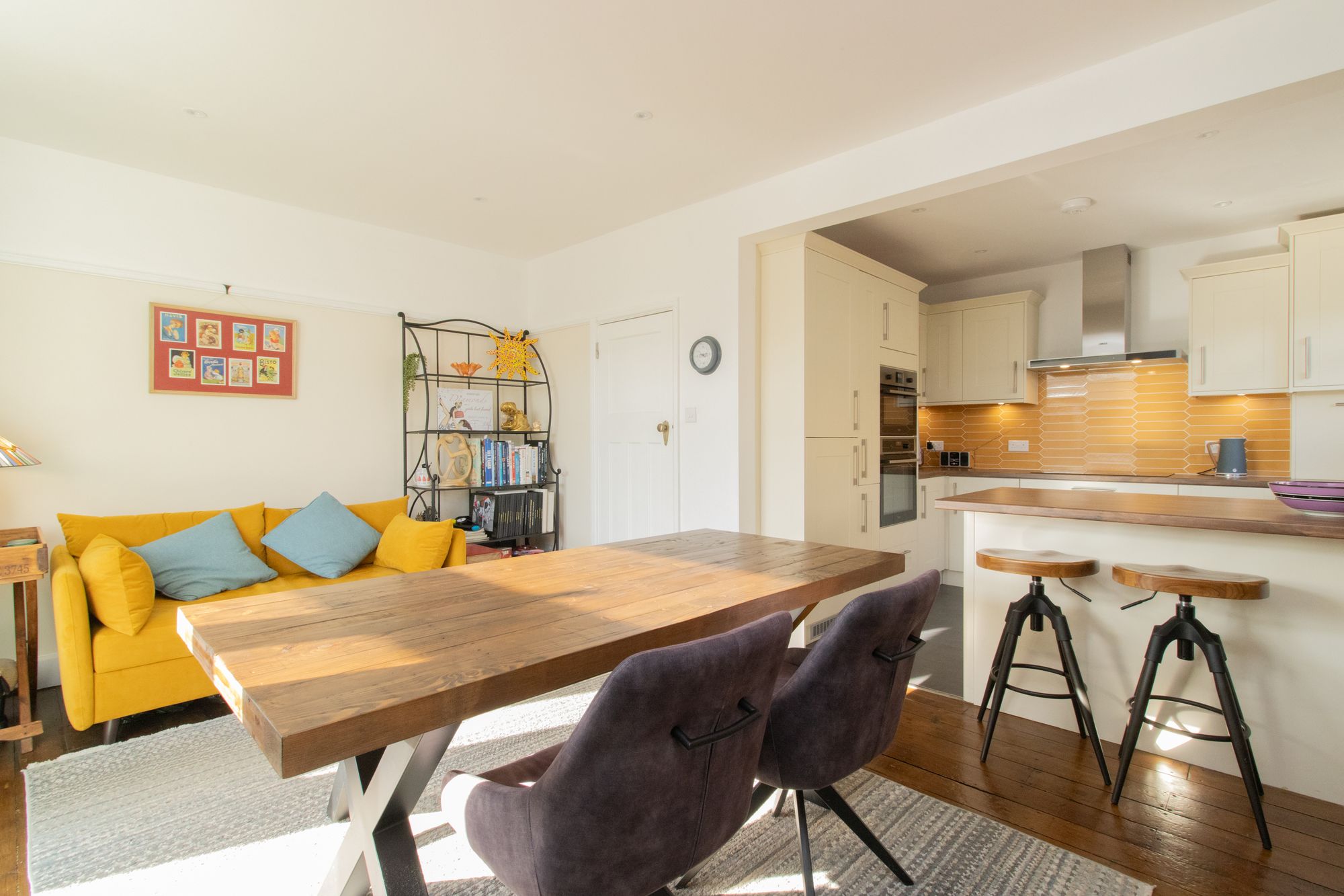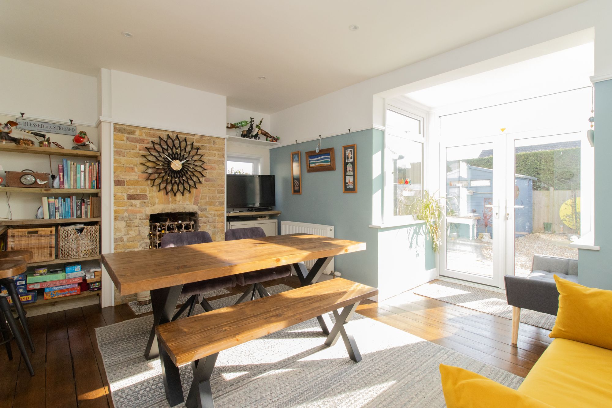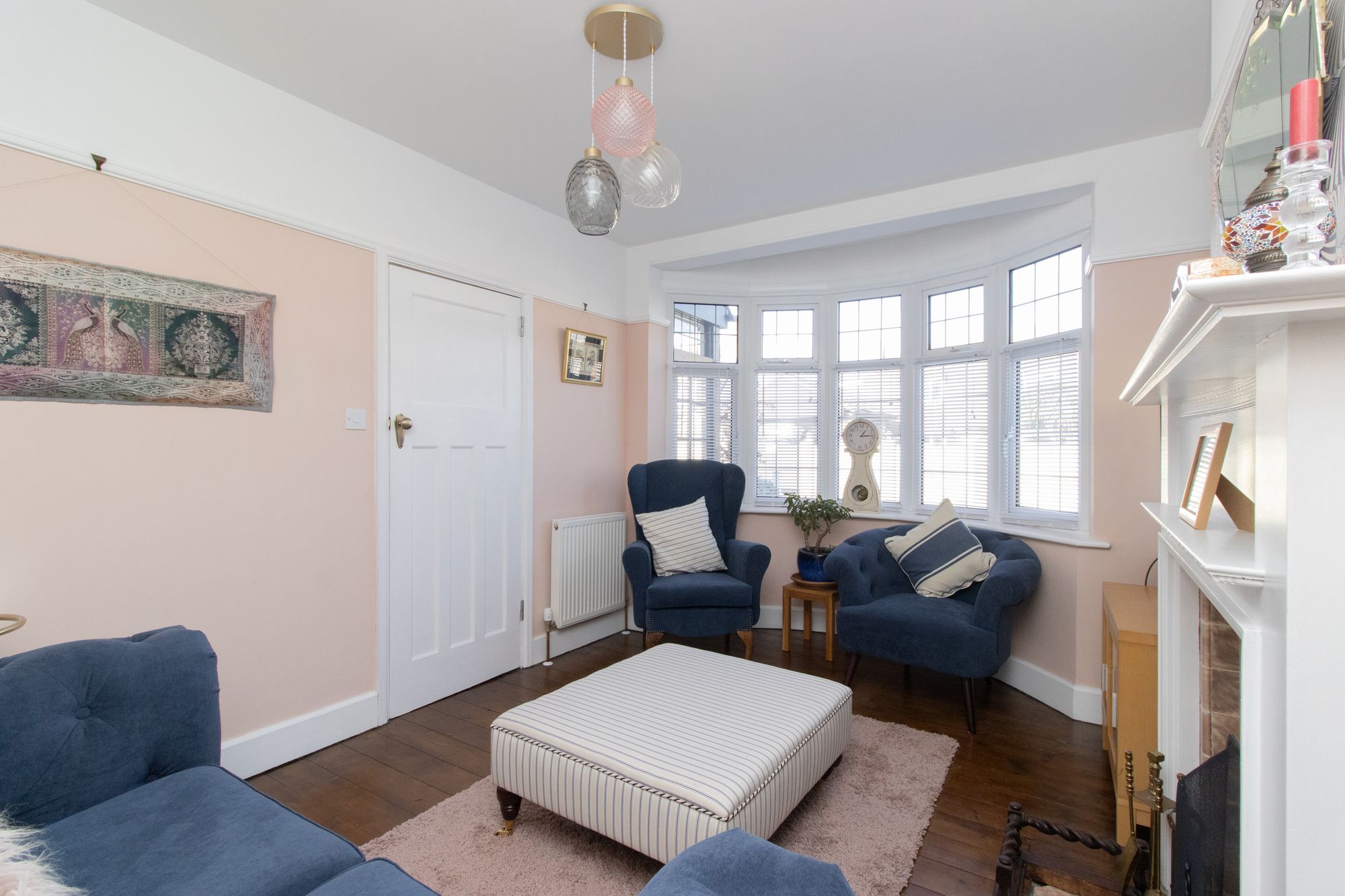 Upon entering the hallway from the front porch, you are greeted by a meticulously maintained interior that exudes a sense of warmth and character. The ground floor features a spacious open-plan kitchen diner, ideal for both every-day living and entertaining guests, with south facing bay style window to the rear of the dining space maximising the light brought into the room. The kitchen boasts contemporary fixtures and fittings, seamlessly blending style with functionality. There is an ever-useful under stairs cloakroom, decorated with old newspapers that were found in the home when the current owners renovated the home. To the front is a separate bow bay fronted lounge, punctuated by a cosy working fireplace that serves as a focal point, creating a perfect setting for relaxation and unwinding.