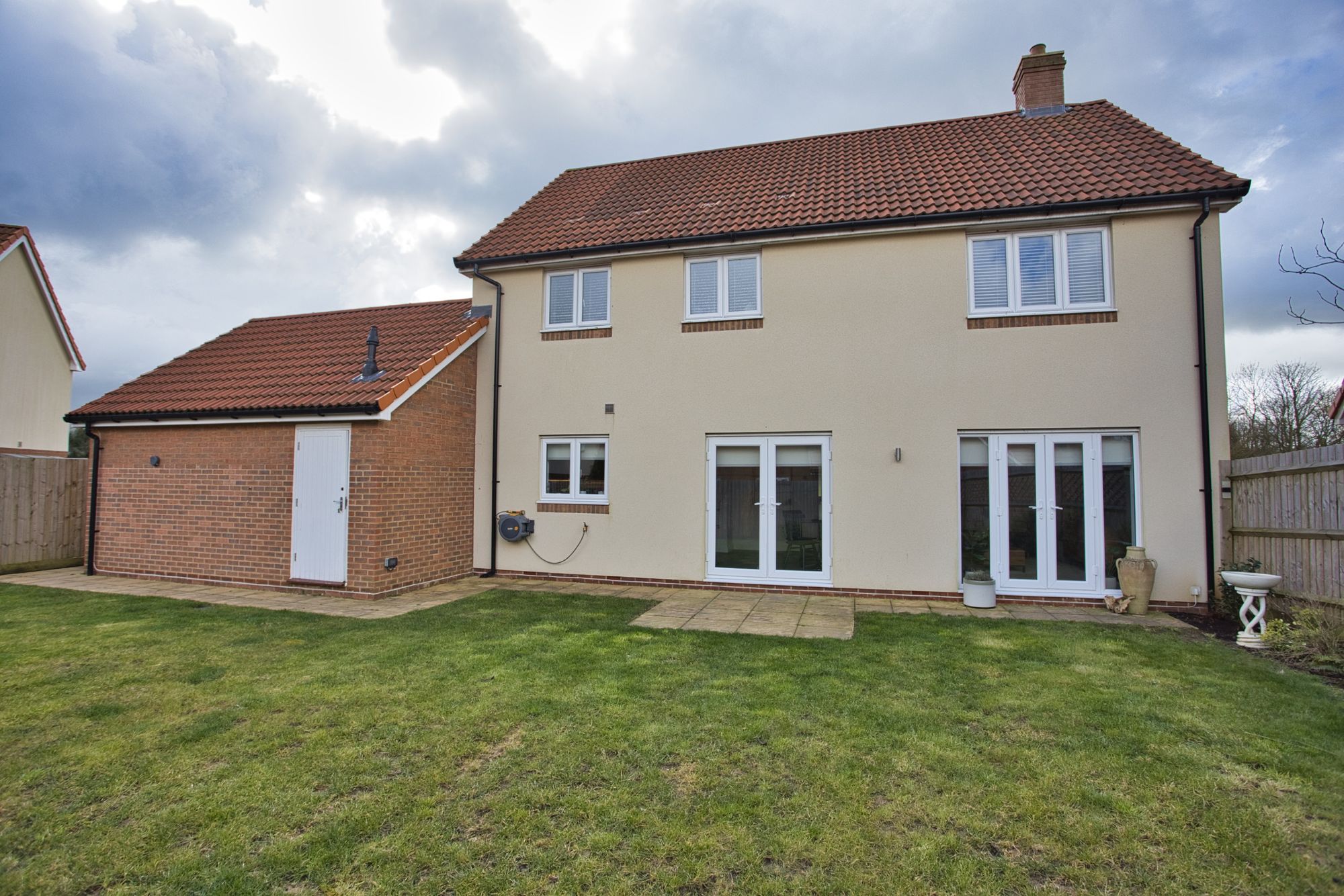Externally, the property boasts an abundance of parking opportunities with a double garage and four additional spaces on the driveway, ideal for accommodating visiting guests. The garden, a good size and mainly laid to lawn, offers a tranquil outdoor space for recreation or relaxation.