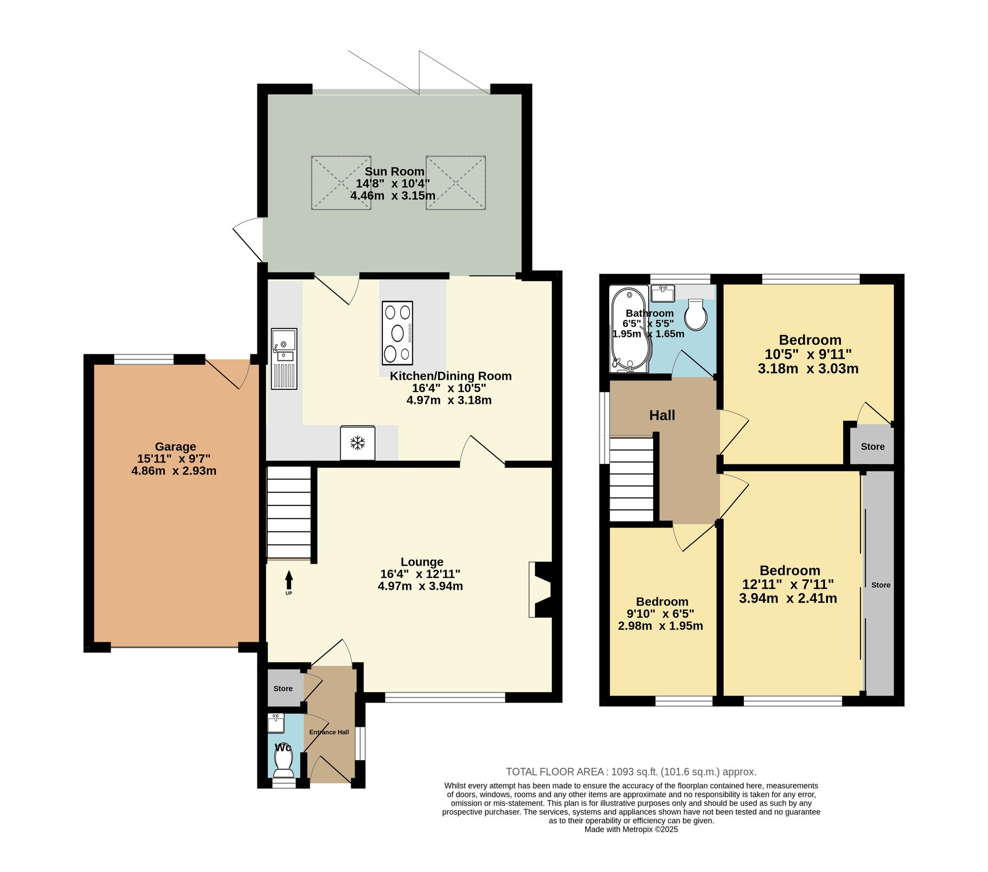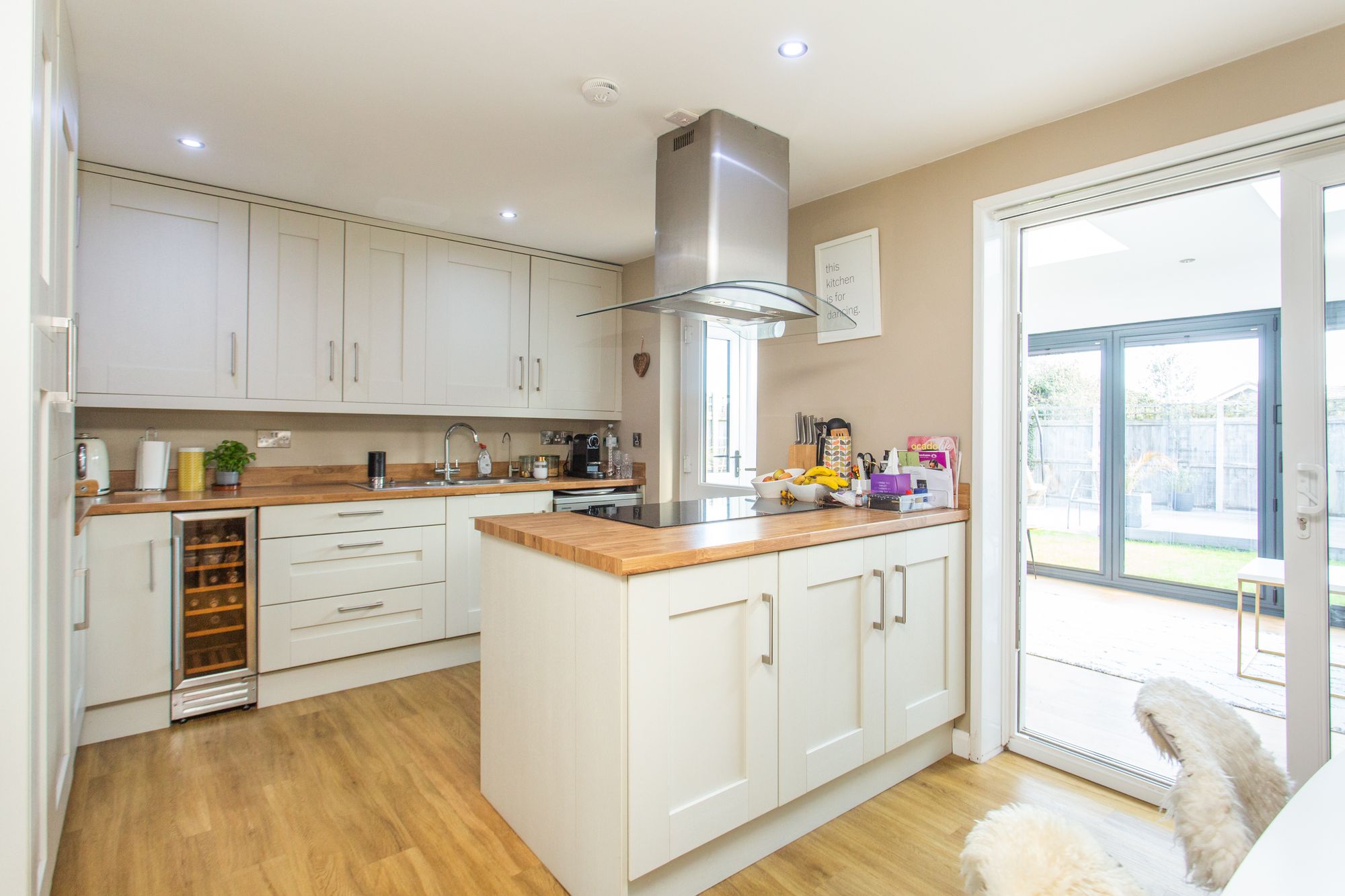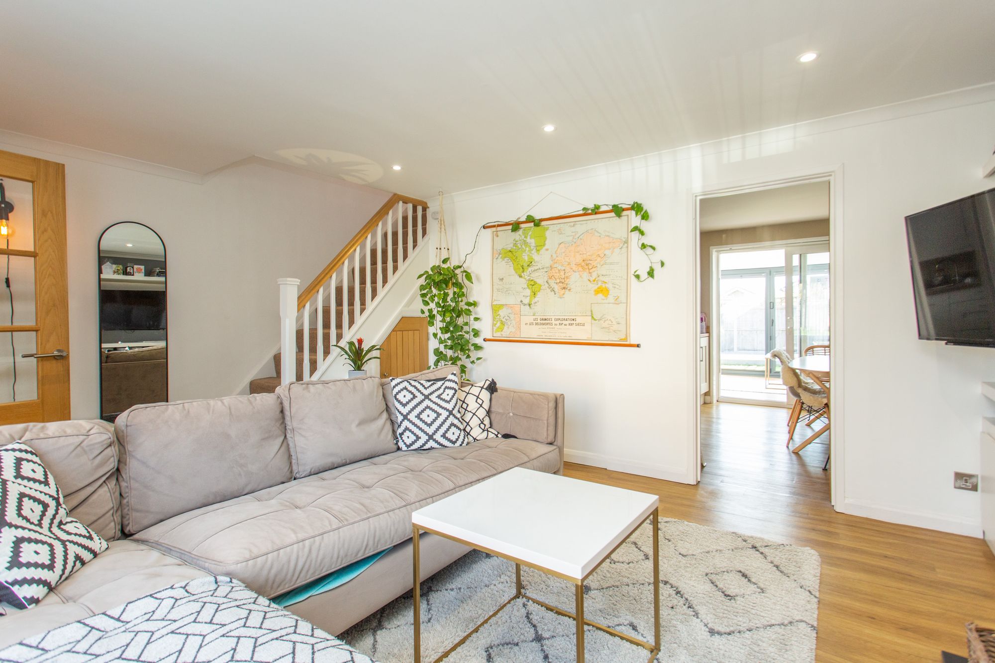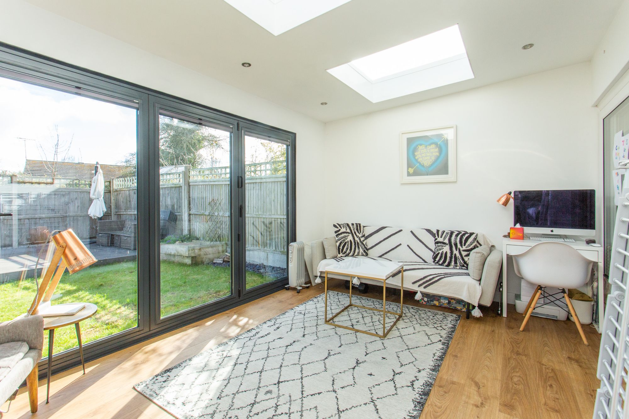 Upon entry, you are greeted by a entrance hall, leading into a spacious living room. The modern kitchen/dining area offers a perfect space for family meals and entertaining, and opens out onto an extended sunroom with bi-fold doors, bringing the outdoors in and providing a seamless connection to the rear garden. Additionally, there is a convenient cloakroom and a storage cupboard for added practicality. Upstairs, the landing leads to two double bedrooms, a comfortable single bedroom, and a family bathroom.