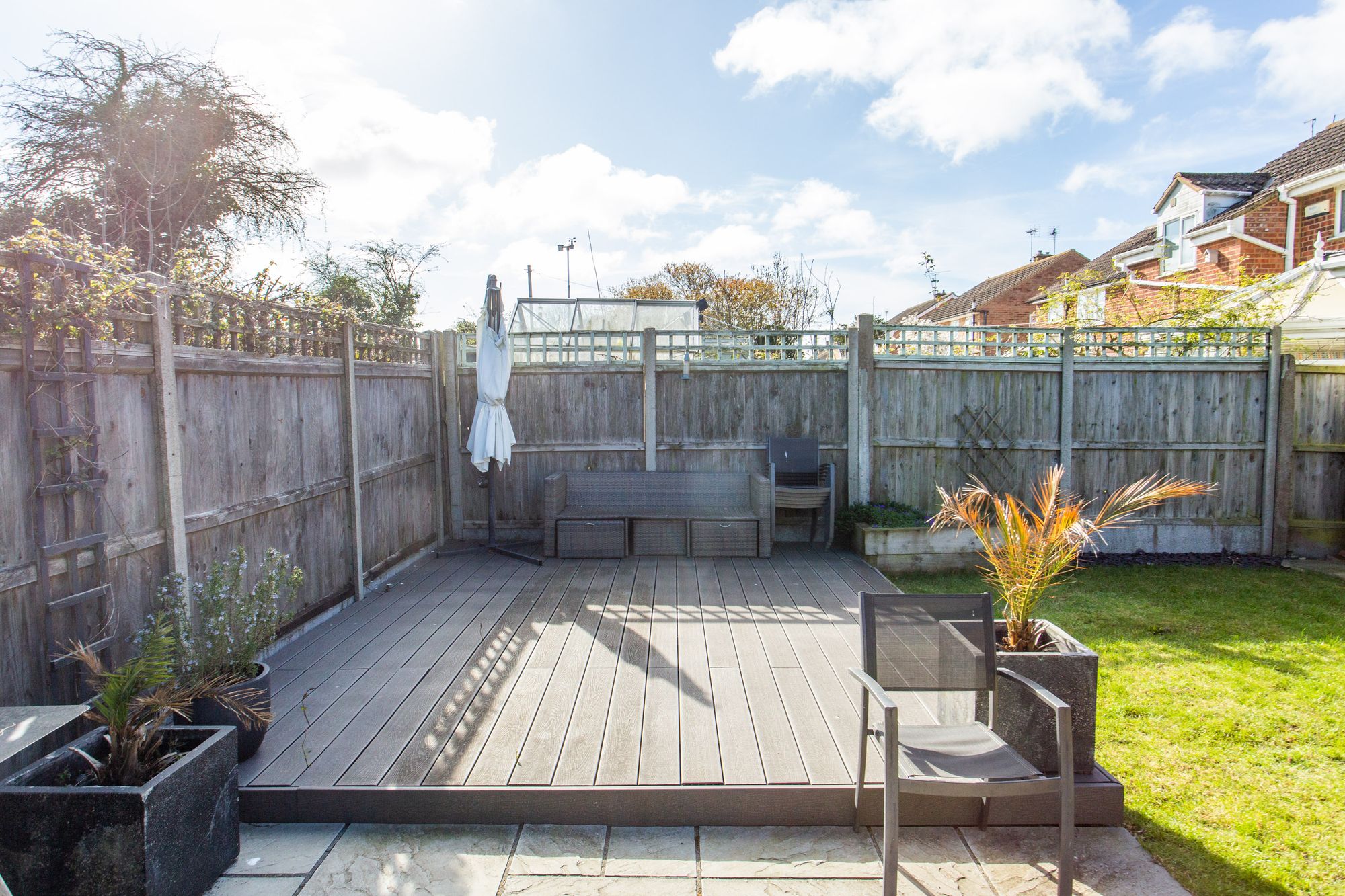 Externally to the front of the property is a driveway providing off-road parking. At the rear, you’ll find a low-maintenance garden featuring a laid-to-lawn area, as well as a composite decked area ideal for outdoor dining or relaxation. A garage and a shed to the side allows for additional storage space.